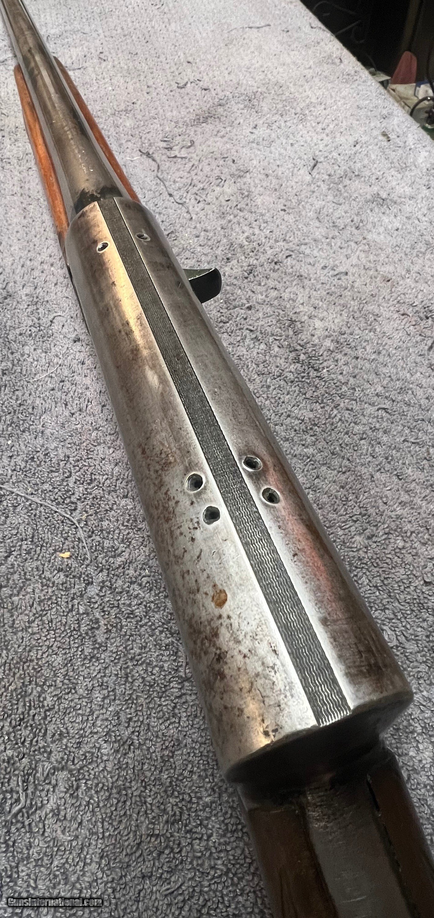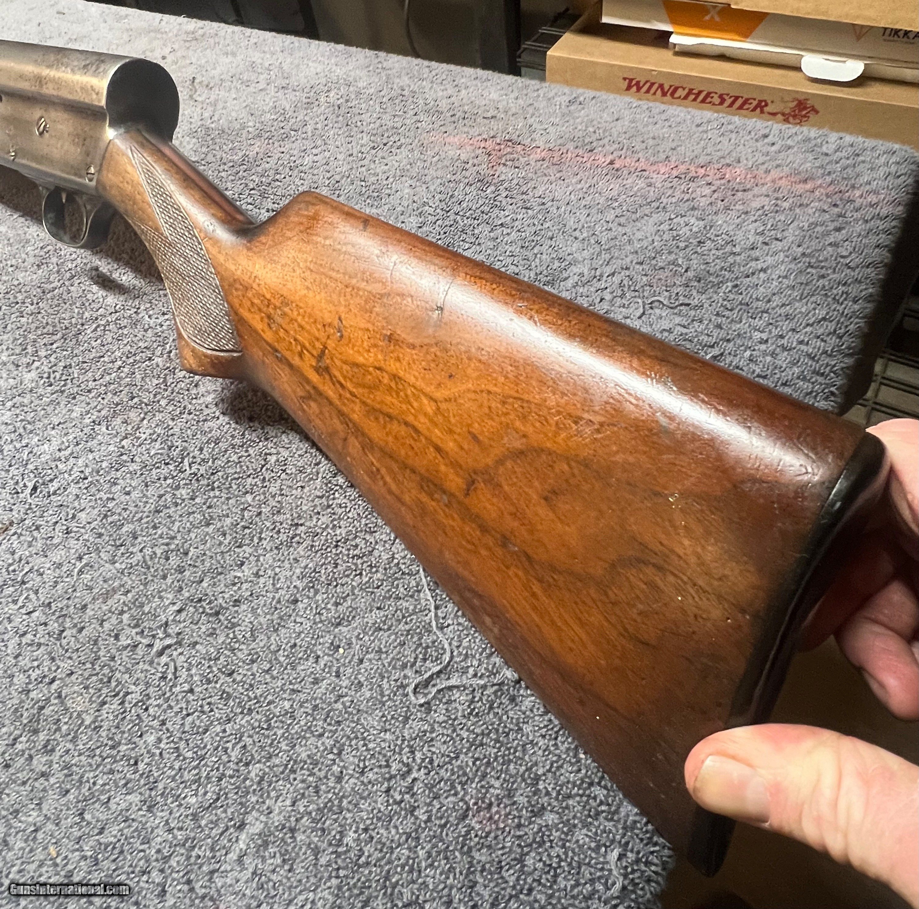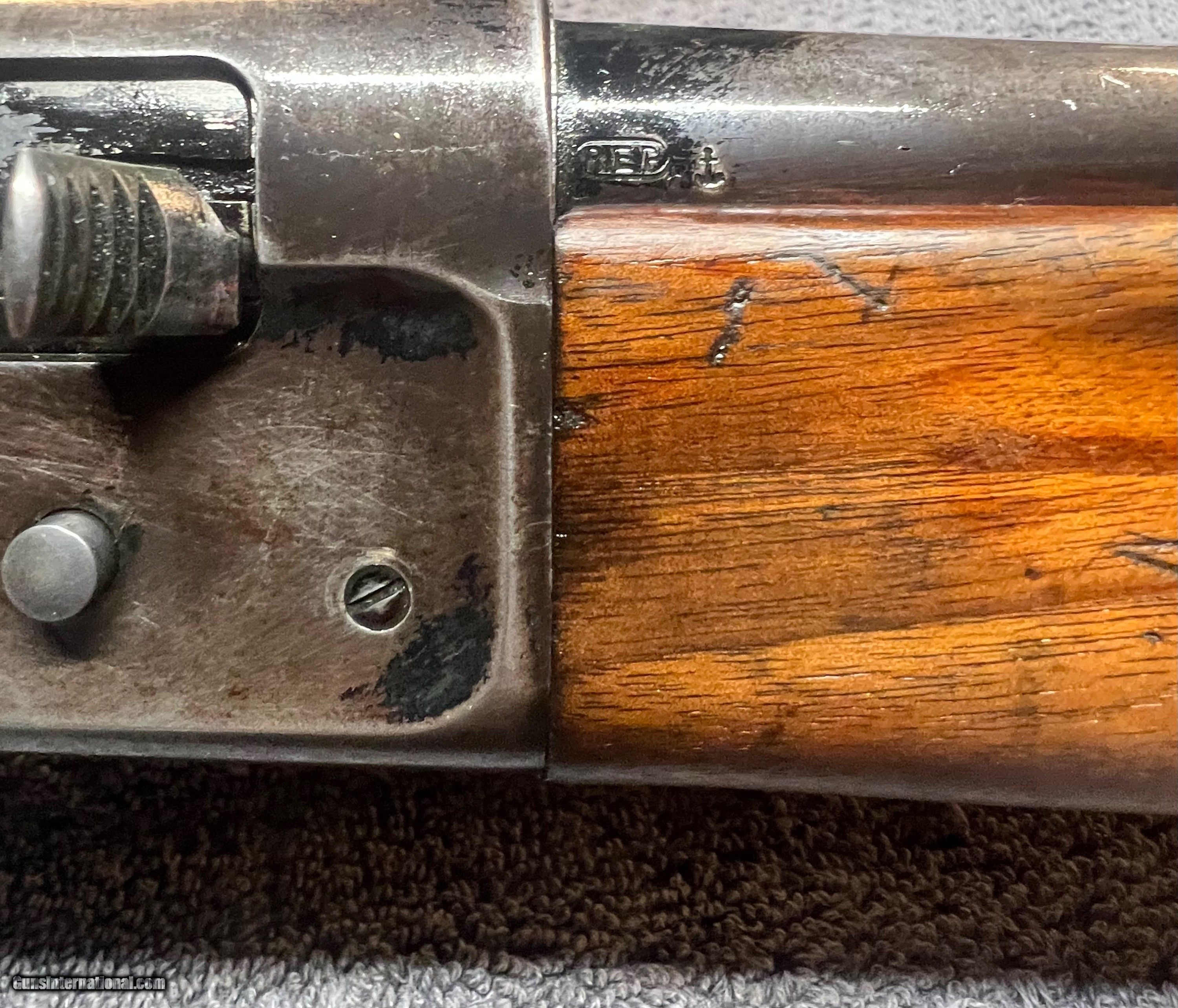 Description: Remington model 11 12 gauge, has been drilled and tapped, was spray painted at one point, wood is in good condition, normal knicks and scratches from age and use bore is clean no pitting SOLD Shotgun Gauge: 12 Gauge Manufacturer: Remington Model: 11 |