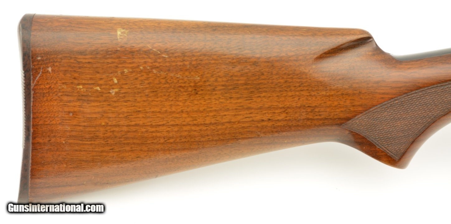 Description: Serial #440178, 12 Gauge (2 3/4" Chamber), 30 inch plain barrel with a bright, excellent bore choked full. This is the Remington "The Sportsman" semi-automatic shotgun manufactured in March of 1941. The classic John Browning designed shotgun is in excellent condition retaining about 95-97% of the original blue on the barrel and receiver with only minimal handling and use marks. The checkered walnut stock and forearm are solid showing some light scratches and contusions. The original Remington butt plate has a small chip at the toe with some light scratches. Mechanically the gun functions properly with a strong recoil spring. A very nice example of this classic WWII era shotgun that with the right loads would be a pleasure to take into the duck blind or pheasant fields. FFL or C&R SOLD Curio/Relic: Yes |