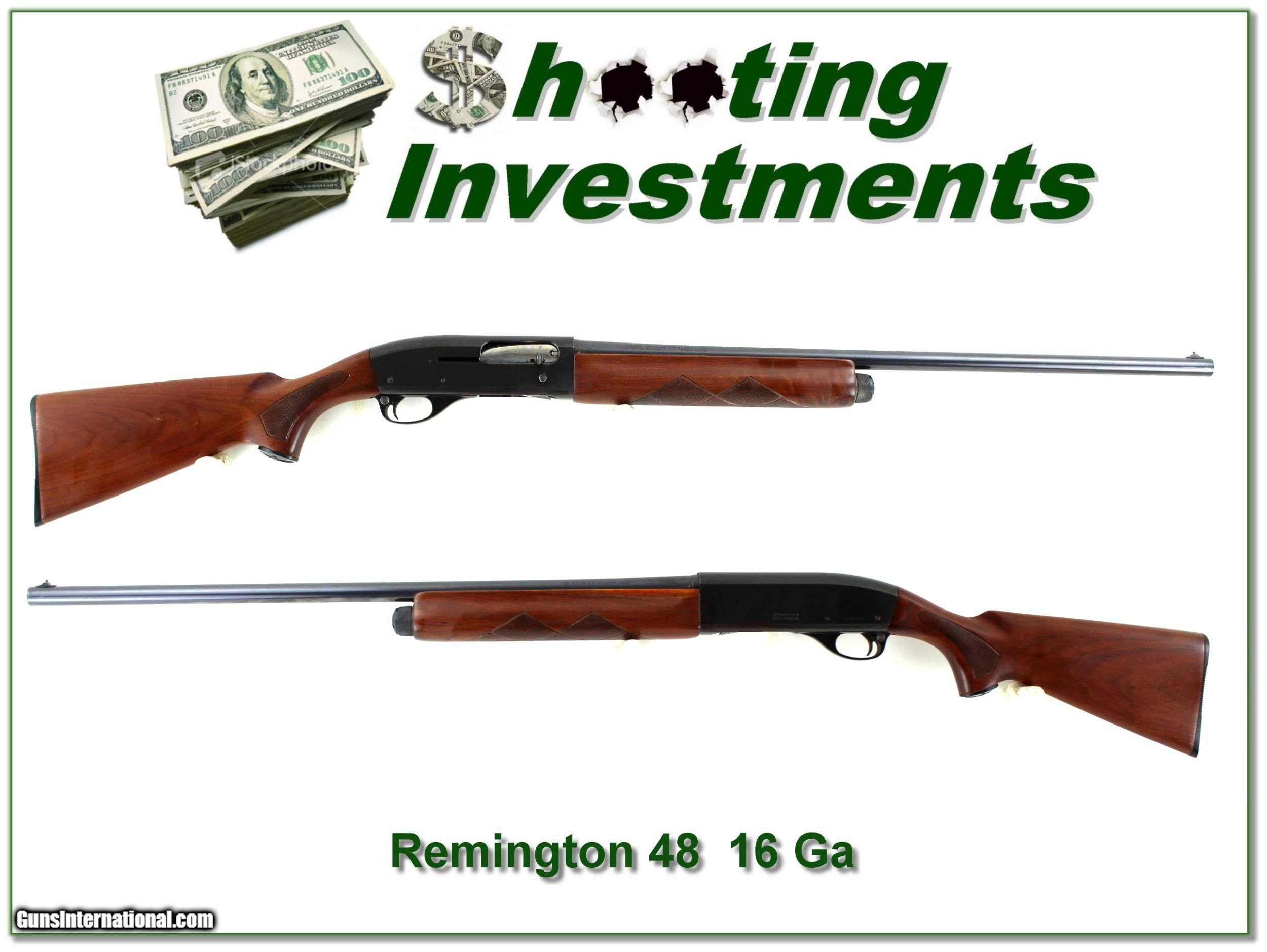 Description: This is a very nice Remington Model 48 Sportsman 16 Gauge. The metal is excellent with little signs of use and some very light freckling. The wood has no marks of note. The barrel is a 26in IC. It will make a classic field gun. Shipping and insurance is $39. Please email me with any questions or larger pictures. (Consign your quality firearms with Shooting Investments for only 12%! Let me know if you have any you would like to sell!) 21-1157 Payment: Payment is by Money Order, Cashiers Check or Personal Check. I can now also accept Credit Cards (MasterCard, Visa, Discover & American Express) with a 3% convenience fee. Shipping: The shipping charge will be listed in each description. It is $39 for most firearms. Some heavy guns or those insured for over $2000 will be higher. Shipments to Alaska and Hawaii are higher because air shipment is required. Most firearms are shipped on Tuesday and Thursday and usually in 5 days of receipt of payment. We package all shipments carefully and insure them. Optics are shipped Priority Mail and most other non-firearm shipments are shipped First Class. Returns: Our return policy is simple. If for any reason you are not pleased with your purchase, you may return your item for a full refund of purchase price. Ammunition cannot be returned. It is important to us that you are happy. Guns cannot be fired or dissembled before returning them and they must be returned in the same condition as received. Notification of a return must occur with-in 3 days of receipt at your dealer. Shipping, convenience and dealer fees are not refundable and are the responsibility of the buyer. Lay-a-way: If needed, we offer a 60 day lay-a-way option on most firearms. It is 1/3 now, 1/3 in 30 days and 1/3 in 60 days. Lay-a-way firearm sales are final and if not completed the first payment cannot be returned. Consigning your firearms with Shooting Investments: We will help you get top dollar for your firearms. While most local guns shops charge 20% or more, our fee is only 12% with a minimum of $75. At your local gun shop it might take months to sell. Selling on-line provides instant access to thousands of interested buyers. You won’t find any other on-line dealer willing to sell your firearms for only 12% or listing every gun on 3 separate s. Selling through an House typically costs the seller 15% and the buyer an addition 15% (so 30%) and you have to wait several months to sell and longer to receive funds. If properly priced, we will sell your firearms in a few weeks. Send us an email or give us a call and we’ll explain how easy it is for you to get top dollar. Trading: Trading for use is really just buying your gun to re-sell. If you have a gun you want to trade, please email a picture and we will let you know what we can give or it. You will always get more if we sell it for you on consignment. Help for California Buyers: We are happy to ship to California. It is the buyer’s responsibility to make sure any item you buy is legal in your state. We are also happy to help with your purchase of a firearm from someone other than us. If you see a gun you would like to buy but the seller can’t or won’t ship to California they can ship to use and we’ll then ship it to your California dealer. The cost for this service is only $30 + shipping. Let us know if we can help! SOLD |