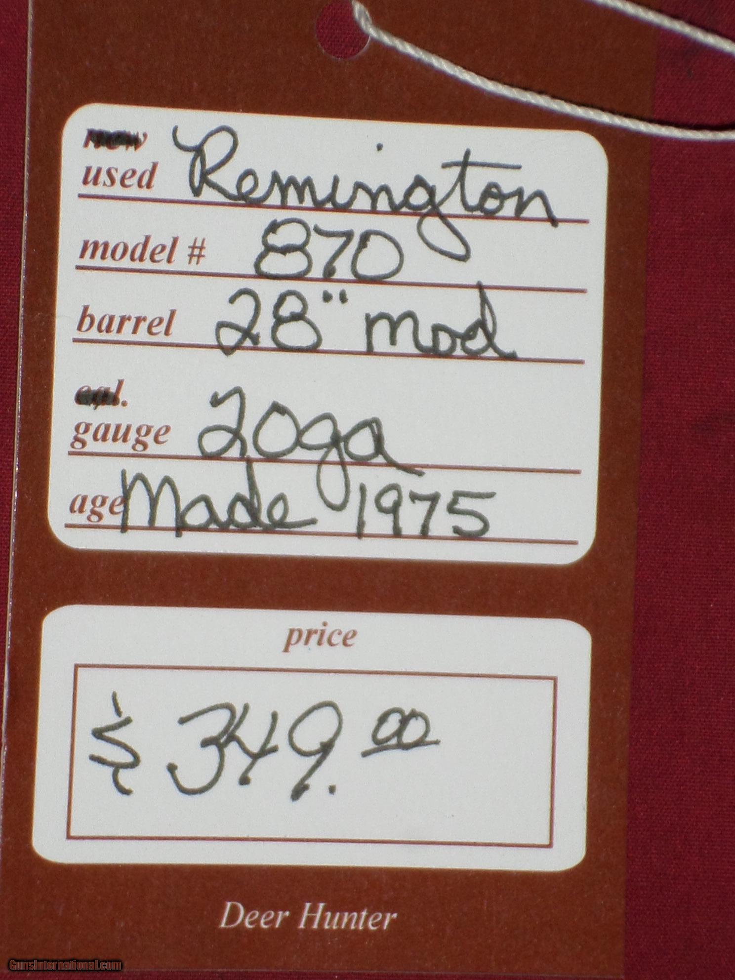 Description: SOLD For sale, Remington 870 Wingmaster 20 Ga, 28" plain bbl, modified choke. Very good condition. Circa 1975 To see more of our inventory, visit deerhunterguns,com We collect 7% sales tax for Florida sales. We accept MC, Visa and Discover, no AmEx. No Sales to California. Like us on Facebook: Deer Hunter Guns SOLD |