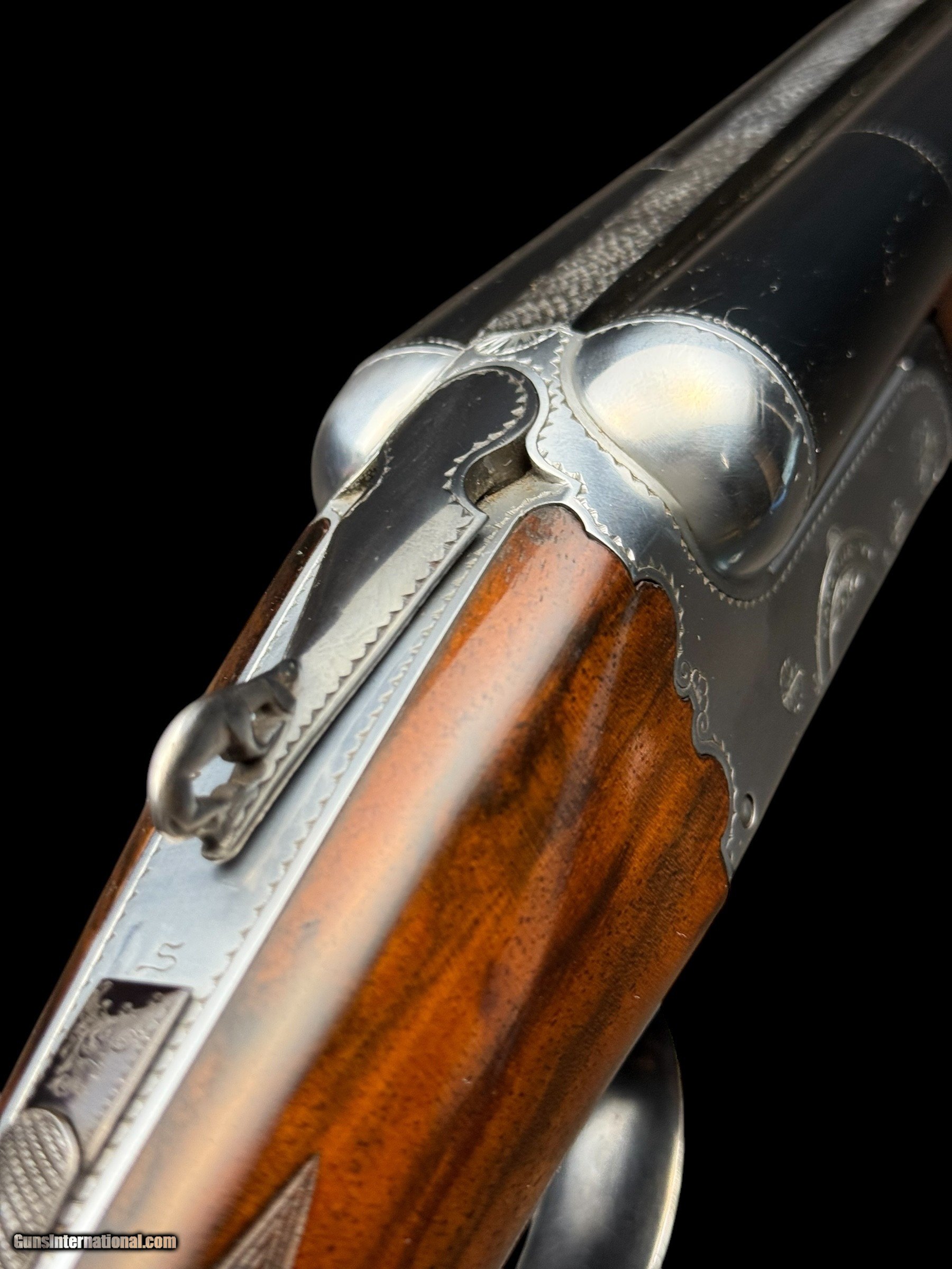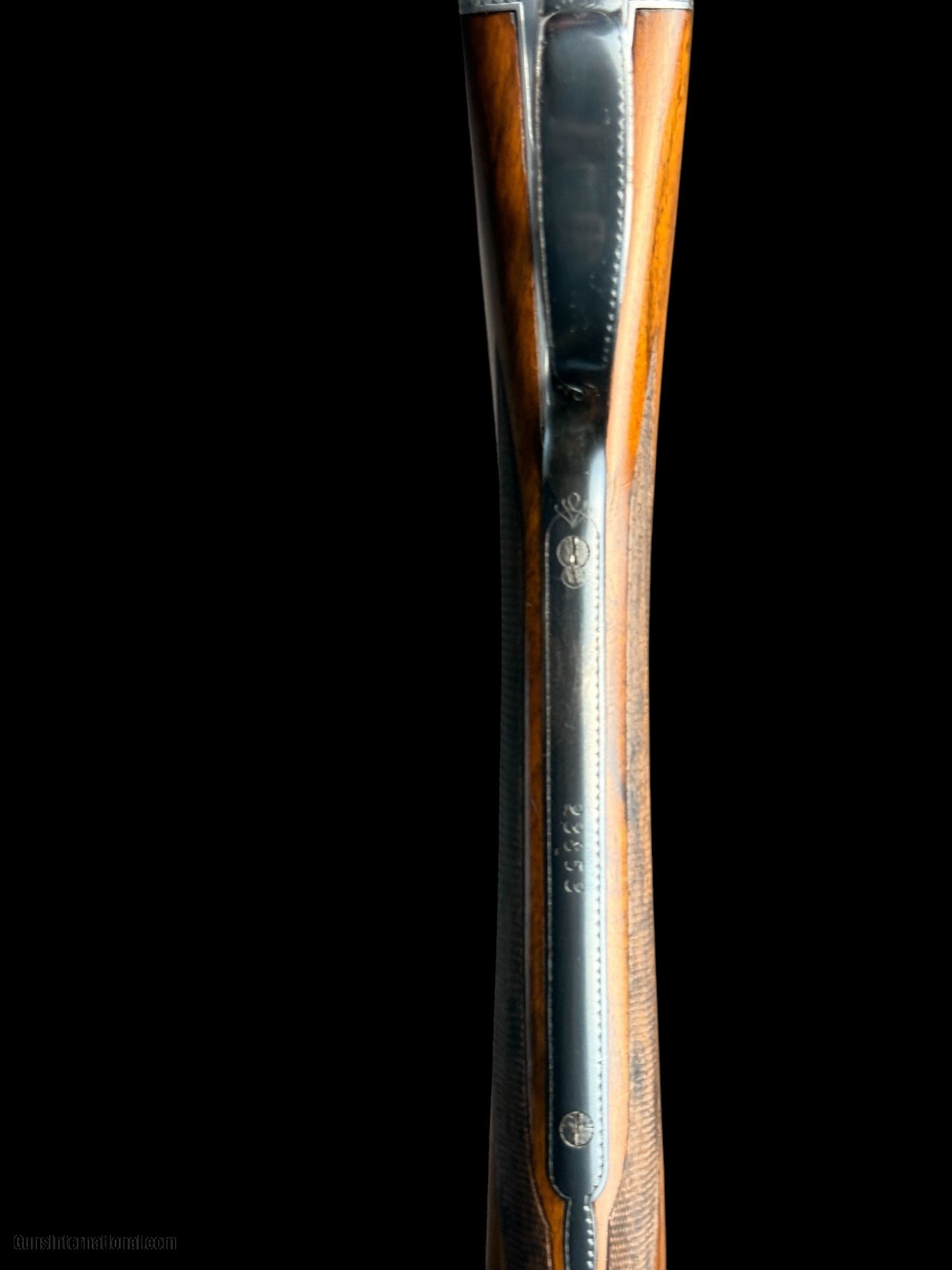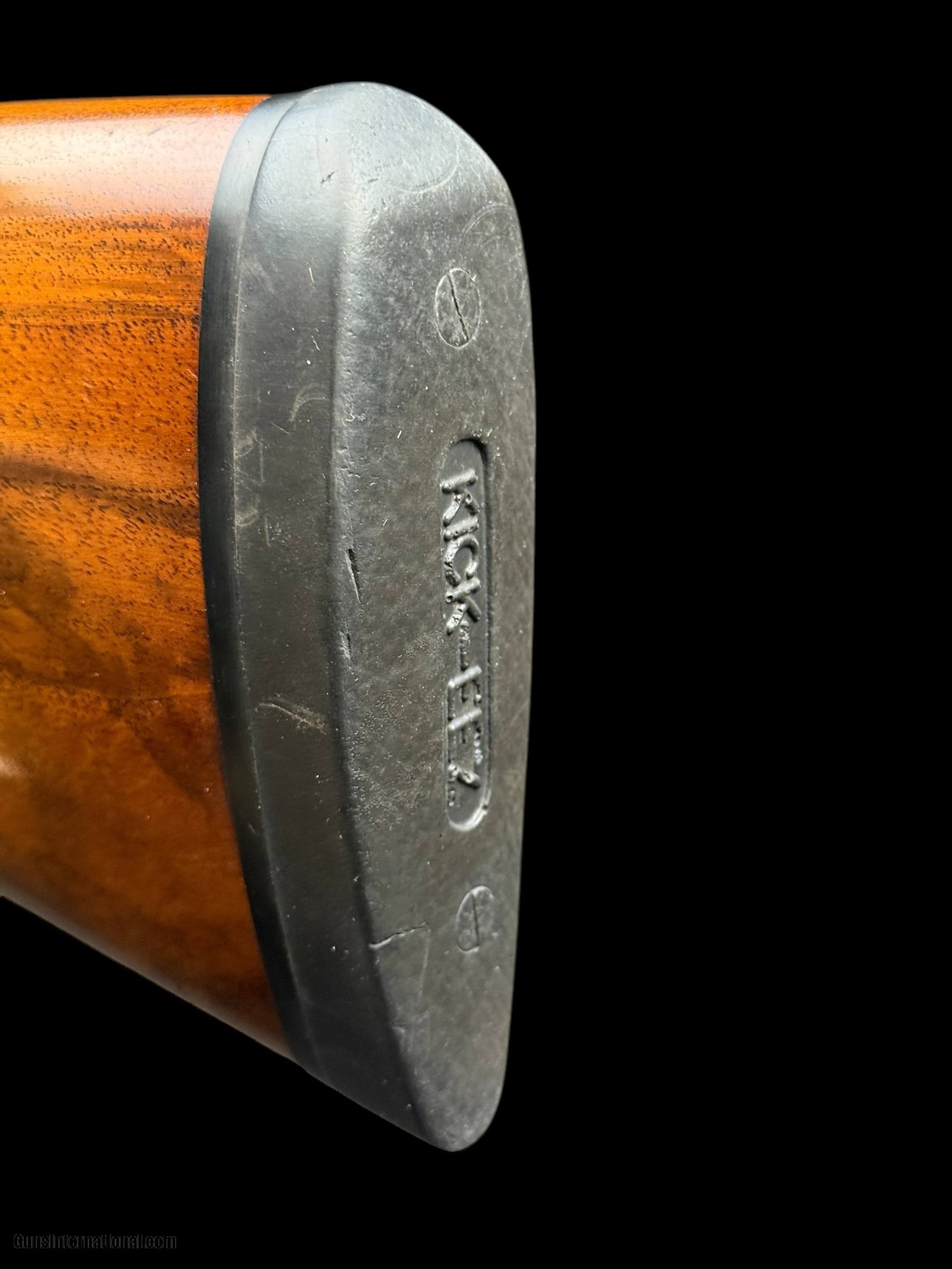 Description: RENATO GAMBA - ITALY MODEL: 624 SxS GAME GUN MFG: 1994 SCALLOPED COIN FINISH BOXLOCK ACTION - LIGHT SCROLL ENGRAVED W/ "RENATO GAMBA" IN BANNERS IN ACTION SIDES - DOUBLE UNDERLUG MONOBLOCK BARRELS W/ HAND FILED RIB PIERCED TOP LEVER W/ DOG PROFILE LONG BOTTOM TRIGGERGUARD 28: BBLS - 2 3/4" CHAMBERS / 70MM CHOKES: .010 / .015 TEAGUE THIN WALL CHOKES SINGLE TRIGGER NON-AUTO SAFETY TURKISH WALNUT STOCK W/ POINT PATTERN CHECKERING AND DOUBLE MULLERED EDGE - BLACK RUBBER PAD DIMS: LOP: 14 3/4" | DAC: 1 9/16" | DAH: 2 1/8" WEIGHT: 7LBS 1 OZ CONDITION: GUN IS IN BEAUTIFUL OVERALL CONDITION SHOWING LITTLE AND LIGHT FIELD USE. ACTION TIGHT. BORES CLEAR. EJECTORS STRONG AND IN-TIME. TRIGGER CRISP. WOOD FINISH EXCELLENT W/ SCANT AND LIGHT IMPRESSIONS. BLUE EXCELLENT. GENTLEMEN, THIS IS A GEAUTIFUL GAME GUN FROM GAMBA. EASY POINTING AND A PLEASURE TO HOLD. GAMBA RANKS AMONG THE BETTER ITALIAN MAKERS LIKE BERETTA, RIZZINI, FAUSTI, AND OTHERS. YOU WILL BE PLEASED WITH THIS GUN! PLEASE CALL NOW! FFL REQUIRED FKAT $50 S/H/I CARD FEE APPLIES SOLD Shotgun Gauge: 12 Gauge Manufacturer: RENATO GAMBA Model: 624 SXS Serial Number: 23853 Barrel Length: 28 Chambers: 2.75 OR 70MM Ejectors: YES Condition: EXC Metal Condition: EXC Wood Condition: EXC Bore Condition: EXC Action: BLE Triggers: SINGLE Proof:Nitro: YES |