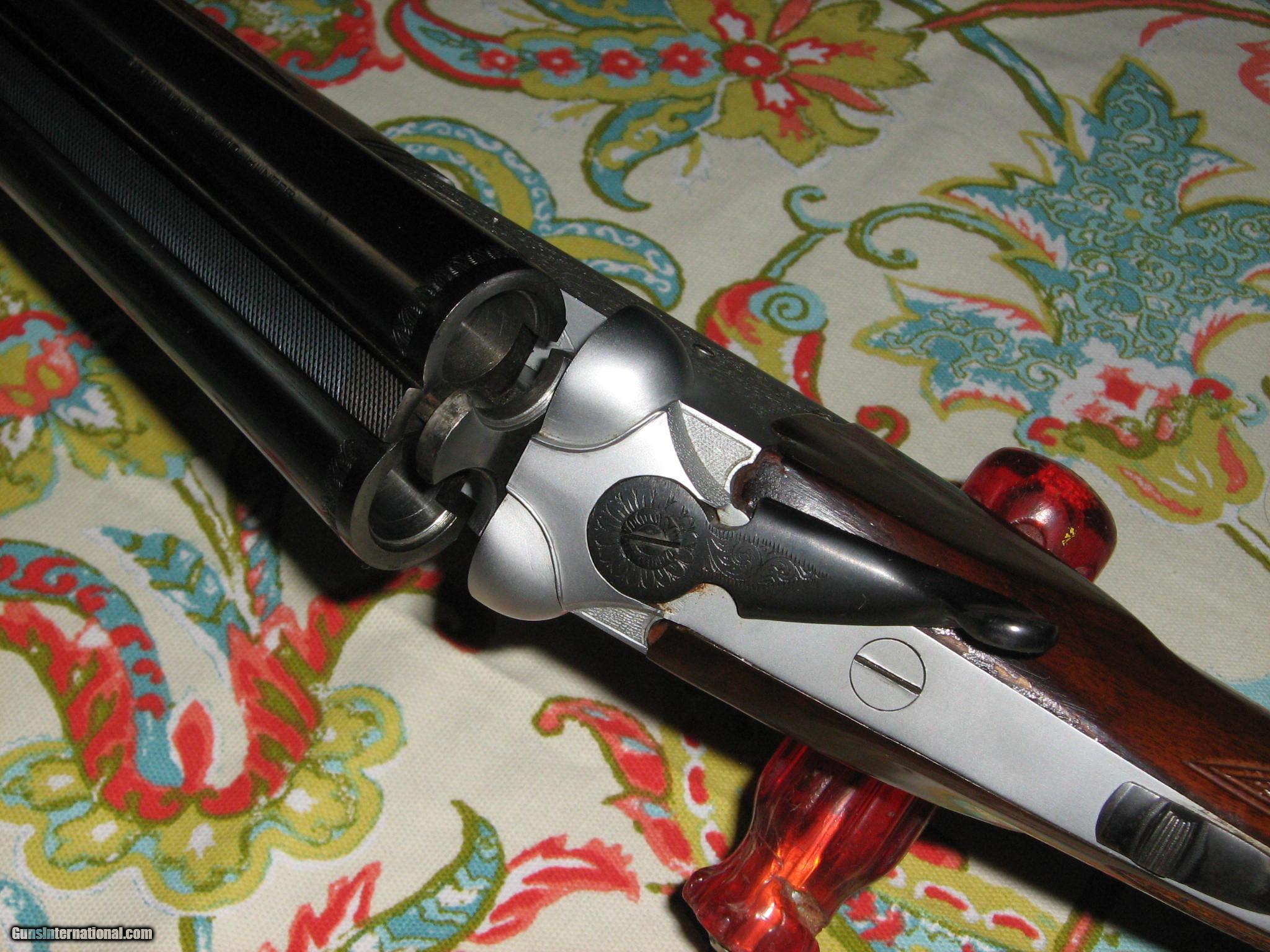 Description: Offered for sale is a Renato Gamba 28 gauge 27" double trigger side by side. This well built Gamba "Hunter Model" is choked mod/mod. It has a tradiitional pistol grip stock and a "splinter" forend. The barrels are equipped with extractors. This side by side is in very good condition. There is a small skuff on the top of the "rist" where the locking lever travels over it. It is very tight and appears to have been shot very little. I took this gun on trade and I am not a fan of side by sides. However, I did shoot a round of skeet with it and I was quite surprised at its pointability and forgiving modified chokes. It is a standard drop field stock. The length of pull, measured bfom the forward trigger is 14.25 inches. I will ship only to FFL dealers with current and verifiable licenses. I am not a dealer but I will accept money orders, bank checks or even personal checks. In any case, I will ship when funds are cleared and actually in my account. The shipping amount listed is a "flat" rate. I usually ship via UPS. Quoted shipping charges do not include insurance SOLD Manufacturer: Renalto Gamba Model: Hunter Caliber Info: 28 gauge Chambers: 2 3/4 " Ejectors: Extractors Condition: very good Metal Condition: excellent Wood Condition: minor handling marks Bore Condition: bright and shinny Barrels: 27" fixed choke Barrel Type: side by side Triggers: Double Gauge Info: 28 Stock: field Fore End: splinter Butt Pad: plastic LOP: 14.25 Choke Left: modified Choke Right: modified Engraving: receiver only |