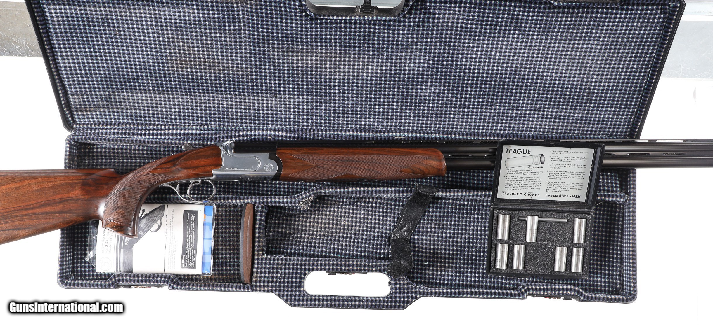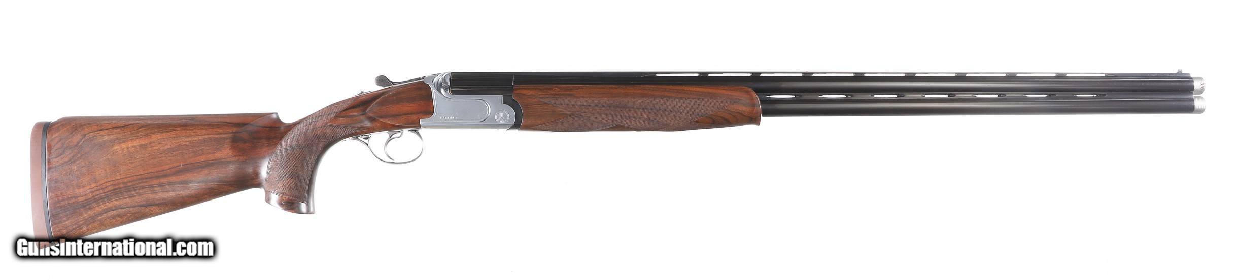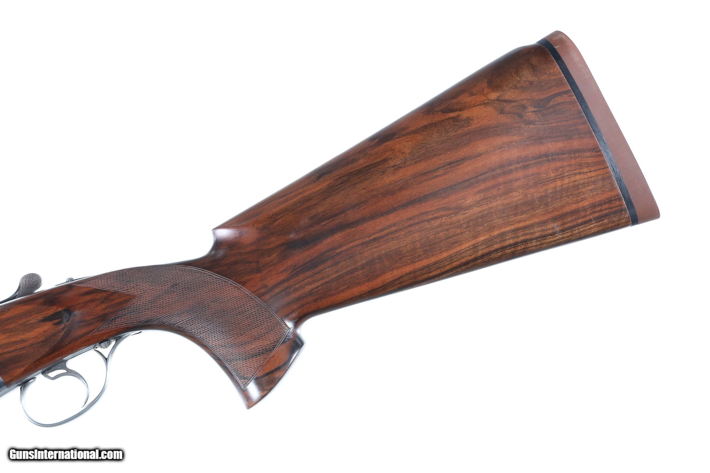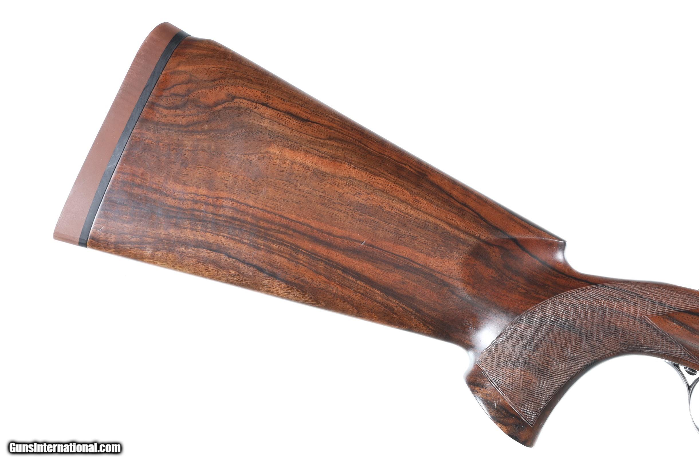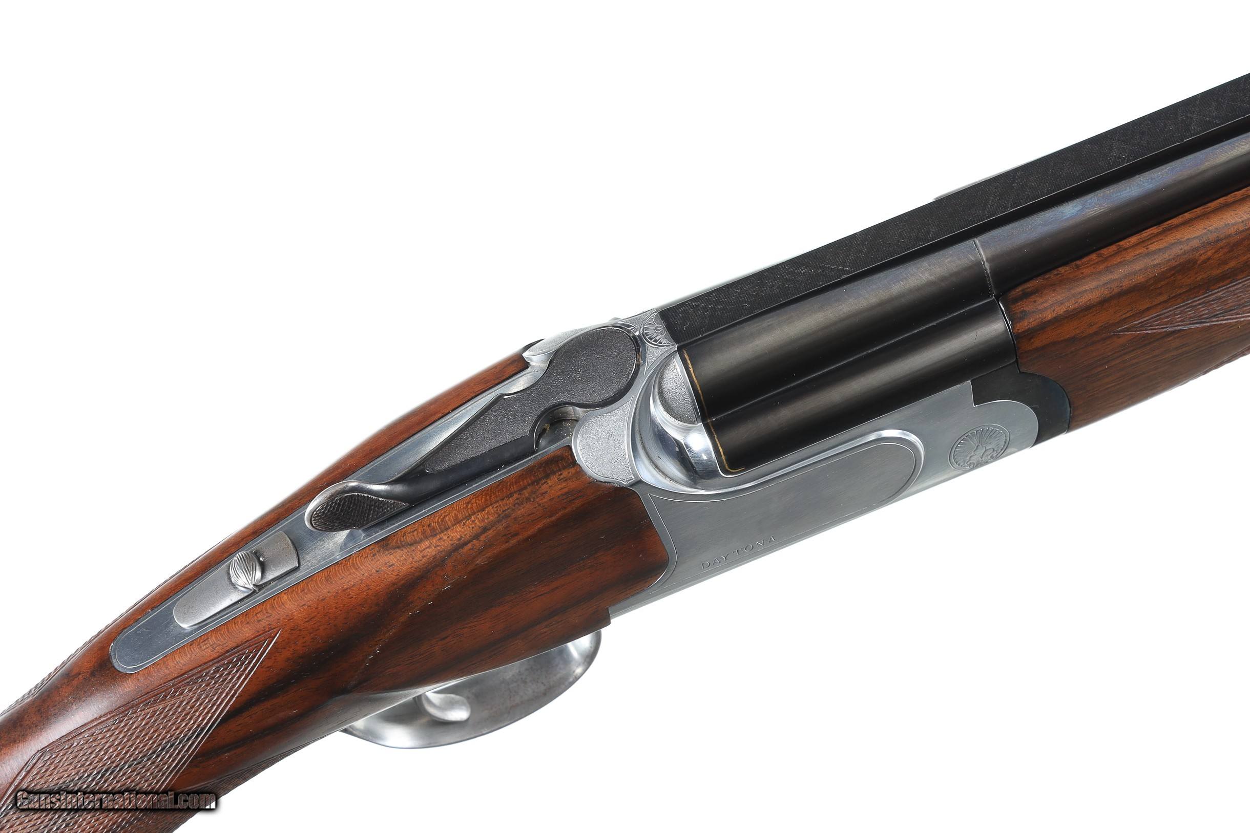 Description: Renato Gamba Daytona over under 12ga Drop Lock with single selective trigger and ejectors. Blue finished bbl's with a full compliment of 8 Teaque chokes and wrench. Varnished, checkered, highly figured, walnut, pistol grip stock with palm swell. Comes in factory travel case with instructions and spare butt pad. Condition: Very fine as used with bright bores and retains over 98% blue on bbl's. Mechanically excellent, action operates smoothly, lever remains to the right of center. Stocks are very fine with some handling marks and impressions. LOP 14-1/2", DAC 1-1/2", DAH 1-7/8". 8 lbs 7 oz • Free Shipping, No Credit Card Fees. • Lay-a-way available for this firearm. • 1/3 Down, a 1/3 in 30 Days, 1/3 in 60 Days. SOLD Manufacturer: Gamba Model: Daytona Serial Number: 25177 Barrel Length: 31 |
