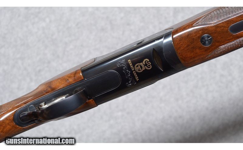 Description: Renato Gamba Daytona Trap Gun, atwo barrel combo set, O/U and Single Over,in 12 Gauge.The shotgun was originally imported and sold by Gamba, USA, Colorado Springs, Colorado (the twobarrel sets are marked as such). Special Attention: The single over barrel setis not a serialized match to the receiver, where the O/U barrel setand receiver serial numbers arematched. Also,the rib on the Single Over barrel setis 3/16" lower than that of the rib on the O/U barrel set. which affects the drop at comband drop at heel between the two barrel sets. LOP: 13 1/2" to wood, and 14 1/2" to recoil pad. O/U Barrels:DAC: 1 1/2" & DAH: 1 1/2" Single Over:DAC: 1 5/16" & DAH: 1 5/16". For additional information about the shotgun, see the bullet points within the ad. Please note: There are a total of 11 photographs for the shotgun,whichall can be viewed and supersized at Cabela's Gun Library . 12 Gauge SOLD Chambers: 2 3/4" Chambers. Metal Condition: "Excellent overall condition, just a very few of the slightest marks. Have to look hard to see any! The exterior blue in chamber area of the single over barrel is fading to a plum color. Wood Condition: "Excellent with just a couple of very small marks, must look close to see them! Barrels: O/U - 32" and Single Over - 34 Triggers: "Detachable trigger group, index finger selector. Stock Dimensions: See "Description Fore End: Walnut with wraparound checkering and finger grooves. Butt Pad: Pachmayr Decelerator recoil pad with non-slip heel. Sights: "Both barrel sets: Matted, raised, vented and tapered rib with intermediate and front white beads. Chokes: Fixed: O/U - Imp. Mod. & Mod. / Single Over - Full Item Location: Boise, ID |