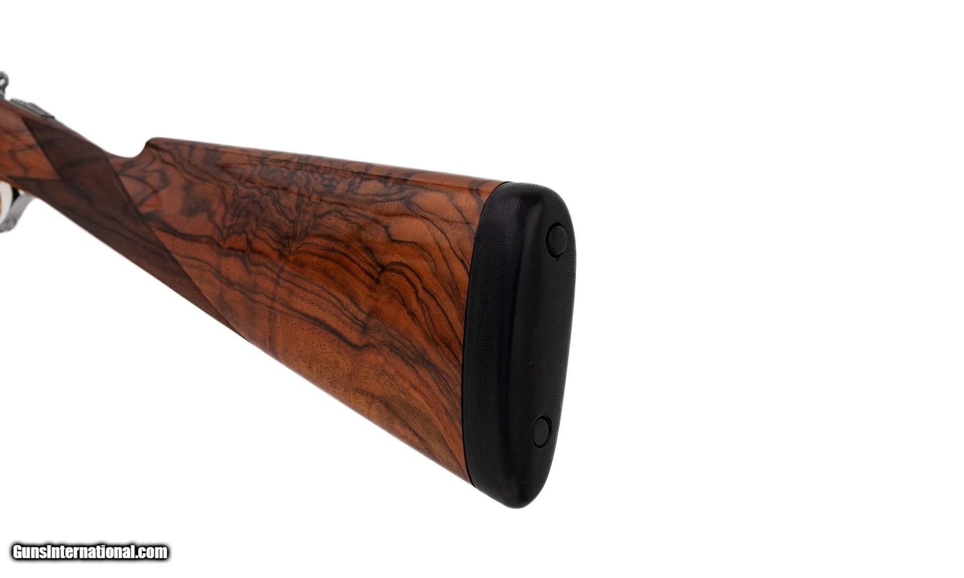 Description: Clean gun with some light handling marks. Briley chokes. SOLD Manufacturer: Renato Gamba Model: 624 Caliber Info: 12 Gauge Ejectors: Yes Condition: Preowned Metal Condition: Very Good Barrels: 27 1/2 Action: Boxlock Triggers: Single Gauge Info: 12 Gauge Stock Comb: 1 5/8 Stock Heel: 2 5/8 Fore End: Checkered LOP: 14 3/4 Rib: Flat File Cut Chokes: 10 Briley Choke Tubes Case: Maker's Case |