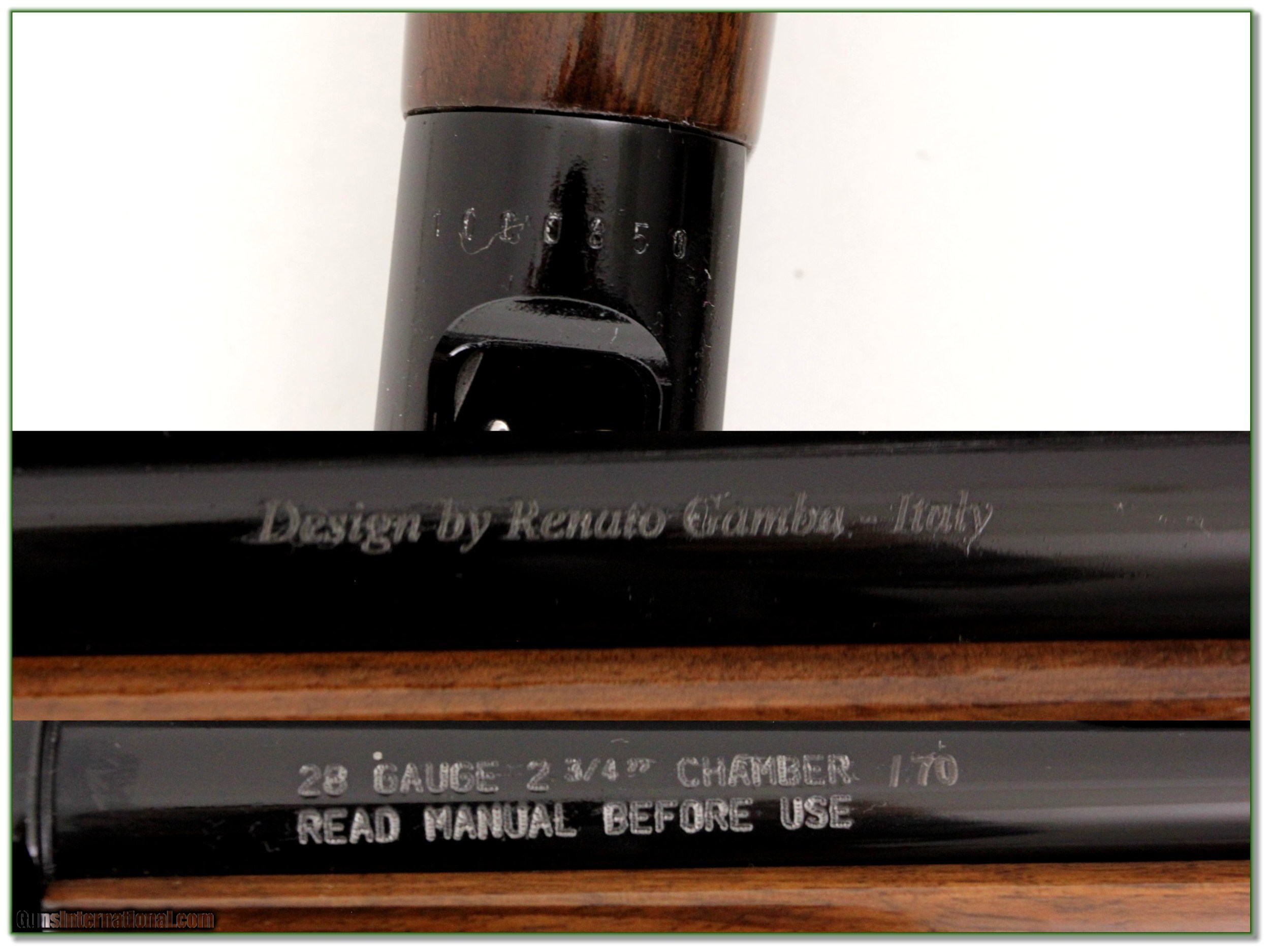 Description: This is a beautiful and seldom seen Italian made Renato Gamba Fusion 28ga. It has a 30in Vent Rib barrel and comes with a full set of choke tubes. The gun is about new and looks to be unfired. The wood is outstanding! Where will you ever find a nicer 28 Ga Semi-auto? I am selling this one on consignment and as such lay-a-way can’t be used. It does of course have the standard 3-day inspection. Shipping with insurance is $39. Please email me with any questions or larger pictures. (Consign your quality firearms with Shooting Investments for only 12%! Let me know if you have any you would like to sell!) 20-0029 Payment: Payment is by Money Order, Cashiers Check or Personal Check. I can now also accept Credit Cards (MasterCard, Visa, Discover & American Express) with a 3% convenience fee. PayPal can be used for some items but never for firearms. Shipping: The shipping charge will be listed in each description. It is $39 for most firearms. Some heavy guns or those insured for over $2000 will be higher. Shipments to Alaska and Hawaii are higher because air shipment is required. Most firearms are shipped on Tuesday and Thursday and usually in 5 days of receipt of payment. We package all shipments carefully and insure them. Optics are shipped Priority Mail and most other non-firearm shipments are shipped First Class. Returns: Our return policy is simple. If for any reason you are not pleased with your purchase, you may return your item for a full refund of purchase price. Ammunition cannot be returned. It is important to us that you are happy. Guns cannot be fired or dissembled before returning them and they must be returned in the same condition as received. Notification of a return must occur with-in 3 days of receipt at your dealer. Shipping, convenience and dealer fees are not refundable and are the responsibility of the buyer. Lay-a-way: If needed, we offer a 60 day lay-a-way option on most firearms. It is 1/3 now, 1/3 in 30 days and 1/3 in 60 days. Lay-a-way firearm sales are final and if not completed the first payment cannot be returned. Consigning your firearms with Shooting Investments: We will help you get top dollar for your firearms. While most local guns shops charge 20% or more, our fee is only 12% with a minimum of $75. At your local gun shop it might take months to sell. Selling on-line provides instant access to thousands of interested buyers. You won’t find any other on-line dealer willing to sell your firearms for only 12% or listing every gun on 3 separate s. Selling through an House typically costs the seller 15% and the buyer an addition 15% (so 30%) and you have to wait several months to sell and longer to receive funds. If properly priced, we will sell your firearms in a few weeks. Send us an email or give us a call and we’ll explain how easy it is for you to get top dollar. Trading: Trading for use is really just buying your gun to re-sell. If you have a gun you want to trade, please email a picture and we will let you know what we can give or it. You will always get more if we sell it for you on consignment. Help for California Buyers: We are happy to ship to California. It is the buyer’s responsibility to make sure any item you buy is legal in your state. We are also happy to help with your purchase of a firearm from someone other than us. If you see a gun you would like to buy but the seller can’t or won’t ship to California they can ship to use and we’ll then ship it to your California dealer. The cost for this service is only $30 + shipping. Let us know if we can help! SOLD |
