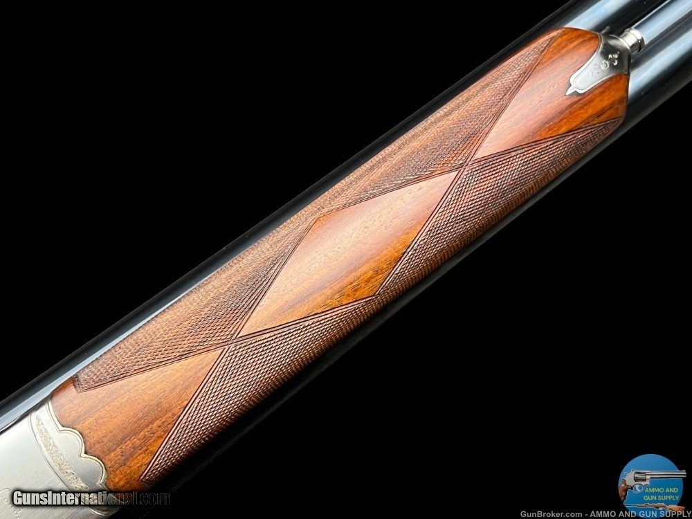 Description: SOLD TO SATISFIED CLIENT! PLEASE SEE OUR OTHER FINE FIREARM LISTINGS! RENATO GAMBA LONDON MODEL 12 GAUGE 27.5" H&H SIDELOCKS DT 1979 MANUFACTURER - RENATOGAMBA - ITALY MODEL - LONDON ACTION - H&H SIDELOCK SXS WITH DOUBLE TRIGGERS AND EJECTORS SN - 26696 BARREL LENGTH - 27.5" GAUGE - 12 GAUGE 2.75" CHOKED - MODIFIED .016" / FULL .040" CAPACITY – 2 DAC - 1.375" DAH - 2.25" LOP - 15" WEIGHT - 6 LB 14 OZ SIGHTS - MATTED TAPERING RIB WITH SILVER FRONT BEAD PRODUCED - 1979 The Renato Gamba London Model 12 Gauge shotgun, crafted in 1979, epitomizes the pinnacle of Italian gunmaking with its exceptional quality, precision, and elegance. Manufactured by Renato Gamba, a prestigious name in the world of firearms, this shotgun features the sophisticated Holland & Holland (H&H) sidelock action, renowned for its reliability and smooth operation. The double triggers and ejectors further enhance its functionality, making it a superb choice for both collectors and discerning shooters. This model, bearing the serial number 26696, comes with 27.5-inch barrels, perfectly balanced for optimal performance in the field. The shotgun is chambered for 12 gauge 2.75" shells, providing versatility for various shooting disciplines. The barrels are choked modified at .016" and full at .040", offering a well-rounded pattern suitable for a range of shooting activities. Weighing in at 6 pounds 14 ounces, this shotgun is light enough for easy handling yet substantial enough to absorb recoil effectively. The matted tapering rib with a silver front bead sight ensures quick target acquisition and precision shooting. The dimensions of the stock, with a drop at comb of 1.375 inches, a drop at heel of 2.25 inches, and a length of pull of 15 inches, are designed to provide a comfortable and ergonomic shooting experience. The condition of the Renato Gamba London Model is as-new, reflecting meticulous care and minimal use. The bores are clear, the triggers are crisp, and the hammers and ejectors are strong, ensuring reliable performance. The checkering on the straight grip and forend is sharp, contributing to a secure and comfortable hold. The stock and forend are crafted from very nice European walnut, featuring a fine checkered butt, adding both beauty and practicality. Aesthetic excellence is a defining feature of this shotgun. It boasts fine English scroll engraving motifs around the cocking indicators and sidelocks, with the top tang and top lever also showcasing fine English scroll coverage. The demibloc chopper lump barrels, deluxe checkered straight grip stock, and splinter forend further elevate its elegance and functionality. The English straight grip stock and splinter forend, combined with the meticulous craftsmanship, make this shotgun not only a high-performing firearm but also a work of art. The engraving and the high-quality materials used reflect the tradition and expertise of Renato Gamba's gunmaking heritage. In conclusion, the Renato Gamba London Model 12 Gauge is more than just a shotgun; it is a symbol of luxury and craftsmanship. Built in 1979 and maintained in like-new condition, it stands as a testament to the enduring quality and timeless appeal of Italian firearms. Its current replacement cost is 28,000 euros, highlighting its value and the investment it represents. This shotgun is an exemplary choice for those who appreciate the finest in firearm engineering and artistry. This shotgun came from an extensive collection of fine Italian shotguns. FLAT $50 S/H/I. 4%CREDIT CARD FEE APPLIES. FOXTROT IS A LICENSED FFL DEALER WITH MANY POSITIVE FEEDBACKS SO BUY WITH CONFIDENCE! SOLD Shotgun Gauge: 12 Gauge Manufacturer: RENATO GAMBA Model: LONDON Serial Number: 26696 Chambers: 2.75 Ejectors: YES Condition: AS-NEW Metal Condition: AS-NEW Wood Condition: AS-NEW Bore Condition: AS-NEW Barrel Type: DEMIBLOCK CHOPPER LUMP Action: SIDELOCK EJECTOR Triggers: DOUBLE - FRONT HINGED |