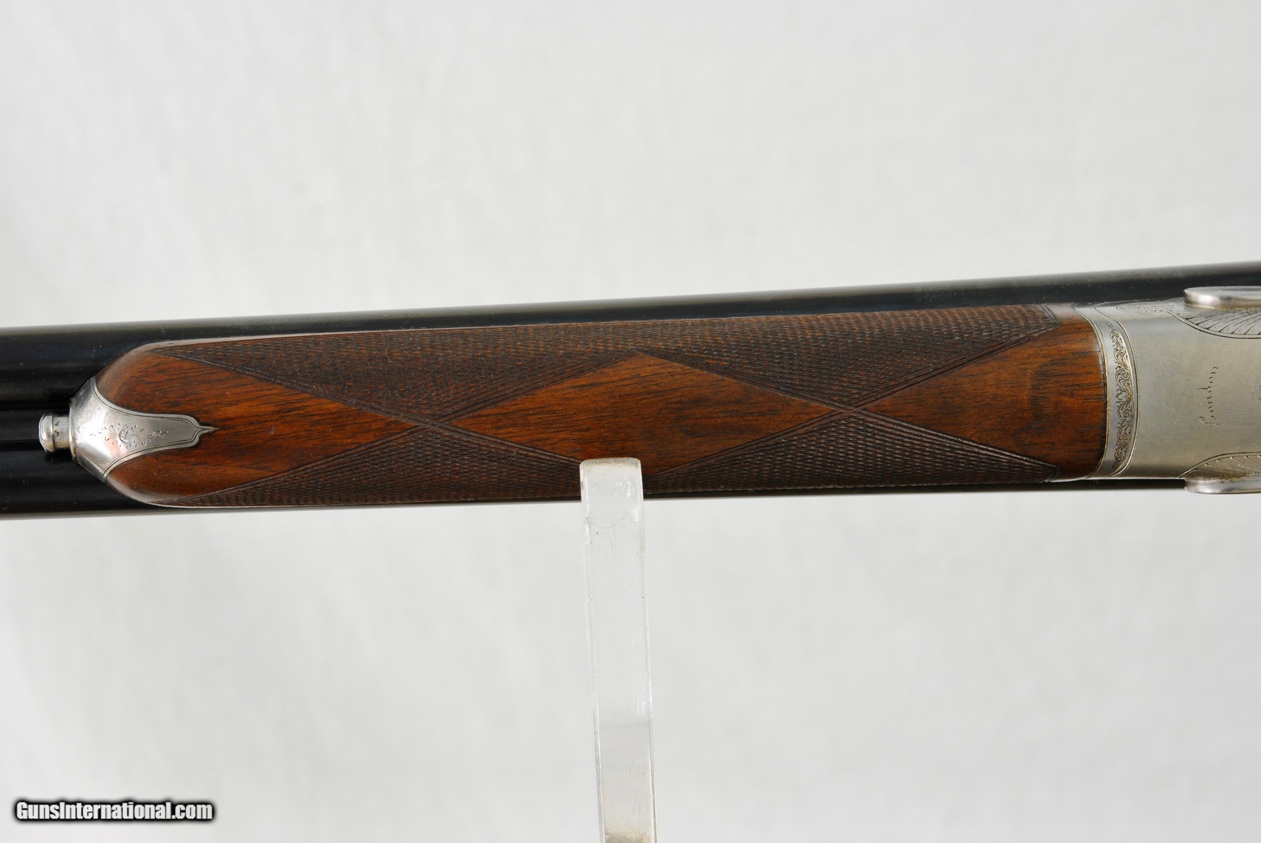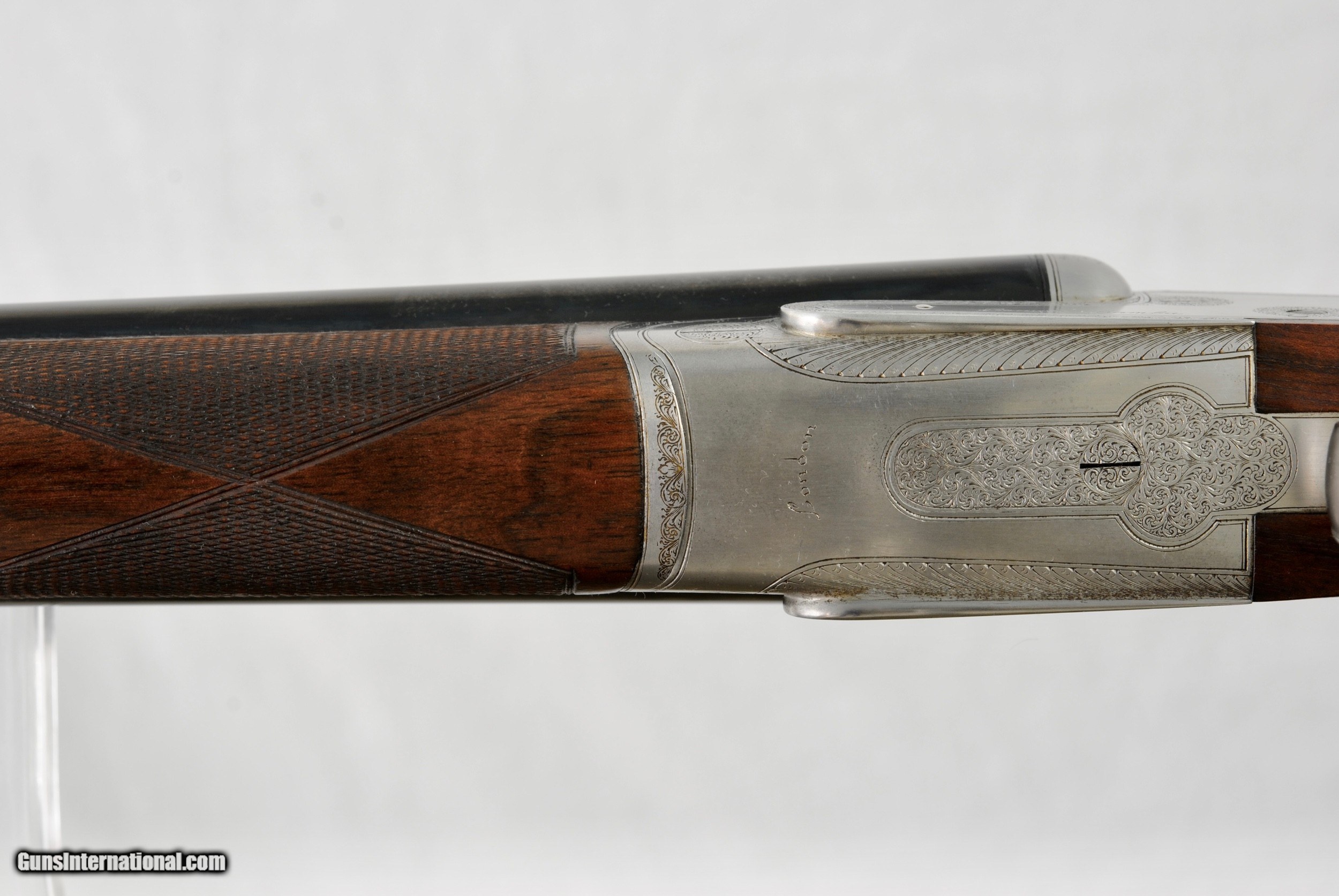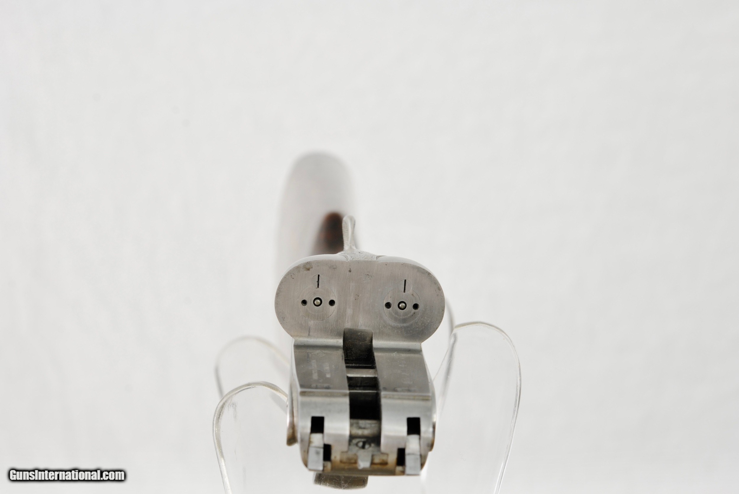 Description: I have had this Renato Gamba 20 sidelock in my collection for many years. A plantation quail hunt and a few rounds of Skeet are the extent of its service. Made in 1979. A well designed bar action sidelock with a supurb inertia single trigger. Ejectors. Hand filed and tapered rib. Hand engraved coin finish action and forend iron. Manual safety. Cocking indicators. Barrels are 27 1/2" with Mod and Full chokes. Chambers are 2 3/4". Weight of gun is 6 LBS 2 5/8 OZ. Straight grip stock with long trigger guard tang. Vacant stock oval. Very nicely figured wood. LOP is 14 3/8". Drop at comb - 1 3/16". Drop at heel - 2 1/8". Shipping is $50. Hard to find a Renato Gamba London in 20 Gauge. SOLD Shotgun Gauge: 20 Gauge |