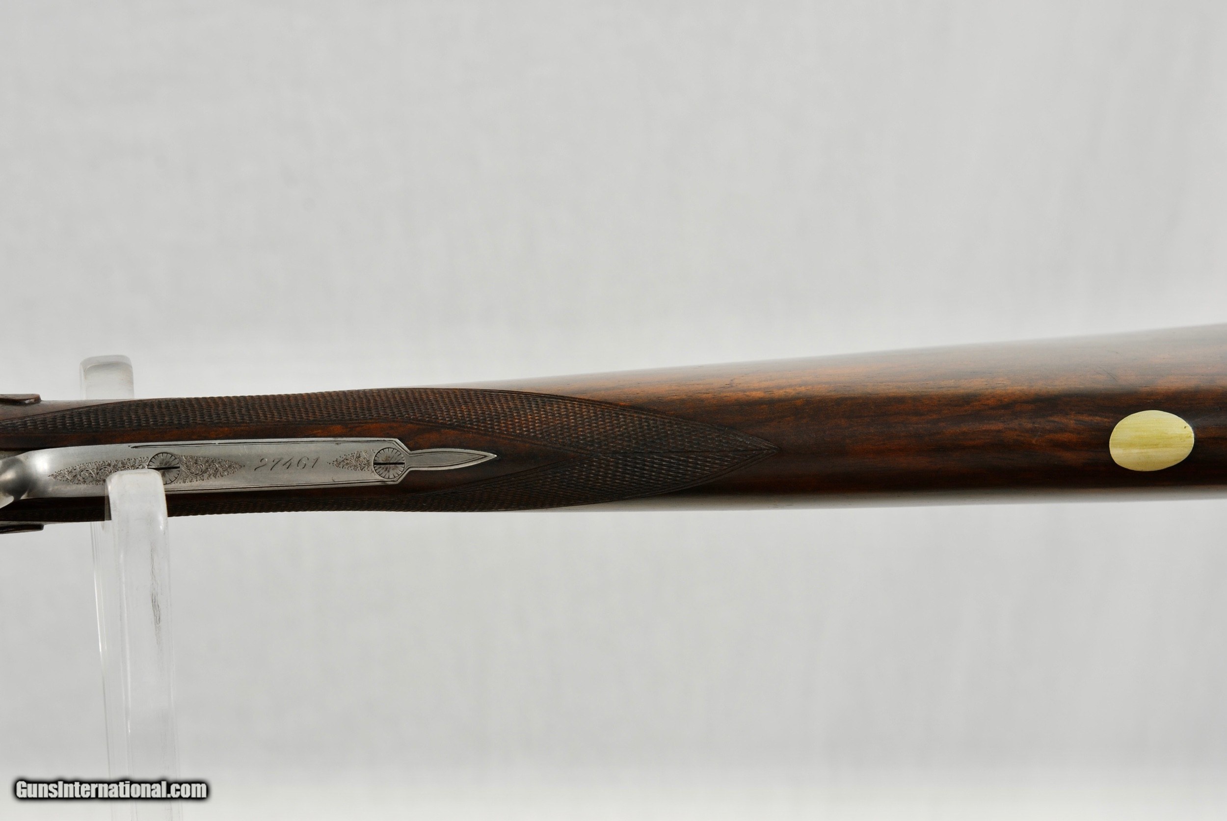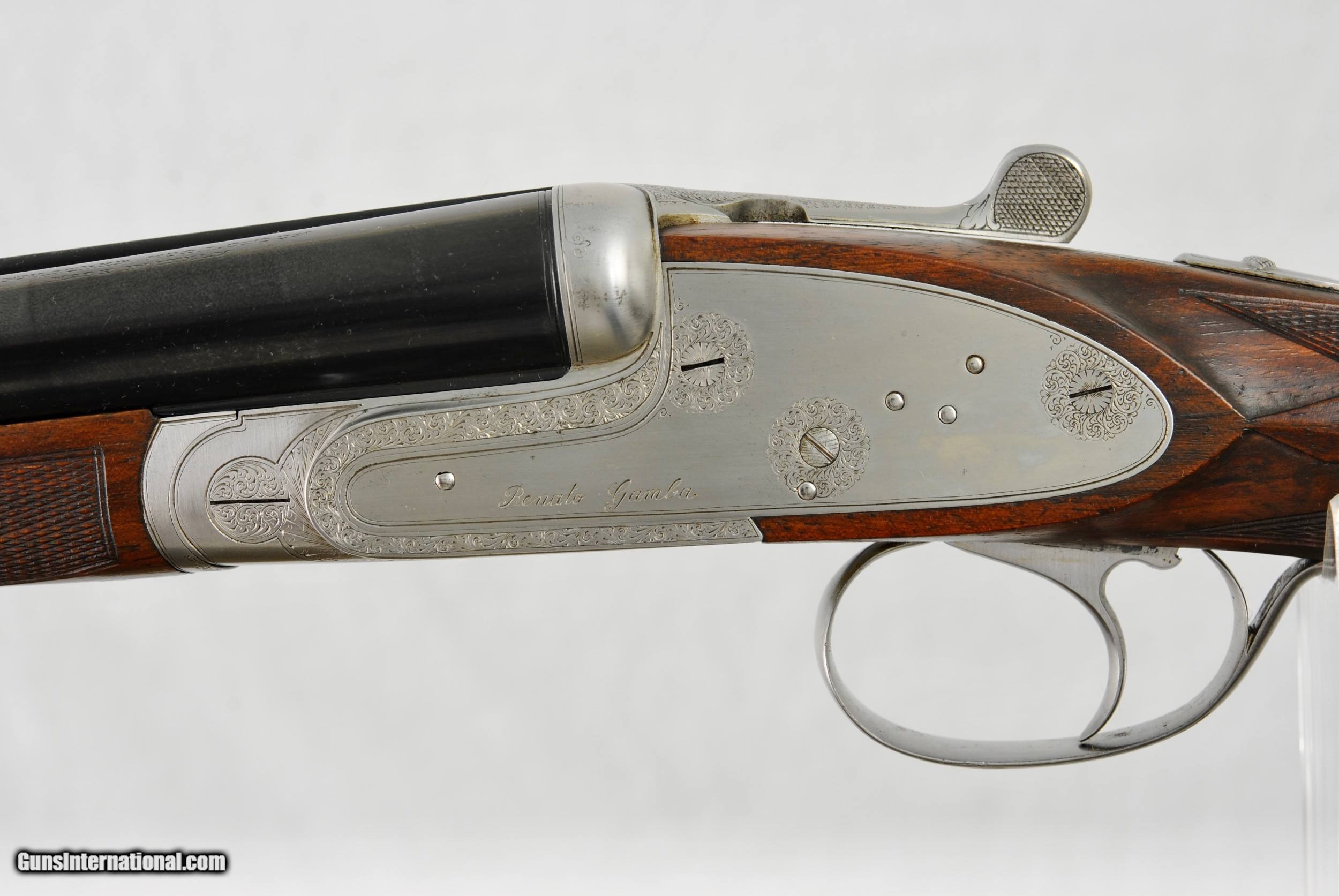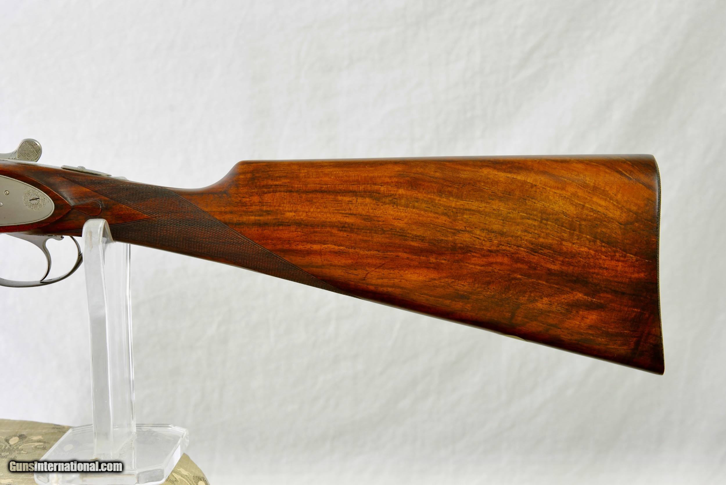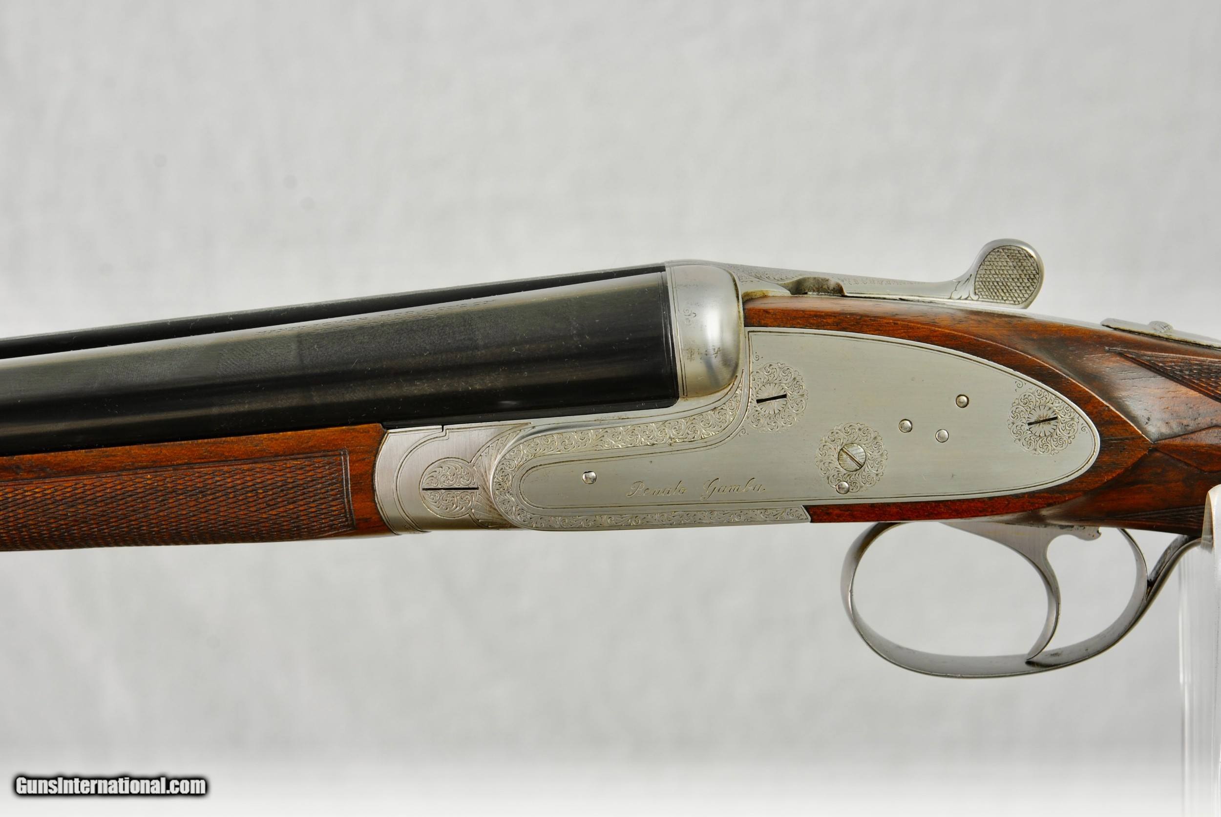 Description: I have had this Renato Gamba 20 sidelock in my collection for many years. A plantation quail hunt and a few rounds of Skeet are the extent of its service. Made in 1979. A well designed bar action sidelock with a supurb inertia single trigger. Ejectors. Hand filed and tapered rib. Hand engraved coin finish action and forend iron. Manual safety. Cocking indicators. Barrels are 27 1/2" with Mod and Full chokes. Chambers are 2 3/4". Weight of gun is 6 LBS 2 5/8 OZ. Straight grip stock with long trigger guard tang. Vacant stock oval. Very nicely figured wood. LOP is 14 3/8". Drop at comb - 1 3/16". Drop at heel - 2 1/8". Shipping is $50. Hard to find a Renato Gamba London in 20 Gauge. SOLD Shotgun Gauge: 20 Gauge |