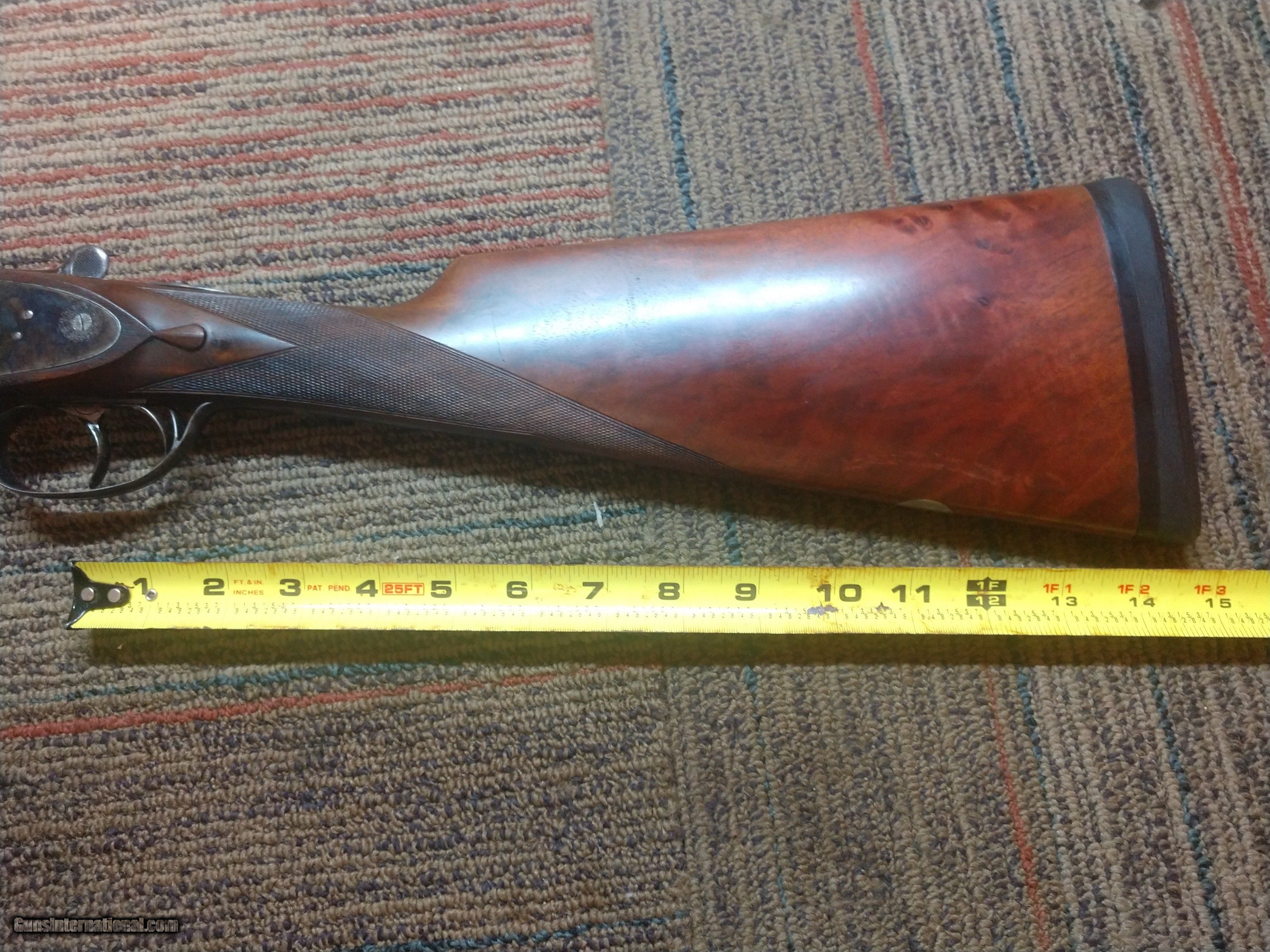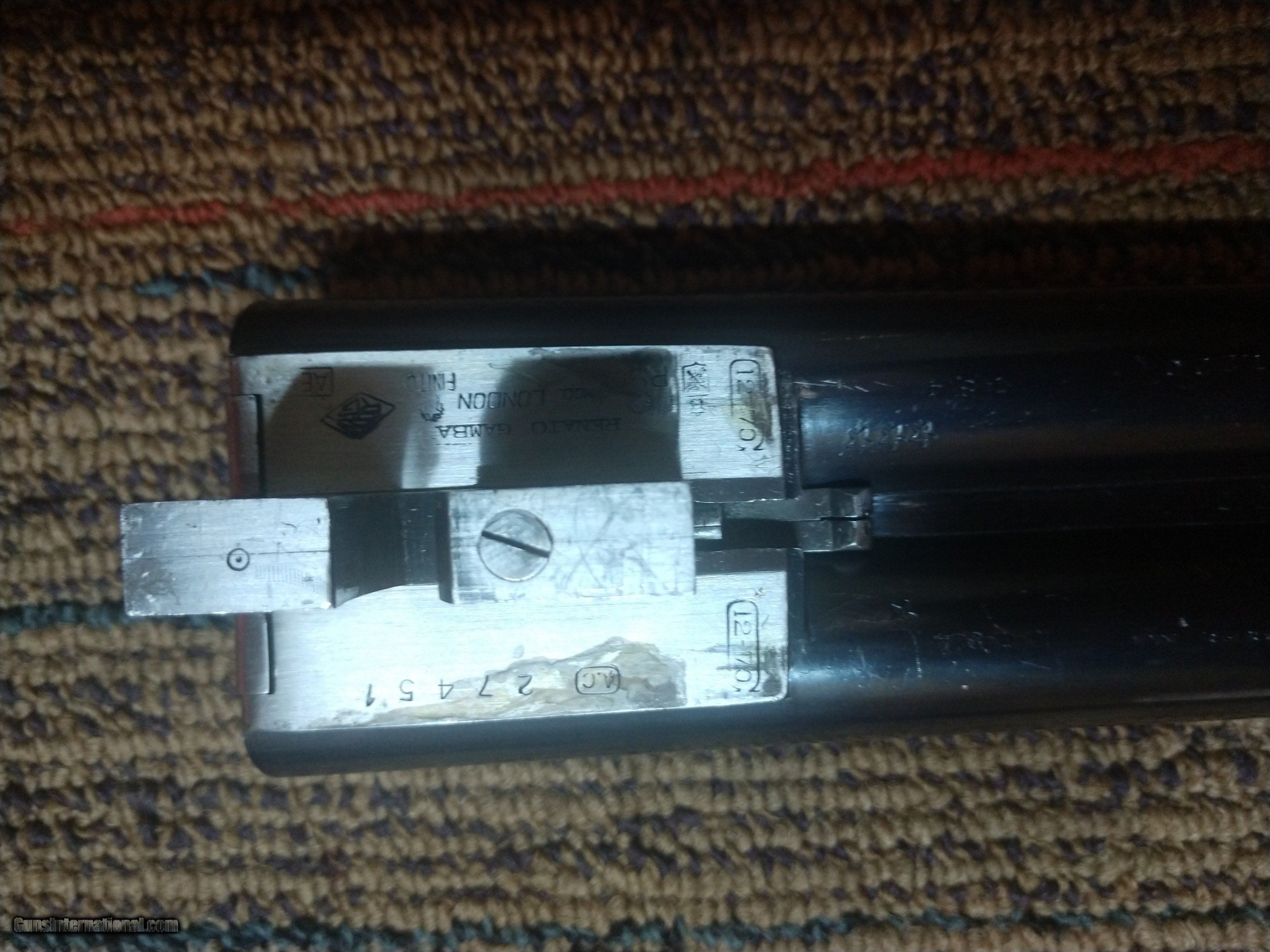 Description: Almost like new. 12 ga. With Churchill rib. Choked IC&Mod. Any questions call or text Jim at 352-359-5021 SOLD Shotgun Gauge: 12 Gauge Chambers: 2 3/4 in Ejectors: Yes Condition: Very good Metal Condition: 97 percent Wood Condition: Very good Bore Condition: Clean |