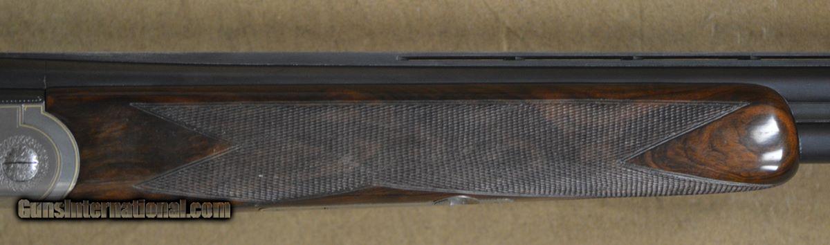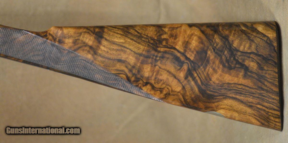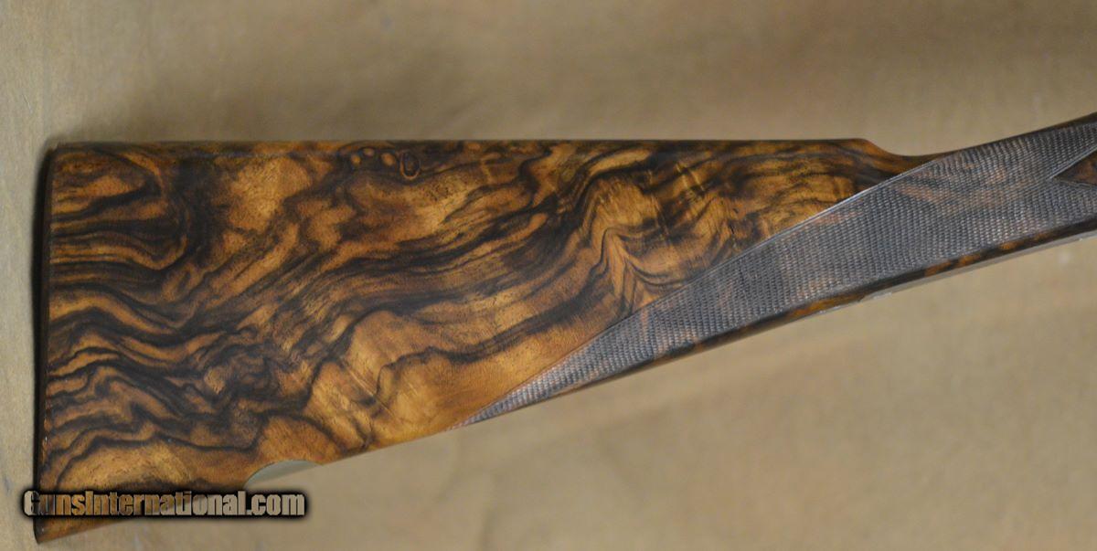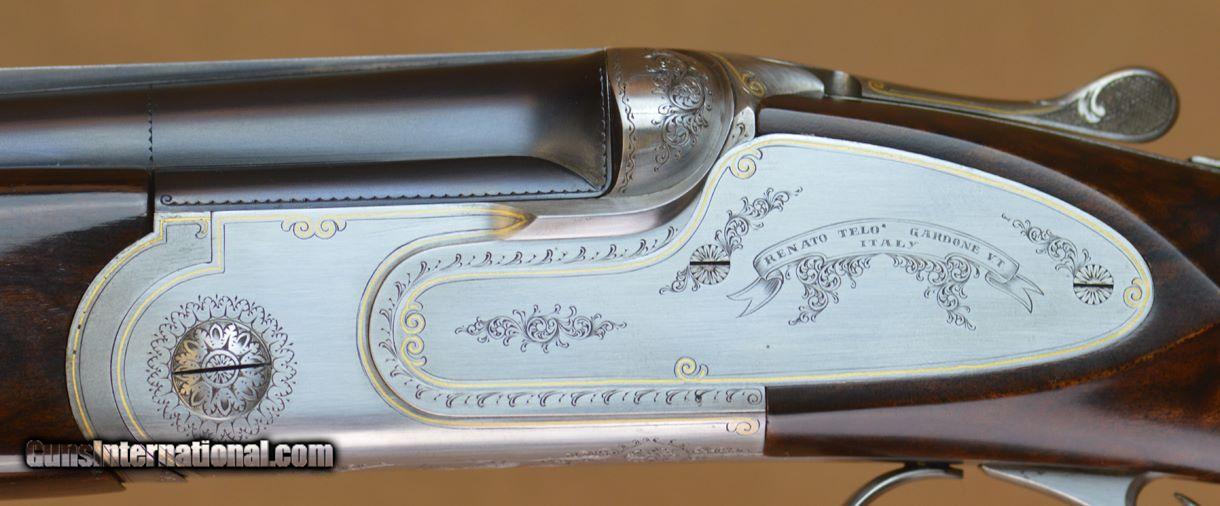 Description: Renato Telo Gold Featherweight Game 28GA with 28" fixed choke (IC/M). Coin finished side-plates with outstanding English scrolls and gold borders. Outstanding English straight-hand stock to checkered butt, slim game forearm. Very diminutive game gun on scaled 28GA action. Single trigger. Outstanding condition, very minor handling marks. Does not include case. SOLD |