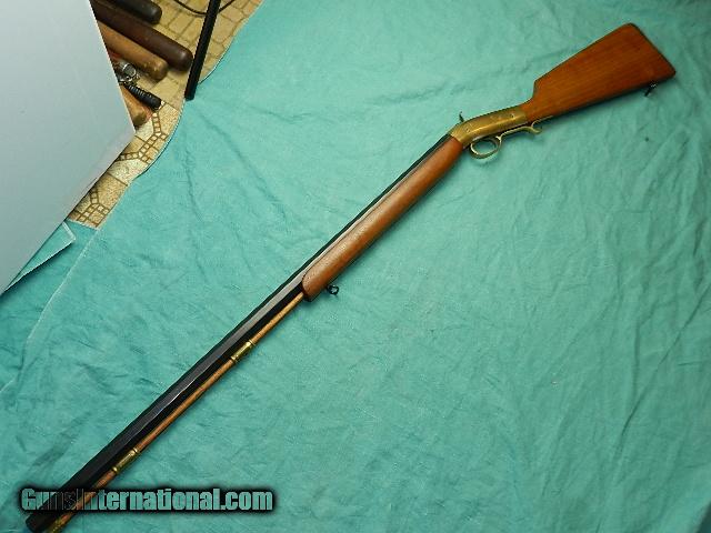 Description: Rarely seen this Mowry Texas made smooth bore percussion shot gun with a heavy 32" octagonal barrel and very clean smooth bore choked at CYL. The action works good and this fine gun looks like it may have been test fired. Factory blue is about 98%, and the brass frame has a clean patina. A well made gun comes with an oak ram-rod with a heavy brass tipes with factory installed sling swivels. LOP is 14 1/2" with a steel blued butt-plate. The hardwood stocks are very clean. Due to the high volume of emails, I can’t keep up with over 200 a day, please be patient, when corresponding thanks . We don’t have asite .I prefer money orders or a check. Item ships when funds come in. If you can only pay with a card let me know. I’m sorry I don’t list my phone number, did that for 30 days, never again.. I can’t talk on the phone all day…who will ship the guns? I’m just one person, and it’s very busy here! I do a brisk volume! I hope you like my wide selection of unusual guns, knives and gun parts. Shipping price determined by zip code. I try to keep the prices affordable, which means I make less money than most dealers. You won’t get altitude sickness with my prices! I consistently have the best selection of older guns If you BUY IT NOW you must still contact us for details buy it now doesn't end the sale, it just sends an email telling us you want to buy this gun. A phone call won’t secure a sale! Not home many times, the first buyer by email buys the gun !Thissite does not close down a sale when you do a BUY IT NOW like Ebay! I can get six buy it nows in an hour, first buyer to email gets the guns, others are in second place! Best to send another email . Sometimes not home to get calls. Some guns are required shipment to a gun dealer near you for a transfer to you when it arrives. With the widest selection of older guns at great prices, We don’t have a store, and sell on the internet only. SOLD |
