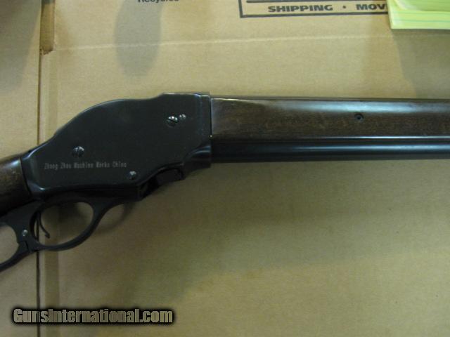 Description: Here is a shooting replica of a Winchester 1887 12 ga Lever Action shotgun. As new made by Zhong Zhou Machine Works in China. These are well made replicas for Cowboy Shooting Action Events, home defence, or just old fashion hunting. Gun is in unfired condition, no scratches or dings. SOLD |