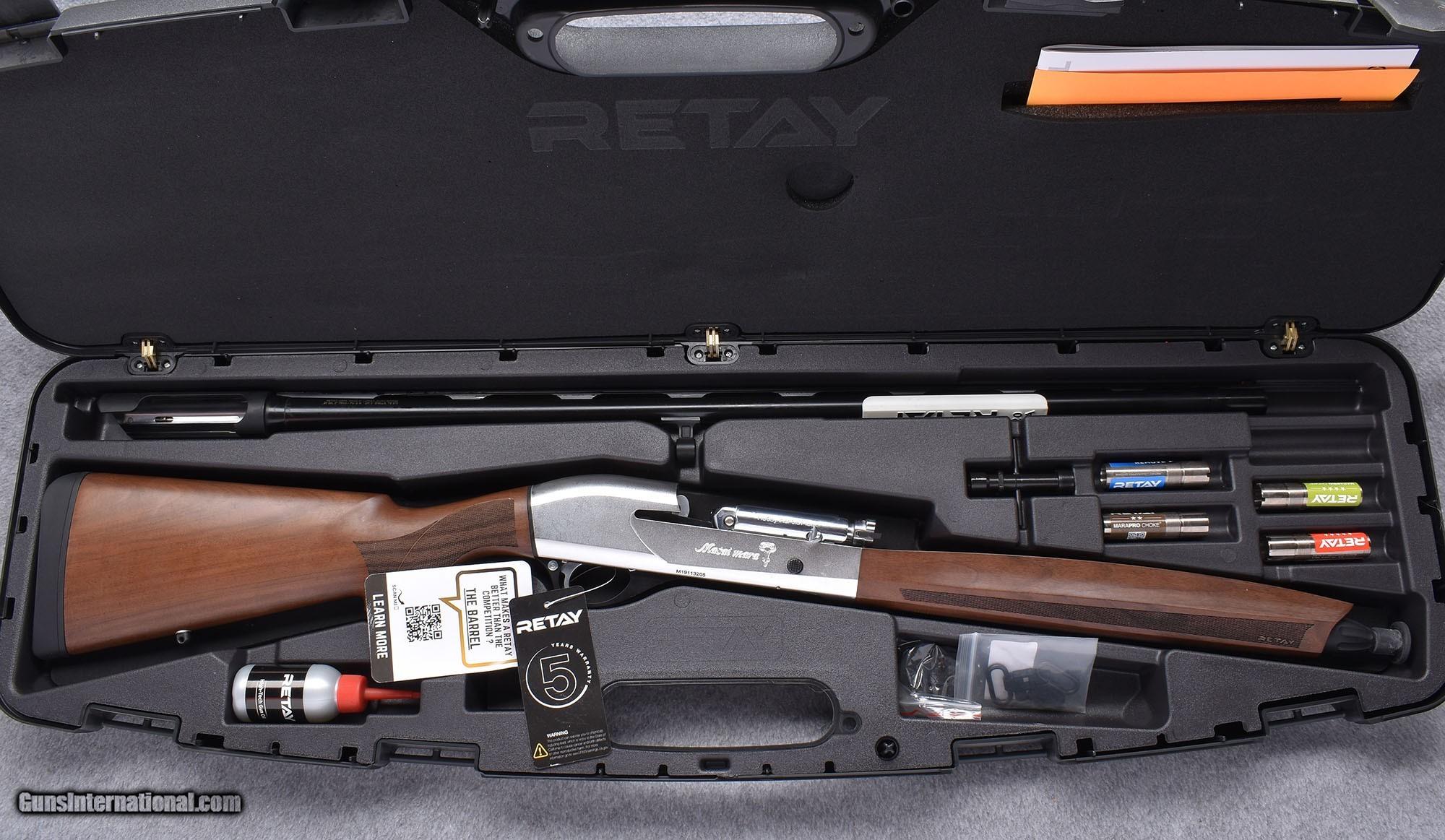Description: Retay Masai Mara semi-auto shotgun features Retay's Straight Line Inertia Transfer System™ paired with the Inertia Plus bolt/rollover Torsion Spring Action™ to insure reliability. Alloy lower receiver, Monoblock milled Bohler steel upper. Grade 2 walnut stock with adjustable fit plate and shim system. Trigger assembly easily removed with the press of a button. New in Factory Box, Dove Season Special Pricing. SOLD Shotgun Gauge: 20 Gauge Model: Masai Mara Comfort Metal Condition: Blued barrel, Coin Anodized Finished Receiver Wood Condition: Grade 2 Oiled Walnut Bore Condition: New LOP: 14 1/4 Weight: 6 Lbs. 7 oz. Sights: Vent Rib, Red Fiber Front Chokes: Interchangeable MaraPro Chokes C-IC-M-IM-F |