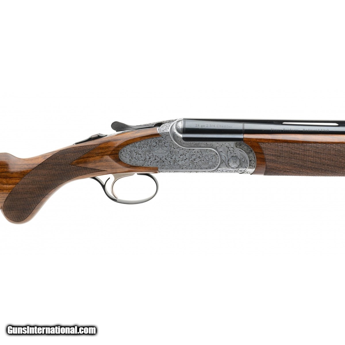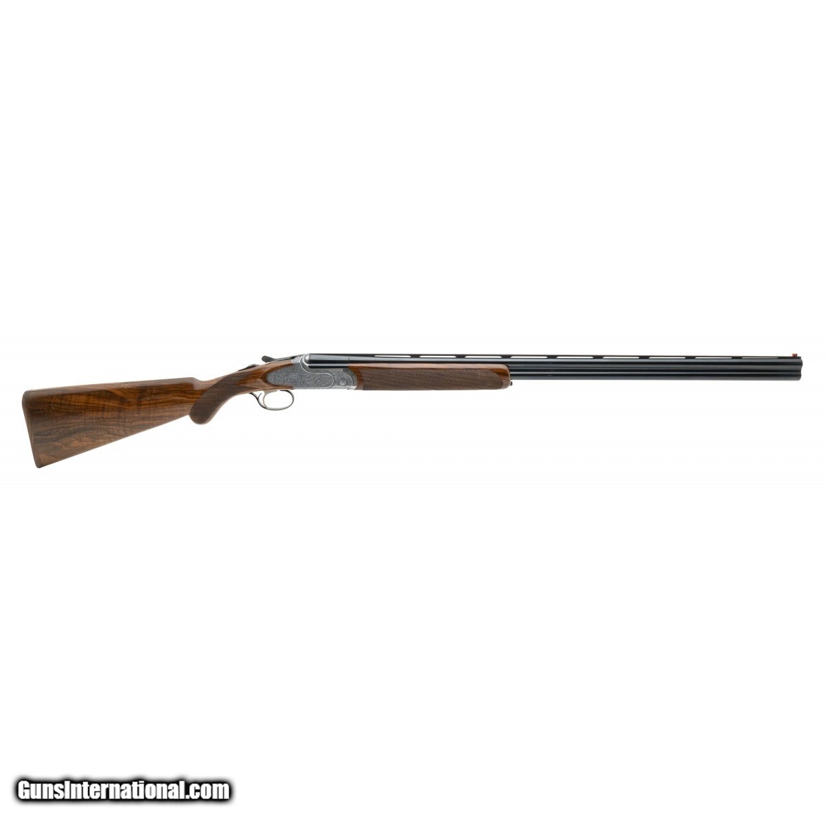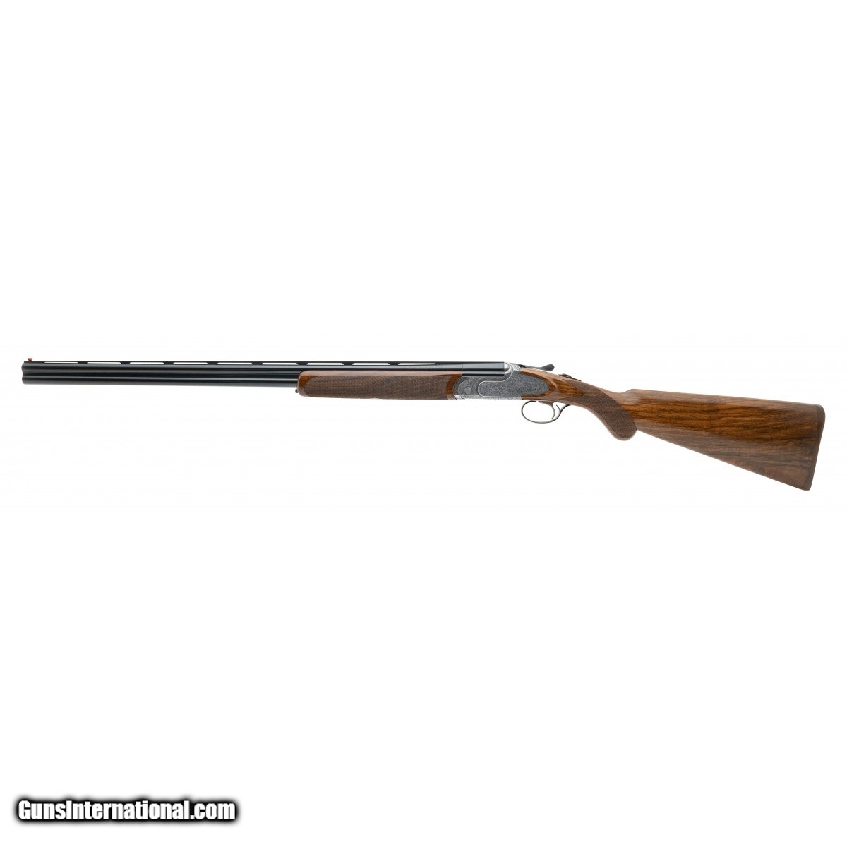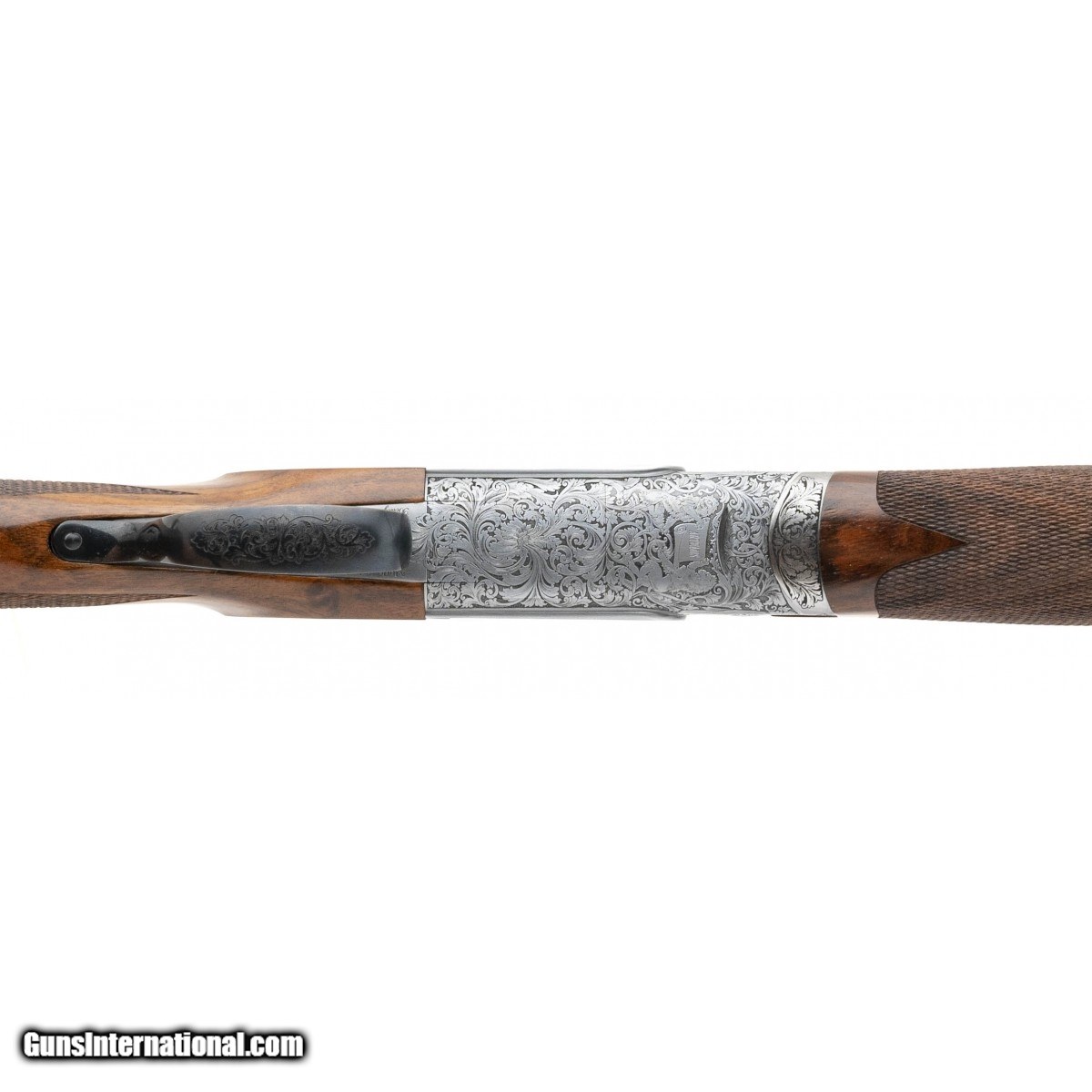 SN:110434. Over and under field gun with engraved silver receiver & beautifully figured walnut stock and fore-end. In excellent condition. Comes in box with a set of chokes, choke tool, & a couple of dummy rounds.