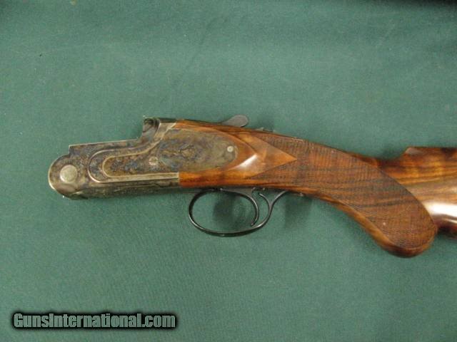 Description: 6805 Rizzini Artimus small action 28 gauge 30 inch barrels,sk is mod im full wrench papers, like new, 99% sideplates, wood butt plate, case colored receiver, vent rib ejectors, single select trigger, schnabel forend. round knob, TIGER STRIPED WALNUT HIGHLY FIGURED STOCK.99% condition, AS NEW IN CASE. SOLD |