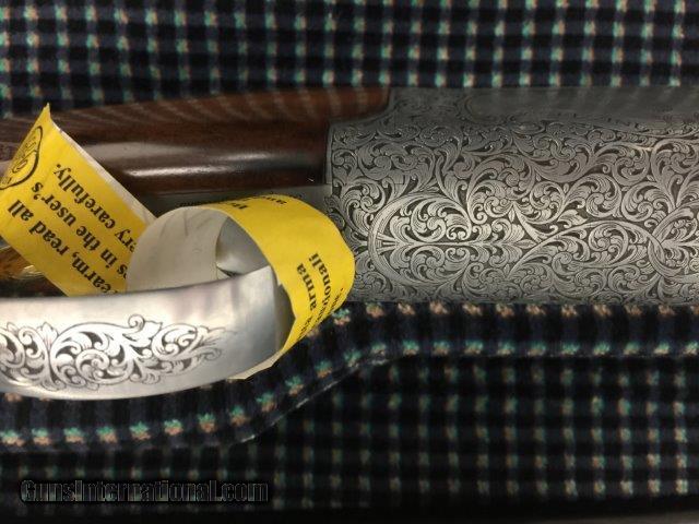 Description: I waited nearly 10 months to get this specially-ordered Batista Rizzini Round Body Game Gun Model EL with 32" barrels, high-grade wood and Prince of Wales grip. It's one of a very few hunting shotguns with a frame that is truly scaled to the .410 gauge. It came with 5 flush Rizzini screw-in chokes. It has never been shot or even assembled but both halves total 6.5 lbs. in weight. This gun is exquisite but can't bring myself to take it in the field on a Quail hunt and beat it up. SOLD Manufacturer: B. Rizzini Model: Round Body Game Gun Model EL Serial Number: 94982 Caliber Info: 36 Bore: .410 Chambers: 3 Ejectors: Automatic Condition: NIB Metal Condition: NIB Wood Condition: NIB Bore Condition: NIB Barrels: Cr Mo Steel, Chrome-lined bores, glossy blued Barrel Type: Over/Under Action: Low Profile, Coin-Finished Round Box-Lock Triggers: Single Selective Gauge Info: .410 Stock: Prince of Wales Stock Dimensions: 14 5/8" LOP Stock Drop: 1.5" x 2.25 Stock Cast: Neutral Fore End: Straight Butt Pad: Hand-Checkered Wood LOP: 14 5/8 Rib: Solid Hunting Rib Finish: Polished Oil, Hand-Checkered Weight: 6.5 lbs Sights: Single Brass Hunting Bead Manufacture Date: 3/10/2016 Chokes: 5 Interchangeable Flush Rizzini Chokes Choke Left: Interchangeable Screw-Chokes Choke Right: Interchangeable Screw-Chokes Engraving: Hand Finished full coverage foliate scroll with Game scenes Extras: 32" length barrels, High-grade wood Case: Custom Negrini with Embossed Leather Rizzini Trade Label Item Location: North Wales, Pennsylvania 19454 |