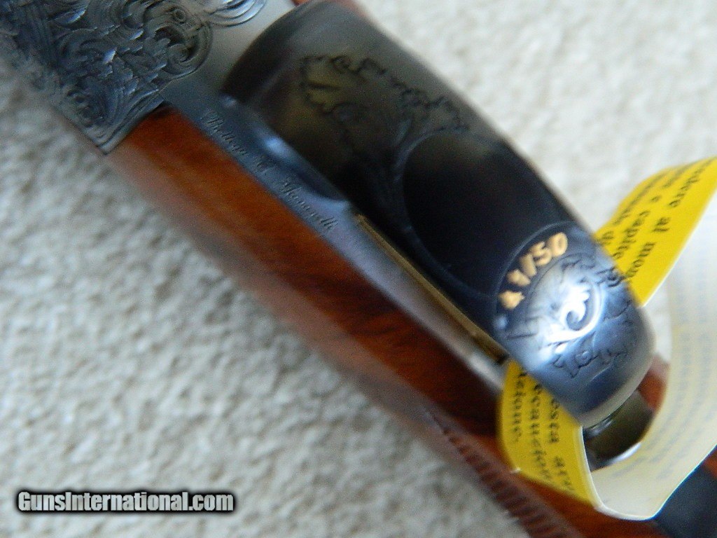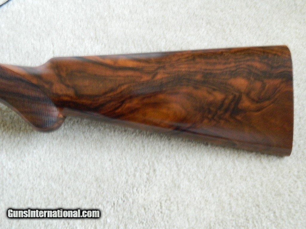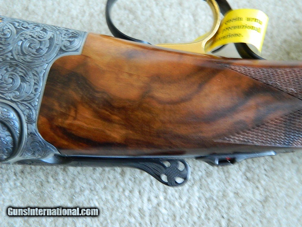 Description: It has been 50 years since Battista Rizzini started B. Rizzini in Brescia Italy. He has built one of the finest most reputable Italian shotgun companies in the business. To celebrate his 50 years in business this beautiful shotgun was designed. Key Features include Round Body Steel Frame 20 gauge only with 29 " bbl Hand finished English scroll engraved receiver in case-color +3 Grade Turkish Walnut oil hand finished stock Hand checkered Prince of Wales stock Solid top rib Limited run of 50 and only 12 were exported to the USA with the remainder being pre-sold in Europe. Engraved by the house of Bottega Giovannelli. Custom 50th anniversary canvas and leather case with brass hardware and brass oil can, wooden cleaning rod, brass snap caps, and set of five interchangeable chokes. B. Rizzini 50TH Aniversary Limited Edition, O/U, Deep relief scroll engraved boxlock receiver w/ "50th Anniversary" and "1966-2016" gold inlays, 20 Gauge, 2 3/4" & 3" ch., 29" bbls. w/ Solid top rib, Flush Choke Tubes: C, IC, IM, M, & F, Single selective trigger, Auto ejectors, Manual safety, Pierced top lever, Beautifully figured grade 3+ walnut round knob pistol grip stock w/ field style forearm and checkered butt. DC: 1 1/2" x DH: 2 7/16" x Cast at Heel: 1/8" OFF x LOP: 14 3/4", Weight: 6 lb. 9 oz., Condition: New w/ makers case. Made in Italy. A stunning example of the gun maker's art commemorating B. Rizzini's 50th anniversary as a high grade gun maker. MSRP at release in 2016: $8495. My price: $6250. Plus actual carriage charge in the continental U.S.*** THIS IS A HUGE PRICE DROP AND A STEAL FOR THIS FINE PIECE! SOLD Shotgun Gauge: 20 Gauge Manufacturer: B. Rizzini Model: 50th Anniversary Barrel Length: 29 Bore: 20 Chambers: 3 Ejectors: Automatic Condition: Mint/New Metal Condition: Mint/New Wood Condition: Mint/New Bore Condition: Mint/New Barrels: O/U Action: Break Triggers: Single Fore End: field style Butt Pad: Checkered wood LOP: 14 3/4 Rib: solid Weight: 6 lbs., 9 oz. Manufacture Date: 2016 Chokes: C, IC, M, IM & F Engraving: coin finished scroll Case: Makers Item Location: WA. |