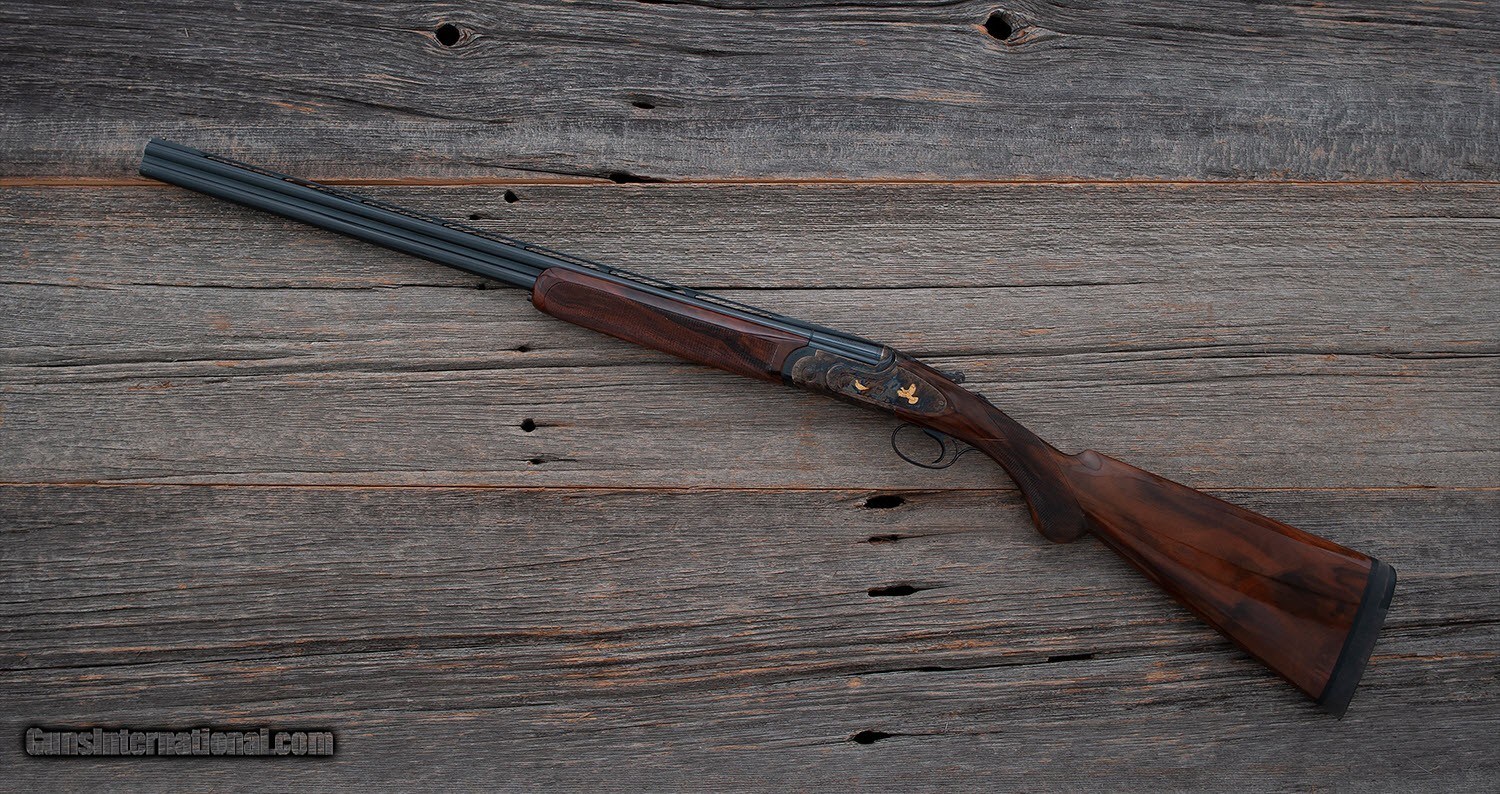 Description: B. Rizzini - Artemis - 28 ga - Item Number: RIZ29070 Shotgun type: O&U Action: Boxlock Ejectors: Yes Trigger: Single Grip: Round Knob Pistol Grip Forend: Checkered Lop: 15 1/4 " Pad thickness: 1 " Type of butt: Decelerator Pad Drop comb: 1 1/2 " Drop heel: 2 3/8 " Cast amount: 0 " Weight: 6 lbs, 12 oz Manufactured in: Italy Finish: Case Colored Overall condition: Very Good Stock condition: Very Good Metal condition: Very Good Stock: Original finish Metal: Original finish Type of Case: Maker's ABS case Extra barrels: 0 Barrel info: Gauge: 28 ga Chamber: 2 3/4 " Length: 27 1/2 " Chokes: IC/IM Rib type: Ventilated Comments : Very good condition with a few light dings in the wood. SG-110 E2 SOLD |