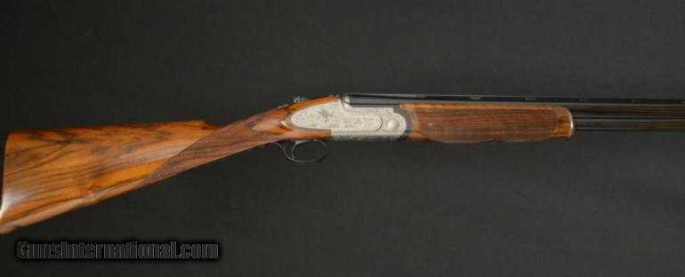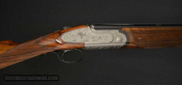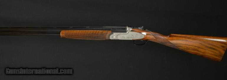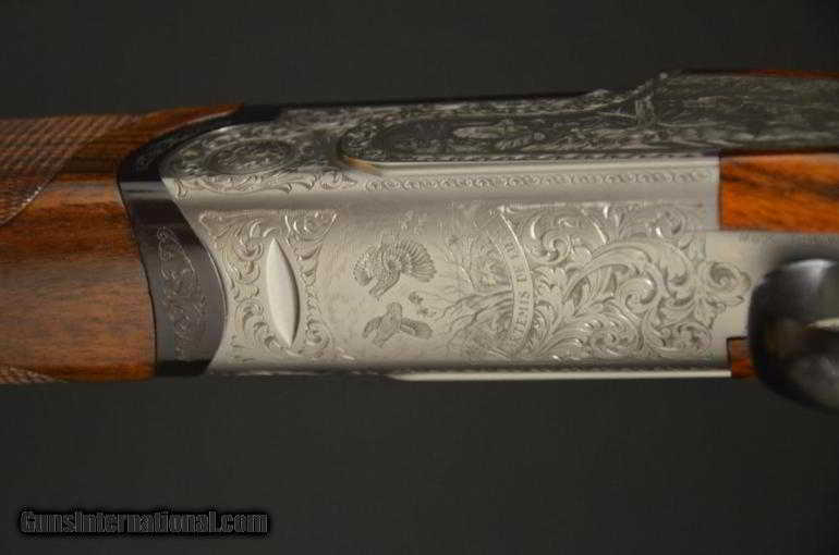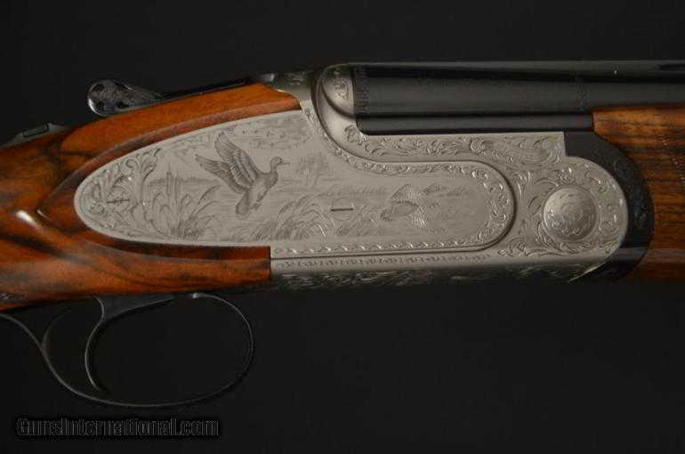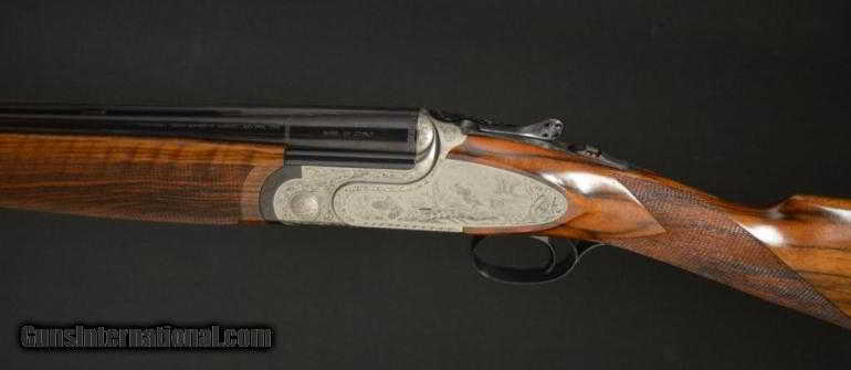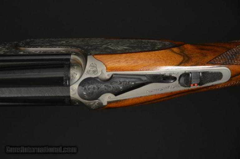 Description: B. Rizzini– Artemis Deluxe, 12ga., 28” barrel, hidden thinwall choke tubes, exhibition grade Turkish walnut stock with a straight grip and checkered butt, single selective trigger, automatic ejectors, ventilated rib, side plate gun with wonderful game scene vignettes on a coin finsihed receiver, jeweled flats, a truly stunning gun. S&H- $35.00, includes case and accessories, available for immediate delivery, 100% new unfired gun with full factory warranty. Inv# 12504 14 1/2” x 1 1/2” x 2 1/4” 7lbs. 2oz. $6,499.00 SALE PRICE $5,300 SOLD |