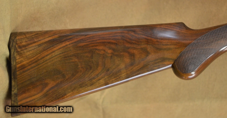 Description: New B. Rizzini Artemis Field 16GA with 28" factory choke tubed barrels. Scaled 16GA Action with case-colored engraved sideplates and gold motifs. Outstanding Prince of Wales pistol grip stock to removable butt, fully checkered round forearm. Includes factory case, chokes and tools. SOLD |