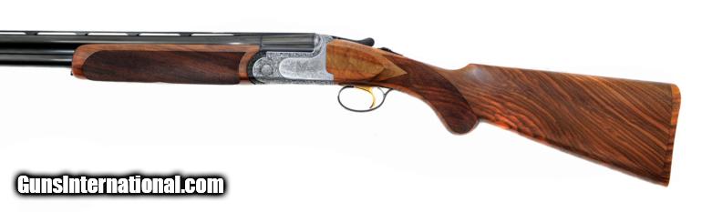 Description: B. Rizzini - Aurum - 12 ga - Item Number: 85790 Shotgun type: O&U Action: Boxlock Ejectors: Yes Trigger: Single Selective Grip: Prince of Wales grip Forend: Checkered Lop: 14 5/8 " Pad thickness: " Type of butt: Wood Drop comb: 1 3/8 " Drop heel: 2 3/16 " Cast amount: 1/16 " Cast: OFF Weight: 7 lbs, 2 oz Manufactured in: Italy Manufacture Year: Finish: Coin Overall condition: NEW Stock condition: NEW Metal condition: NEW Stock: Original finish Metal: Original finish Type of Case: Maker's ABS case Extra barrels: 0 Barrel info: Gauge: 12 ga Chamber: 3 " Length: 28 " Chokes: 5 Factory Chokes Proof: " Reproof: " Rib type: Ventilated Comments : Mechanically the Aurum is proven with Rizzini’s 50 years of manufacturing experience. The barrel has brazed ribs running along the top and the rib is furnace heated to increase bore strength and durability. The Aurum is a hunting companion you can rely on. SG 238 SOLD |