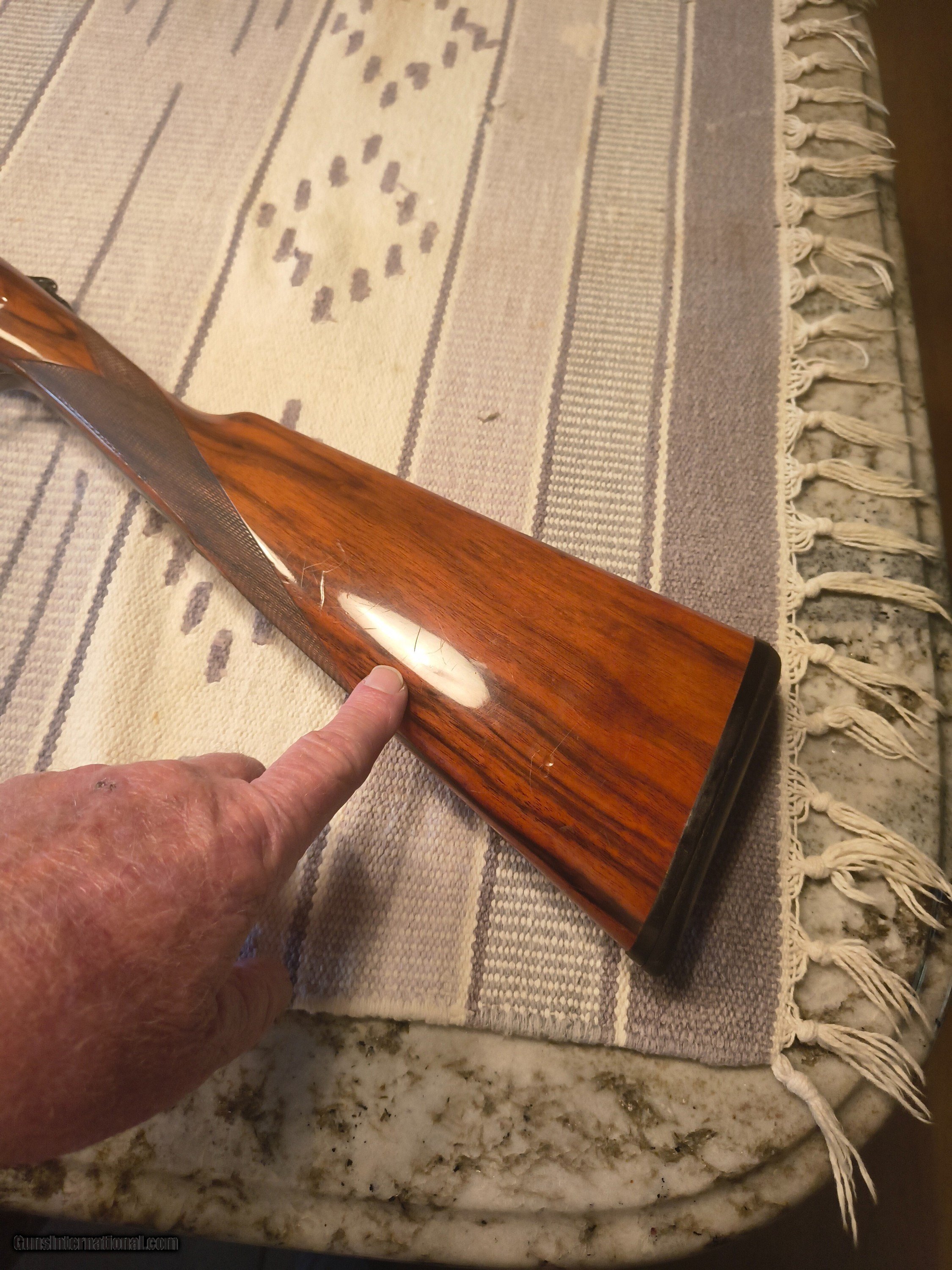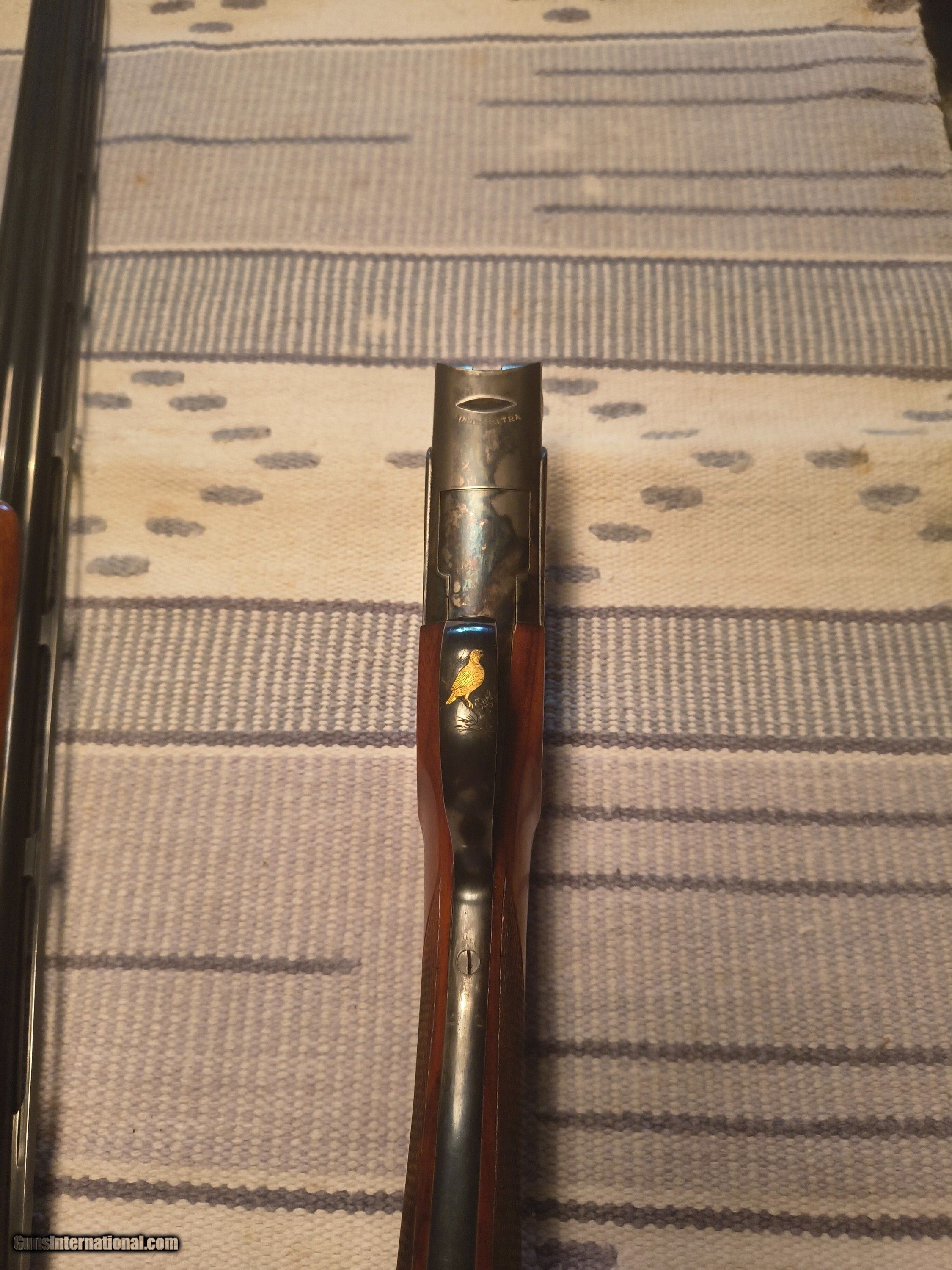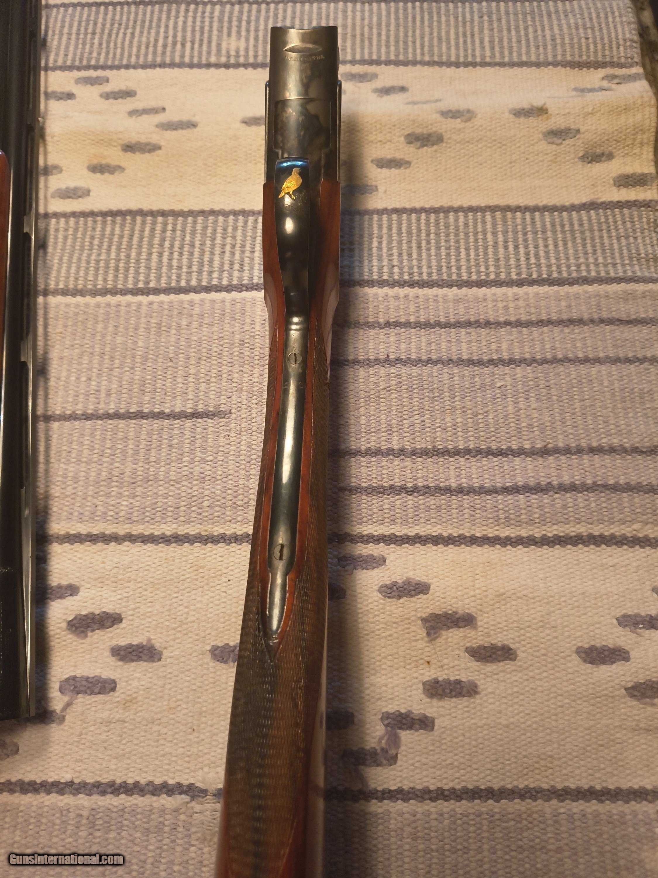 Description: New England Arms imported Aurum Extra by B. Rizzini. 28" fixed choke vent rib barrels. Nicely upgraded wood that has some handling marks from field use Shotgun Gauge: 28 Gauge Manufacturer: B.Rizzini Model: AURUM Extra Barrel Length: 28 Chambers: 2 3/4 Ejectors: Yes Selective Condition: Very Good Metal Condition: Very Good Wood Condition: Very Good as noted Bore Condition: Excellent Action: Boxlock Triggers: Single Selectable Stock: English Grip Stock Dimensions: 1 9/16" X 2 1/16" x 14 1/4 Stock Comb: 1 9/16 Stock Heel: 2 1/16 Stock Cast: 3/16 off heel 3/8" toe Butt Pad: Yes factory LOP: 14 1/4 Rib: Ventilated Finish: Original Weight: 6lbs even Sights: Twin Manufacture Date: 1997 Chokes: Fixed Choke Left: Bottom imp cyl Choke Right: Top modified Engraving: Factory Case: No Price: $1,825.00 Buy Now Contact Seller |