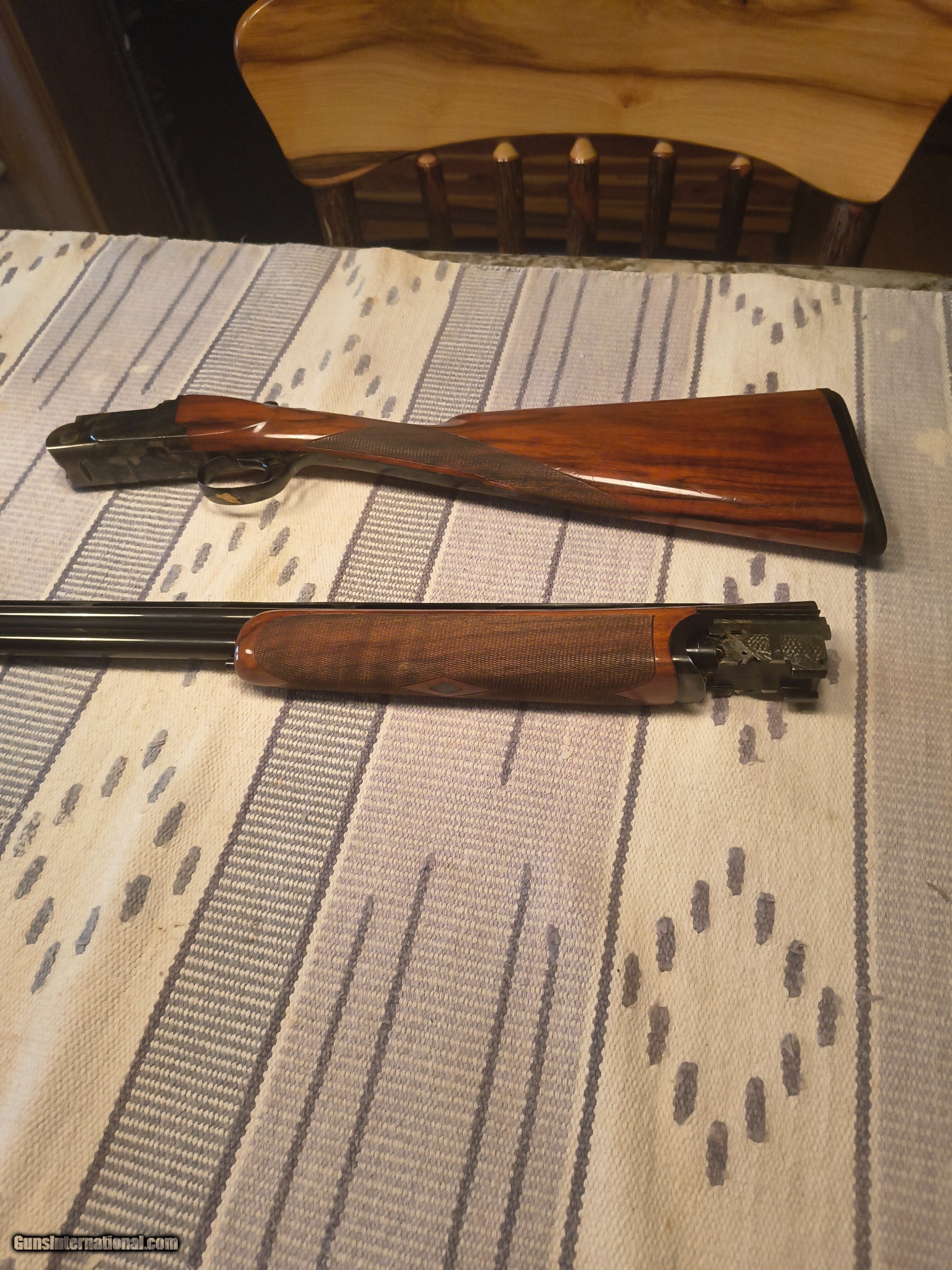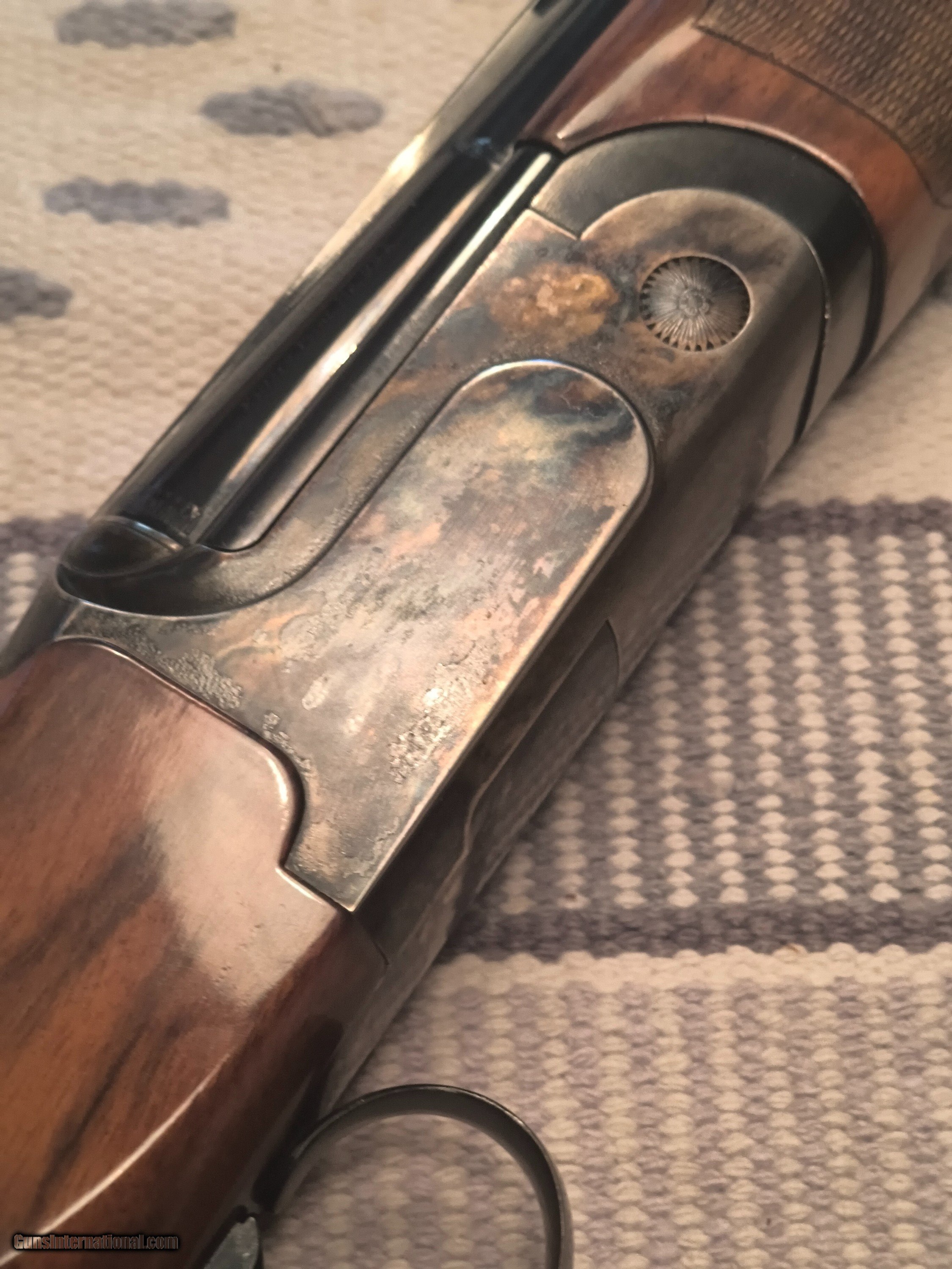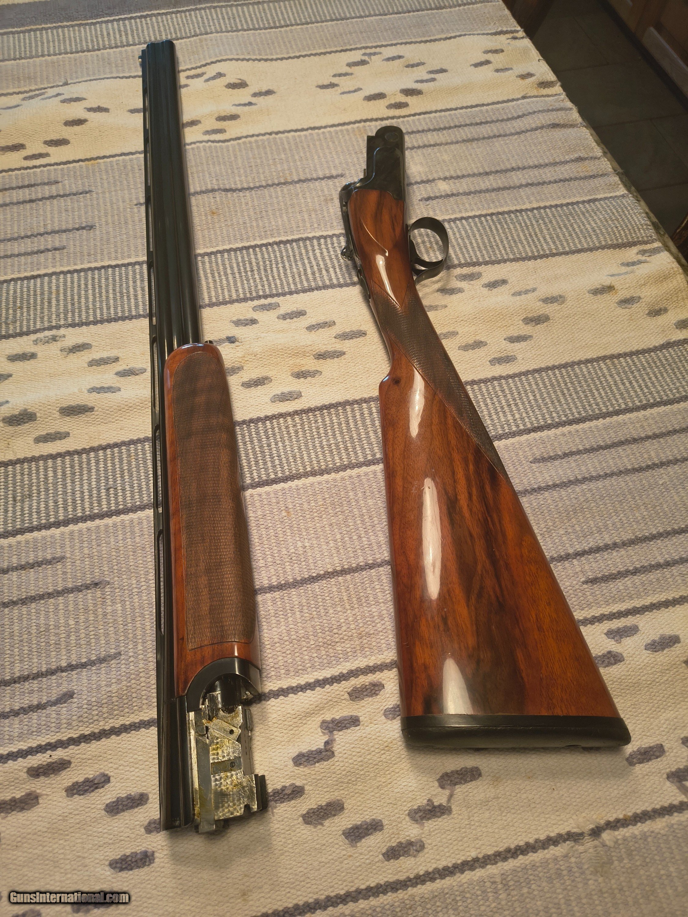 Description: New England Arms imported Aurum Extra by B. Rizzini. 28" fixed choke vent rib barrels. Nicely upgraded wood that has some handling marks from field use Shotgun Gauge: 28 Gauge Manufacturer: B.Rizzini Model: AURUM Extra Barrel Length: 28 Chambers: 2 3/4 Ejectors: Yes Selective Condition: Very Good Metal Condition: Very Good Wood Condition: Very Good as noted Bore Condition: Excellent Action: Boxlock Triggers: Single Selectable Stock: English Grip Stock Dimensions: 1 9/16" X 2 1/16" x 14 1/4 Stock Comb: 1 9/16 Stock Heel: 2 1/16 Stock Cast: 3/16 off heel 3/8" toe Butt Pad: Yes factory LOP: 14 1/4 Rib: Ventilated Finish: Original Weight: 6lbs even Sights: Twin Manufacture Date: 1997 Chokes: Fixed Choke Left: Bottom imp cyl Choke Right: Top modified Engraving: Factory Case: No Price: $1,825.00 Buy Now Contact Seller |