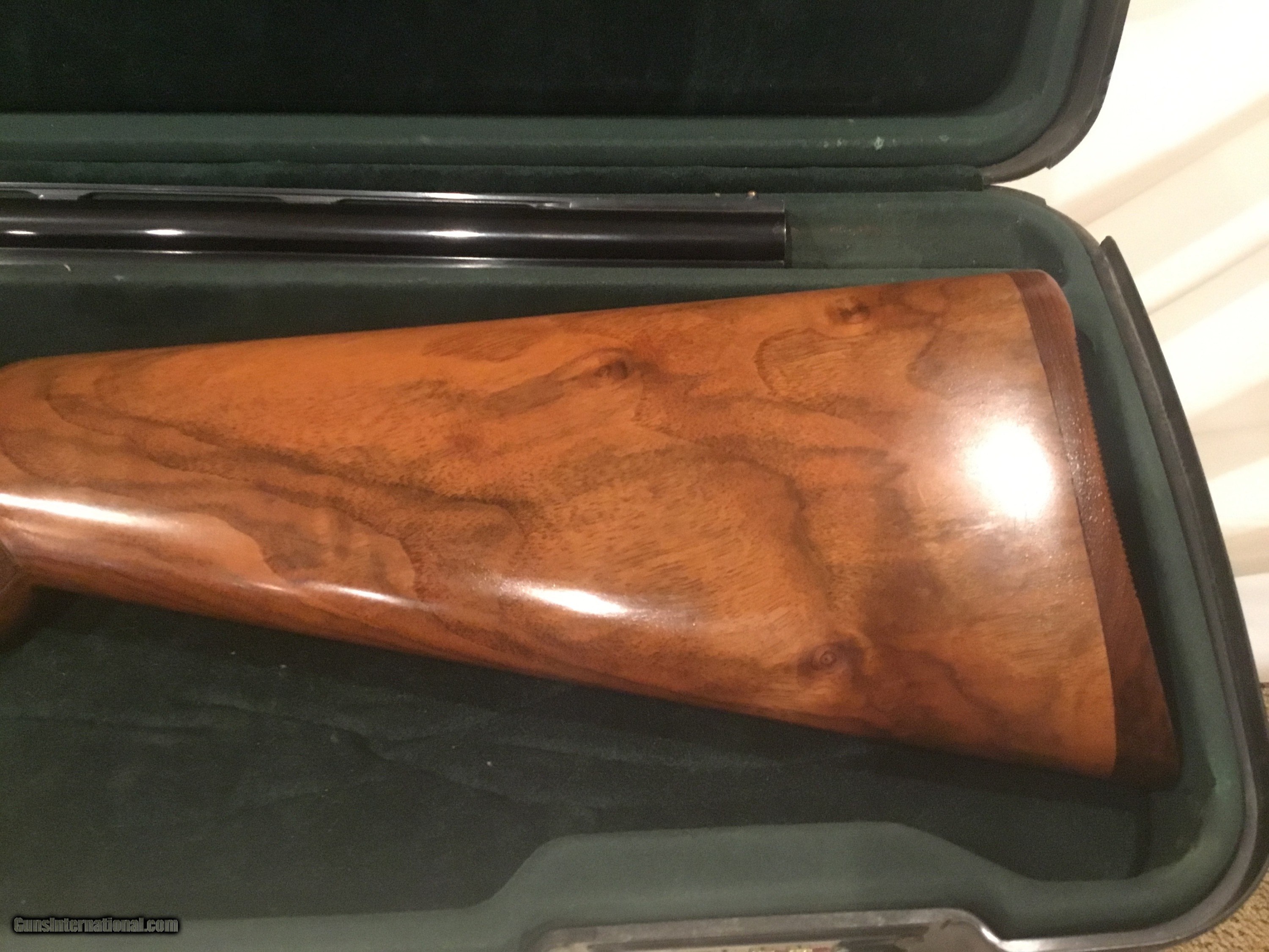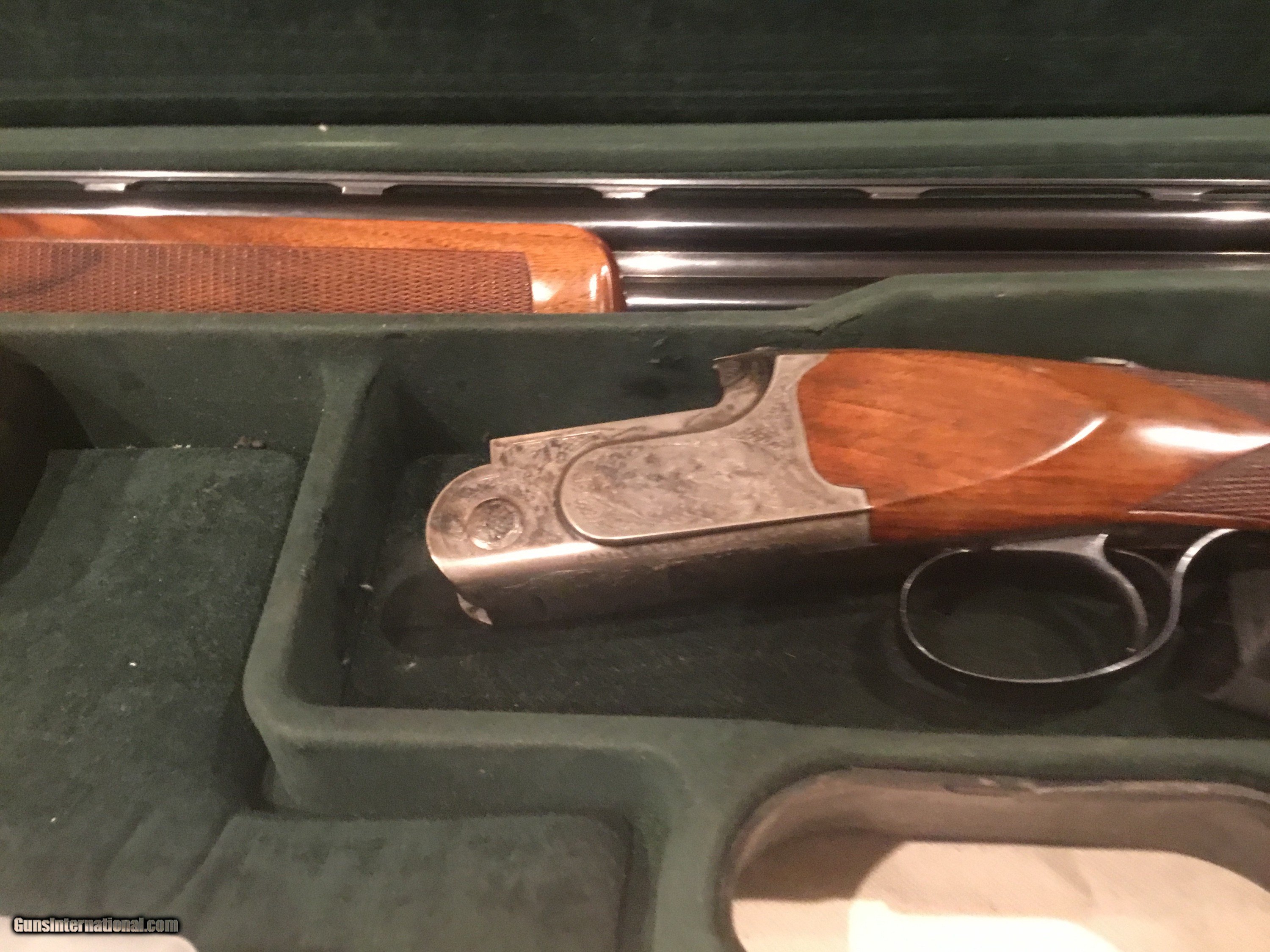 Description: Very nice condition, sweet swing light weight o/u 28" vent rib barrels, screw in chokes, 11 chokes, 6 Briley. 5 lbs. 10 oz. LOP 14 3/8" Drop comb, 1 1/2" Drop at heel, 2 1/8" Cast, neutral Engraving, quail on each side of action, misc. engraving through out, including the open lever. Nice wood 3"chambers SOLD Shotgun Gauge: 28 Gauge |