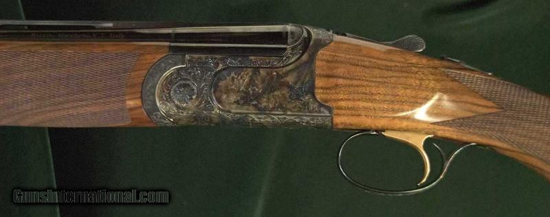 Description: B. RIZZINI, Aurum Small Action, O/U, 28 ga, 2 ¾” ch, 28” bbls w/ ventilated rib, Chokes: (5) Rizzini flush chokes: C, IC, M, IM & F, Ejectors, Single selective trigger, Round knob semi-pistol grip stock, Field style forearm, Stock dimensions: DC: 1 7/16” x DF: 1 7/8” x DH: 2 3/8” x Cast Heel: 1/8” Off x LOP: 14 5/8”, Wt: 5lbs 13.8oz, Special features: Scaled 28 gauge frame w/ total coverage game scene engraving, Case hardened finish, Oil finished stock, Makers hard case, Condition: New, Circa: 2014. Ser # 86163. 2015 MSRP: $4,090. (N5247) FIELDSPORT: $ 3,895. (To see & enjoy the entire inventory of fine shotguns, rifles & handguns for sale in the FIELDSPORT Gun Room, we invite you to visit us at FIELDSPORTLTD) SOLD Manufacturer: B. Rizzini Model: Aurum Small Action Serial Number: 86163 Chambers: 2 3/4 Ejectors: Ejectors Condition: New Barrels: 28 Action: Box Lock Triggers: Single Selective Gauge Info: 28ga Stock: Round Knob Pistol Stock Comb: 1 7/16 Stock Heel: 2 3/8 Stock Cast: 1/16" Off 4 3/4 Fore End: Field Style LOP: 14 5/8 Rib: Ventilated Weight: 5 lbs 13.8oz Manufacture Date: 2014 Chokes: 5 Flush Tubes Case: Makers Hard Case Item Location: Michigan |