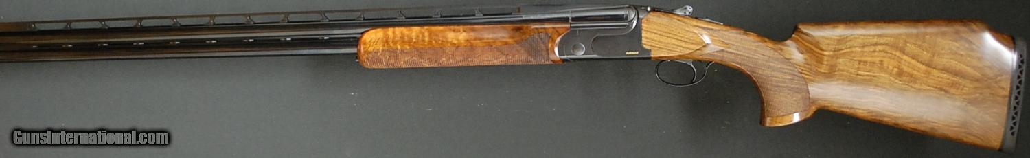 Description: B. RIZZINI- BR320 TRAP- 12ga. 32” barrels choked M/IM, Pistol Monte-Carlo Stock, right handed palm swell, target forearm, Rizzini recoil pad, ramped vent rib, single non-selective trigger, automatic ejectors, non-auto safety, traditional blued receiver with RIZZINI in gold, the gun remains in as new condition with minor handling marks, ideal Trap configuration, available for immediate delivery.