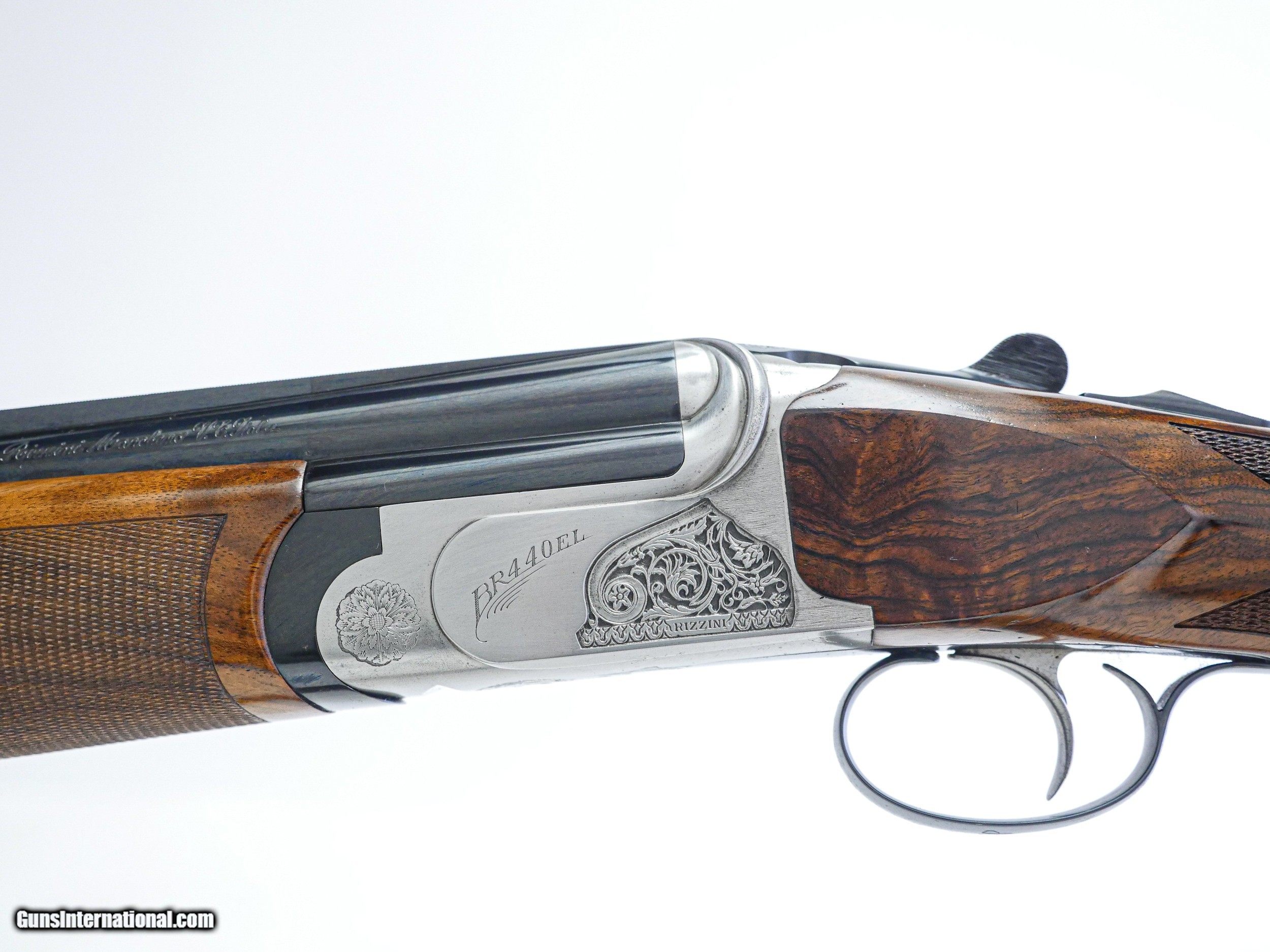 Description: B. Rizzini – BR440 EL, 12ga, 30” Barrels Choked F/F. Wonderfully figured European walnut pistol grip stock, thin recoil pad, hunting forend, single selective trigger, automatic ejectors, ventilated rib, non-auto safety, beautiful deep scroll on both sides of the coin finished receiver, highest quality Italian manufacture, an unsurpassed value, includes case and accessories, 98% condition gun.
