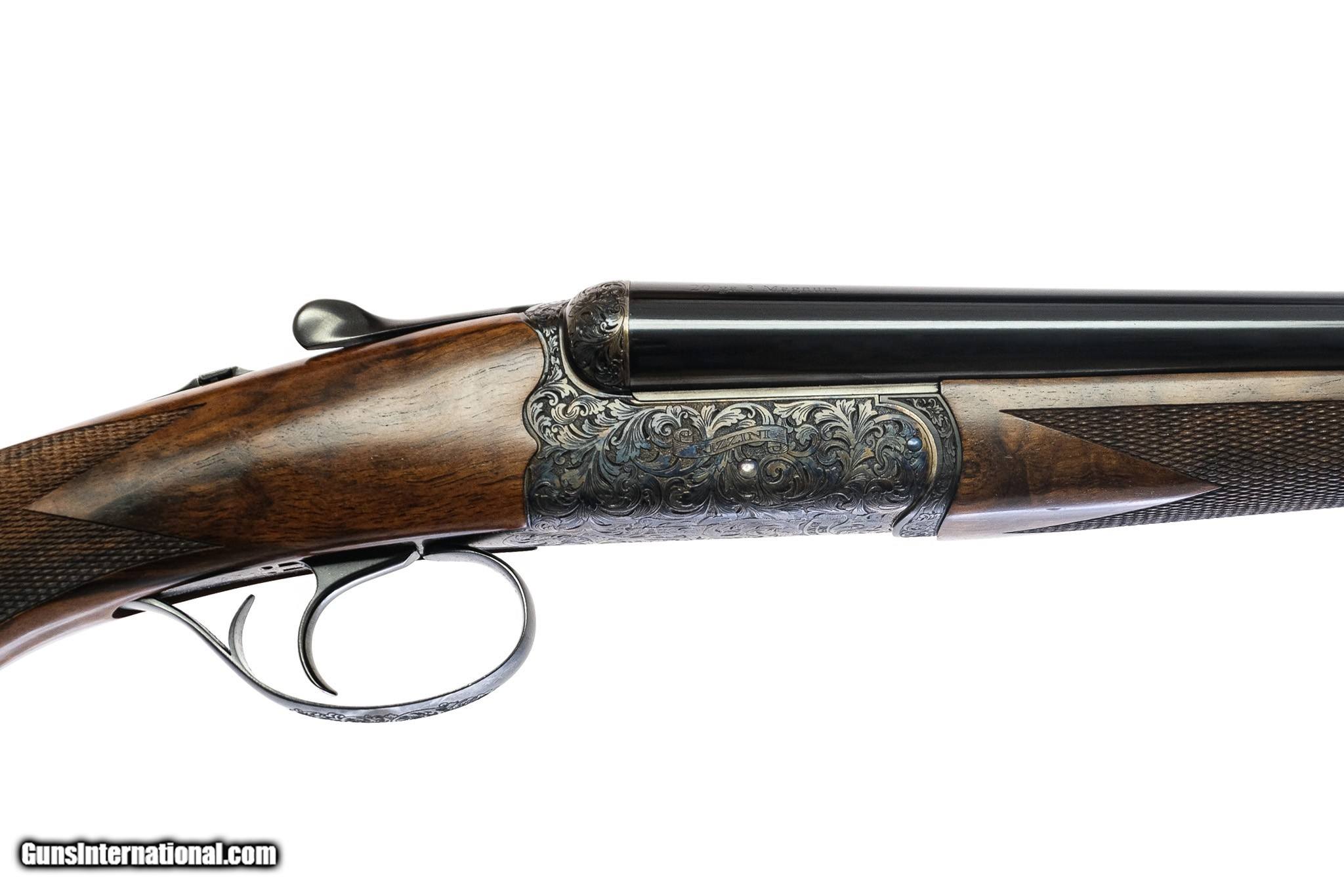 Description: B. RIzzini - BR550, SxS, 20ga. 29" Barrels with Factory Screw-in Choke Tubes. Nicely figured pistol grips stock, factory wooden butt plate, solid rib, single selective trigger, automatic ejectors, splinter forend, round action with full coverage scroll over case coloring, super clean gun which appears new, includes case, extra choke tubes, and manuals, available for immediate delivery. S & H - $50.00. Inv: 81743 6 lbs. 4 oz. 14 5/8” x 1 3/8” x 2” $4,500.00 SOLD |