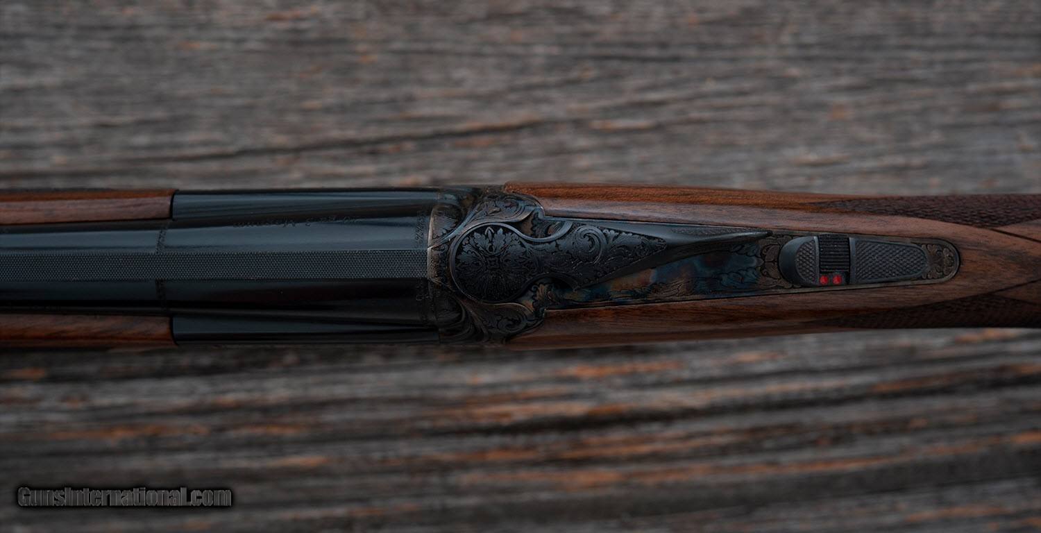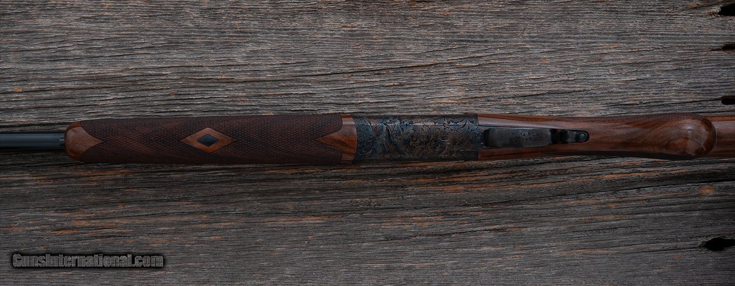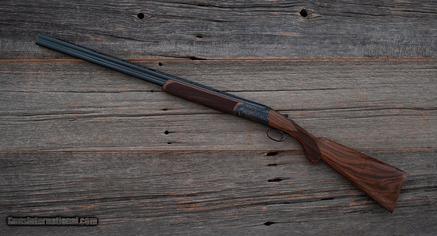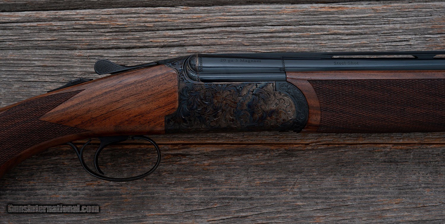 Description: B. Rizzini - Round Body - 20 ga - Item Number: 105048 Shotgun type: O&U Action: Boxlock Ejectors: Yes Trigger: Single Grip: Round Knob Pistol Grip Forend: Checkered Lop: 14 5/8 " Pad thickness: " Type of butt: Wood Drop comb: 1 3/8 " Drop heel: 2 3/8 " Cast amount: 3/16 " Cast: Off Weight: 6 lbs, 8 oz Manufactured in: Italy Finish: Case Colored Overall condition: NEW Stock condition: NEW Metal condition: NEW Stock: Original finish Metal: Original finish Type of Case: Maker's ABS case Extra barrels: 0 Barrel info: Gauge: 20 ga Chamber: 3 " Length: 29 " Chokes: 5 Factory Chokes Rib type: Ventilated Comments : Each Round Body Game Gun features a rounded action fully engraved in a delicate foliate scroll, vibrant case colors or rich French gray finish, select Turkish walnut stock which is finely checkered and hand finished in oil, long tang trigger guard, chrome moly lined ventilated rib barrels with screw chokes. SG-108 F2 SOLD |