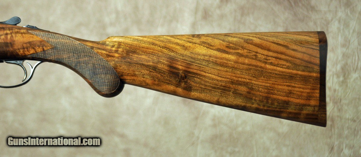 Description: New B. Rizzini RB EM 410 Bore . Features coin finished round action receiver, 29″ factory C/T barrels with five flush chokes . Ventilated rib, highly figured stock with Prince of Wales grip. Factory hard case included. SOLD |