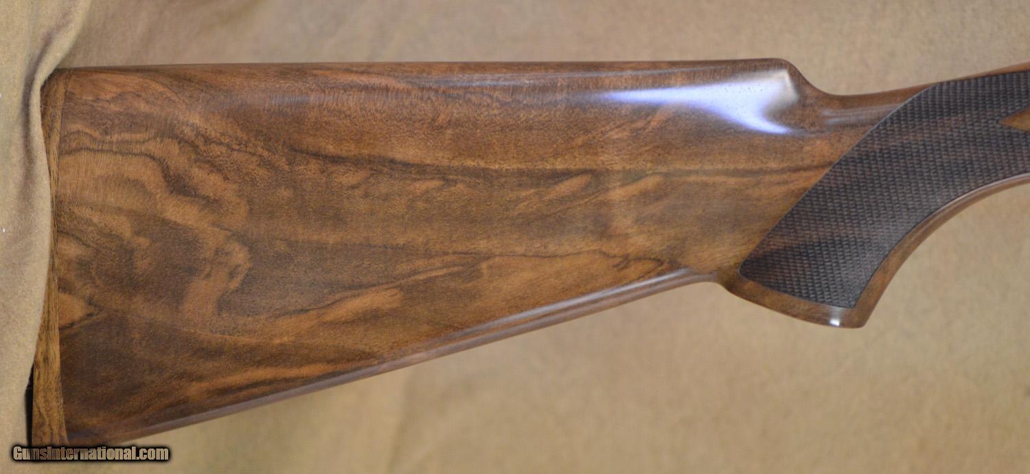 Description: New B. Rizzini Round Body 28GA with 30" factory choke tubed barrels. New Case-Colored Round Action, full coverage scroll engraving. Factory pistol grip stock to removable checkered butt and full beavertail forearm. Includes factory case, chokes and tools. SOLD |