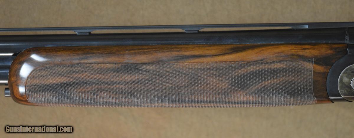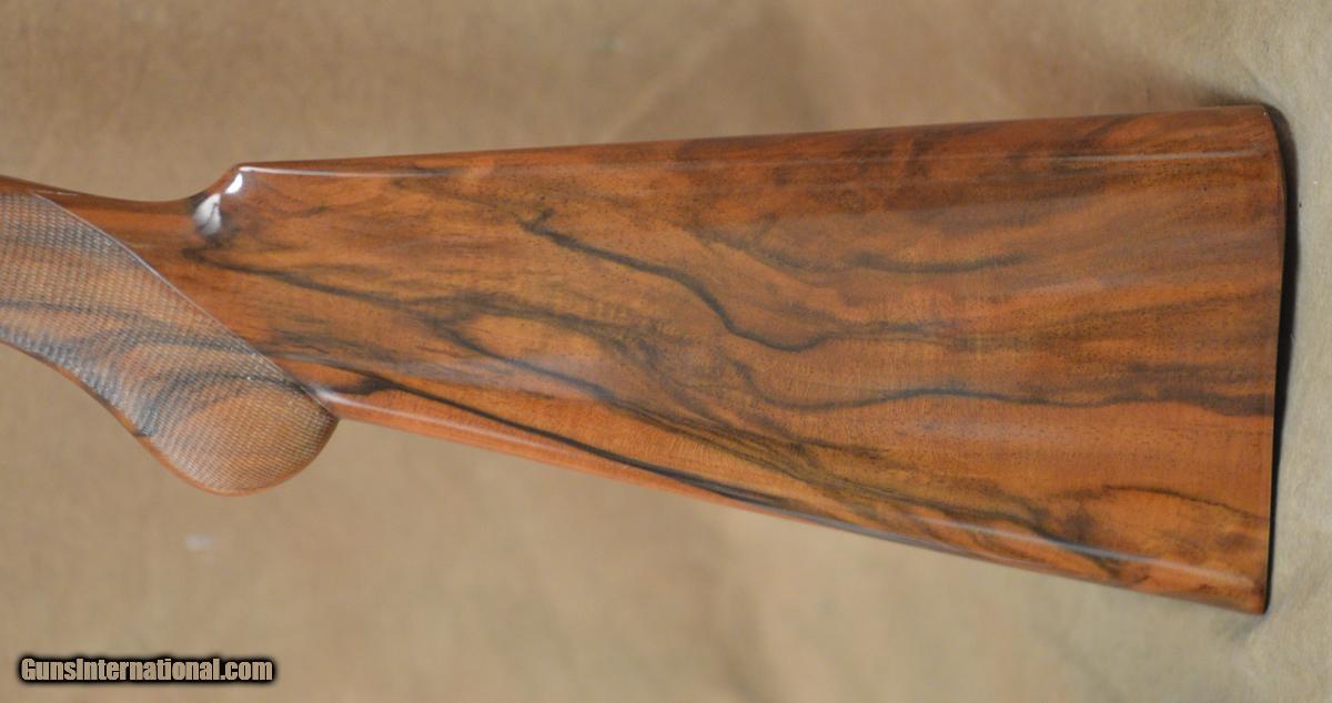 Description: B. Rizzini Upland EL Field 20GA with 28" Briley Thinwall choked barrels. Factory Case-Color hardened receiver with selective single trigger. Factory Prince of Wales pistol grip stock, fully checkered round forearm. Very minor handling marks in stock and forearm, minor case-color wear on receiver. Includes factory case, chokes. SOLD |