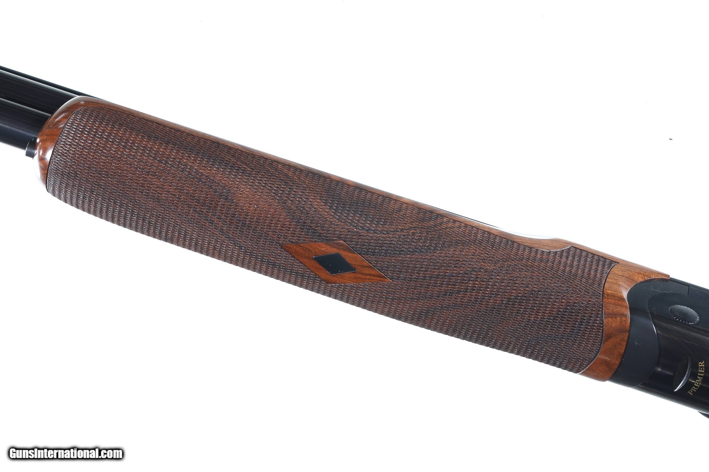 Description: Rizzini Premier grade 20 Ga, over under with 32" bbl with vent rib. Single selective trigger with ejectors. Blue finished with gold accents. Nicely figured varnished checkered pistol grip walnut stocks with adjustable comb. Housed in factory case with 3 addition interchangeable chokes and takedown wrenches as well as instruction manuals. Extremely fine with little evident use. Metal is super. Stocks are very good with some bruising and a small knick on right side. Action operates properly and locks solidly. Case is very good. Mfg in 2015. • Free Shipping, No Credit Card Fees. • Lay-a-way available for this firearm. • 1/3 Down, a 1/3 in 30 Days 1/3 in 60 Days. SOLD Shotgun Gauge: 20 Gauge Manufacturer: Battista Rizzini Model: Premier Serial Number: 92007 Barrel Length: 32 Bore: 20 Ga. Chambers: 3 Ejectors: Yes Condition: Excellent Metal Condition: Excellent Wood Condition: Excelent Bore Condition: Bright Barrels: 32 Barrel Type: Over Under Action: Box Lock Triggers: Single Selective Stock: Walnut Stock Comb: Adjustable Stock Heel: Adjustable LOP: 14 1/2 Finish: Blue Sights: Bead Manufacture Date: 2015 Chokes: 5 Interchangeable Tubes Extras: Luggage Case / Tools |