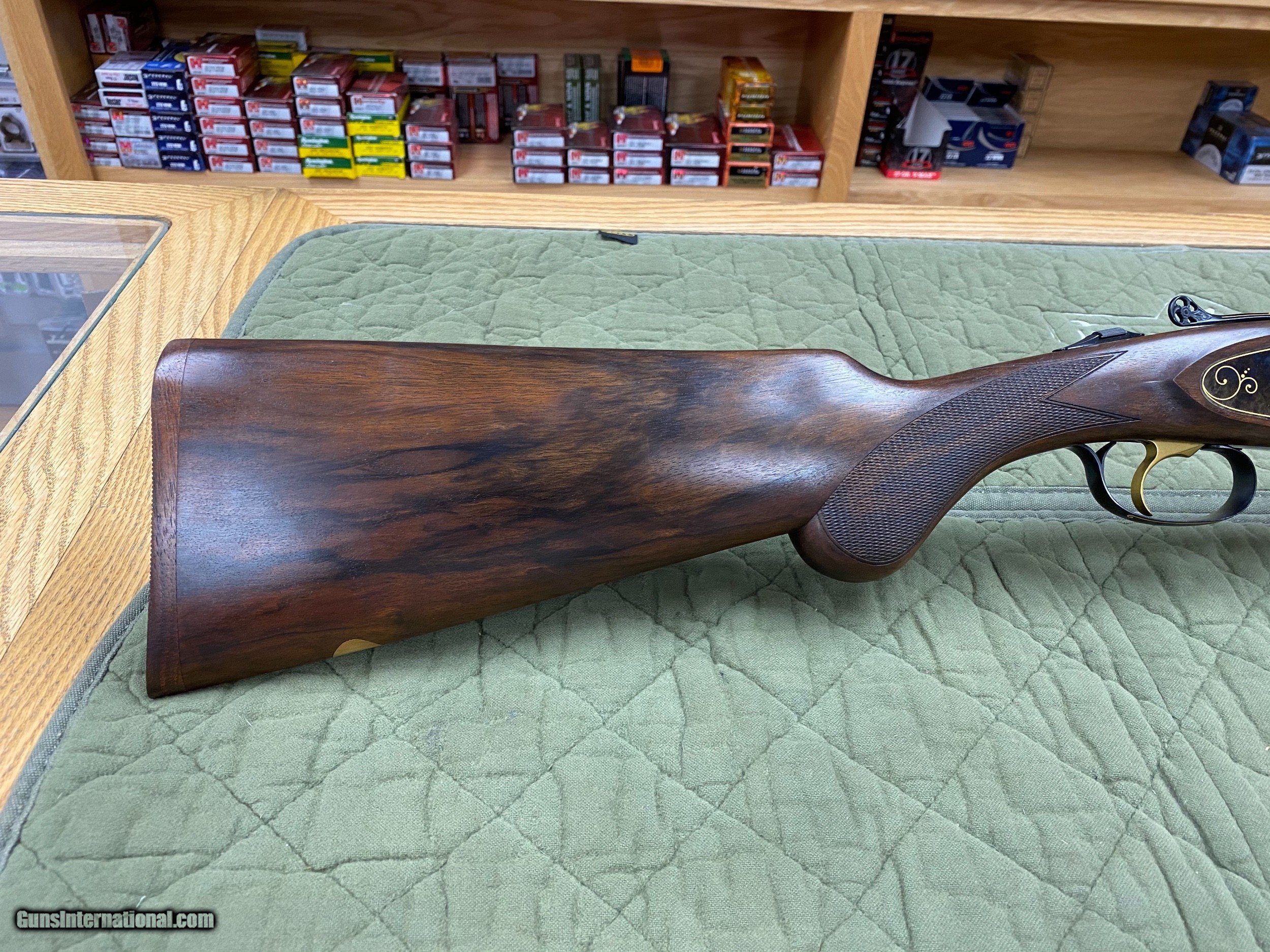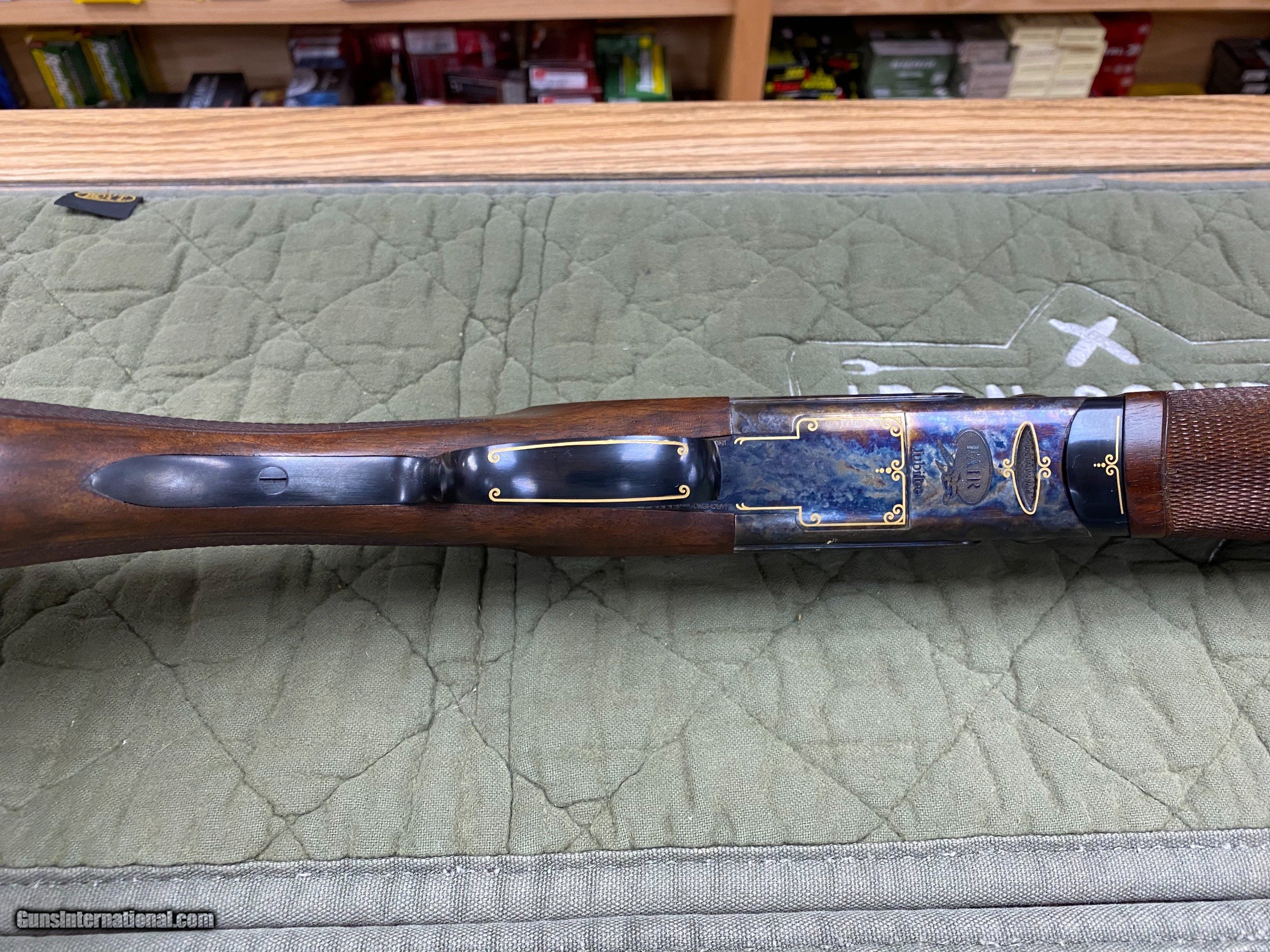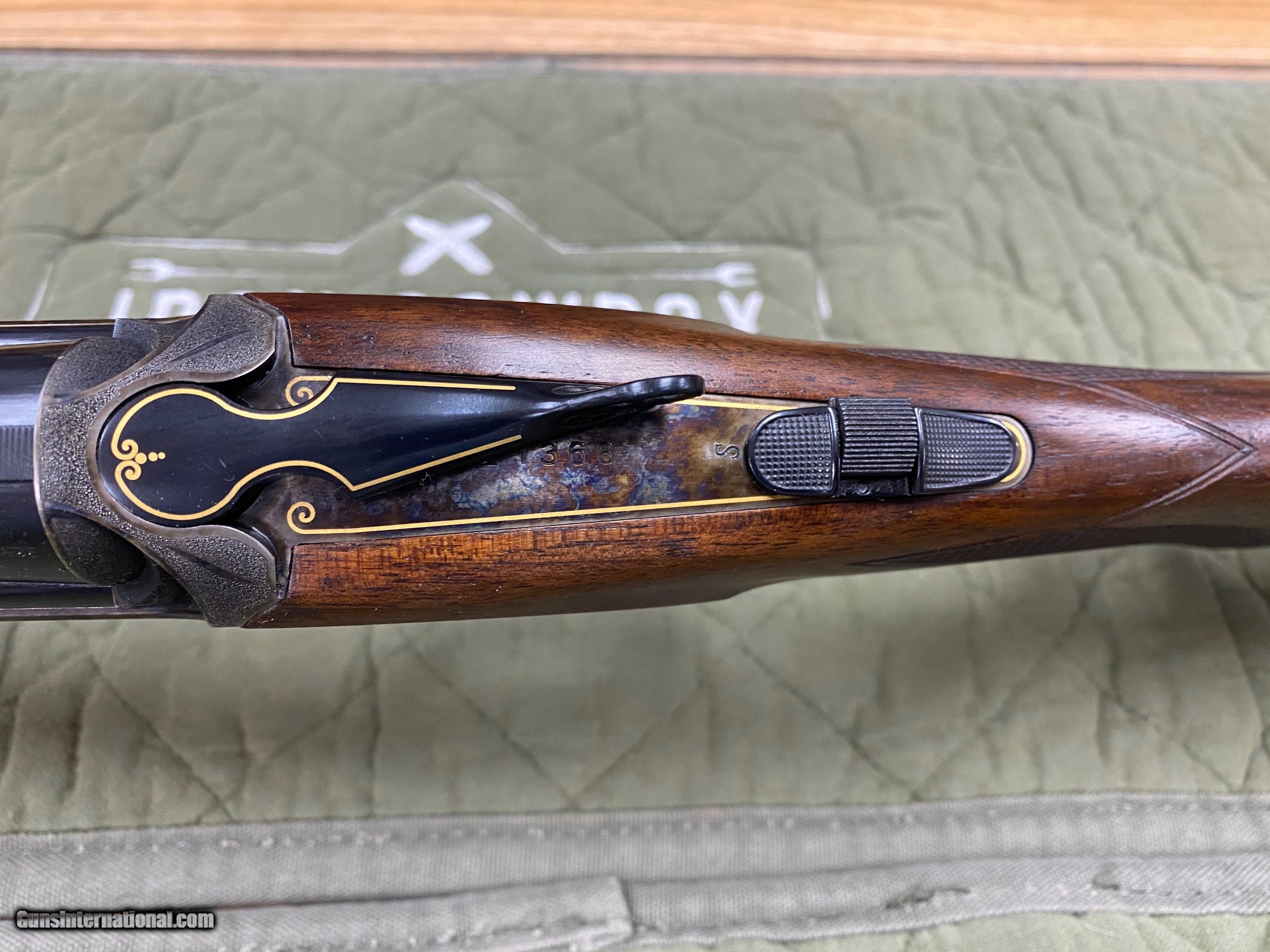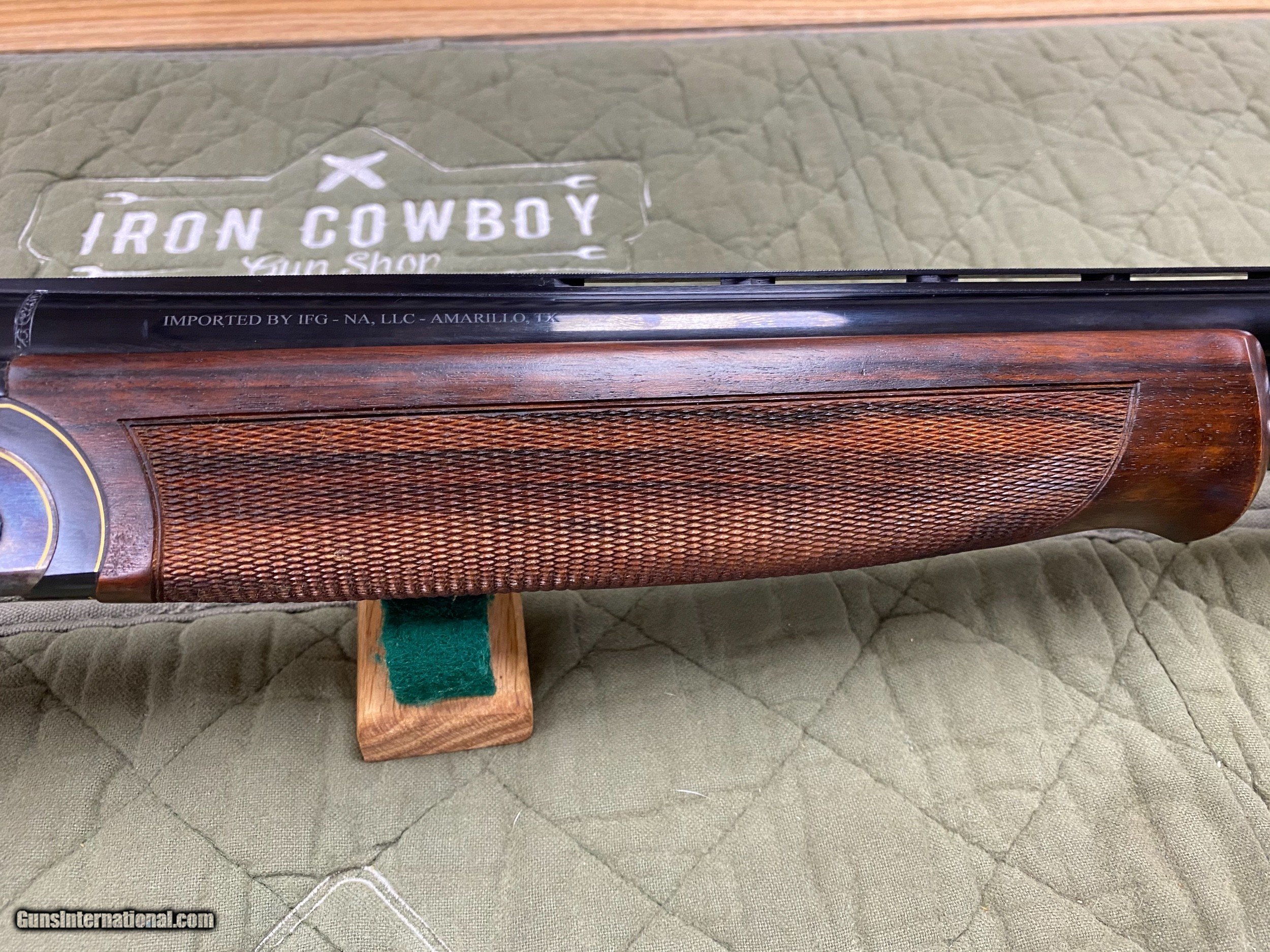 Description: Up for sale is a new FAIR Jubilee 702. This fine game gun is chambered in 16 ga and sports 30-inch barrels. The trigger is single select. This built on its own frame size and comes in 6 pounds 9 ounces. The receiver is case colored with gold wire borders. The stock is figured Walnut with oil finish. The is five screw in chokes included Cyl, IC, Mod, Imp Mod and Full. The Lop is 14.5 inches. The DAC is 1.5inches. The DAH is 2 5/16 inches. This model comes from the factory with a wood upgrade and a better hard case. Slight cast off (right hand). A true upland double. I stock a vast array of Caesar Guerini, Fabarm, Syren, Blaser, Merkel, Nighthawk Custom, Cabot Gun, and many more vintage guns too. It is impossible for me to list everything I will special order you anything your heart desires. Thanks for looking. WHY IRON COWBOY? Buying a fine gun is not shopping cart transaction. Buying from Iron Cowboy means buying a gun from me. It means buying from someone as passionate as you about fine guns. I want you to get the right gun both for you and your application, and my advice reflects what I feel is in your best interests. No clerks, no ‘other’ salesman – just me. Odds are we will have a discussion on my shooting experience with the gun you are after, and every transaction gets my personal best. Thank you, as always, for looking. GROWTH THROUGH SERVICE Everyone is a customer at some point. I’ve taken the good from my experiences and apply it to my transactions. I’ve taken the bad and sworn to never pass that same experience on to my customers. I strive to act the way I would respect someone else for acting. In this way, Iron Cowboy differentiates itself with growth through service and repeat business. It’s my commitment to you, my customer. Iron Cowboy Gun Shop, LLC Edward Kondraski III (570) 733-2042 SOLD |