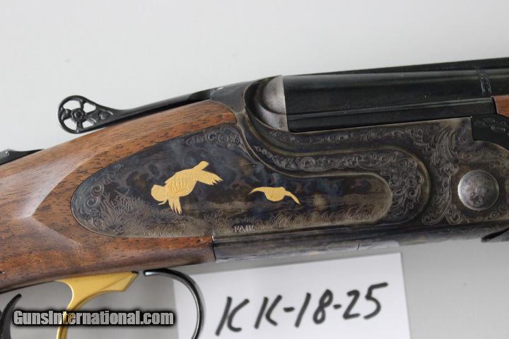 Description: Fair. ( Rizzini ) Jubilee Prestige Tartargua Gold. 28 ga. 28"choke tubes. A very nice little 28 ga. o/u shotgun. On this shotgun you have a sideplated receiver with a case color finish. The receiver has nice looking gold game scene inlays. The inlays are then highlighted by traditional fine scroll accents. This 28 ga. gun has a sculptured top lever and a stock oval. Layaways ok. New. $2995. Quality Arms, Houston, TX. Call Direct: 281-870-8377 ( 1 1/2 x 2 1/4 x 14 5/8 * 6 lb) KK-18-25 FAIR ("Fabbrica Armi Isidoro Rizzini") has been manufacturing fine shotguns since 1971. Currently, they are the second largest maker of shotguns in Italy today. Since their inception, they have used traditional old-world craftsmanship, combined with the latest developments in technology, to offer the shooter an extensive array of exceptional shotguns. Just two of the many outstanding features are that they offer the proper frame size with proportion to the gauge and are very receptive to making shotguns based on the individual's specifications. We are pleased to offer these fine Italian shotguns to the American shooter. SOLD |