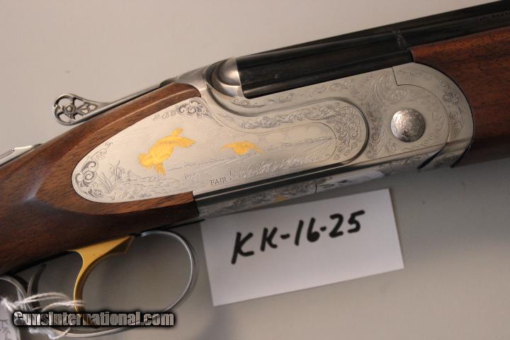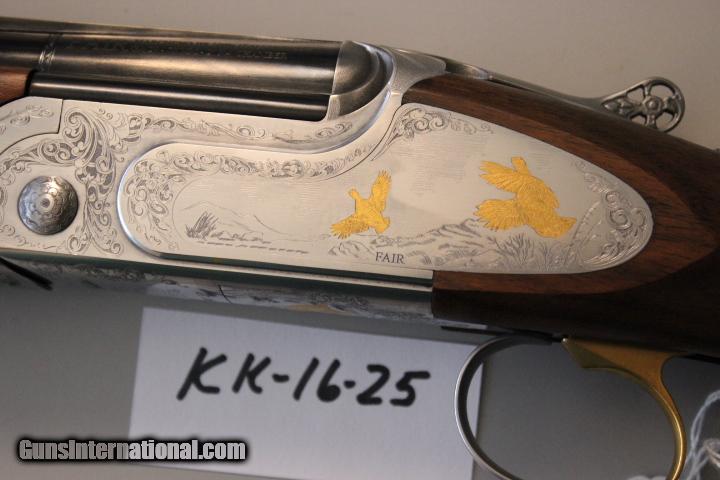 Description: Fair-Rizzini SLX 800. 28 ga Sporting. 30" choke tubes. Here is a really nice 28 ga. over/under with long barrels! the gun has a coin finish with gold game scene inlays. These inlays are surrounded with elegant scroll work. This gun will not only make a great small bore sporting gun, but a great South American dove gun too. It's also great for the person who prefers a longer barrel gun. The wood on this gun is exceptionally nice in both color and figure. If you are looking for a nice 28 ga, you could not go wrong with this on. Layaways ok. Cased. New. $2699. Quality Arms, Houston, TX. Call Direct: 281-870-8377 ( 1 1/2 x 2 1/4 x 14 3/4 * 6 lb. 4 oz) KK-16-25 FAIR ("Fabbrica Armi Isidoro Rizzini") has been manufacturing fine shotguns since 1971. Currently, they are the second largest maker of shotguns in Italy today. Since their inception, they have used traditional old-world craftsmanship, combined with the latest developments in technology, to offer the shooter an extensive array of exceptional shotguns. Just two of the many outstanding features are that they offer the proper frame size with proportion to the gauge and are very receptive to making shotguns based on the individual's specifications. We are pleased to offer these fine Italian shotguns to the American shooter. SOLD |