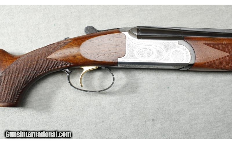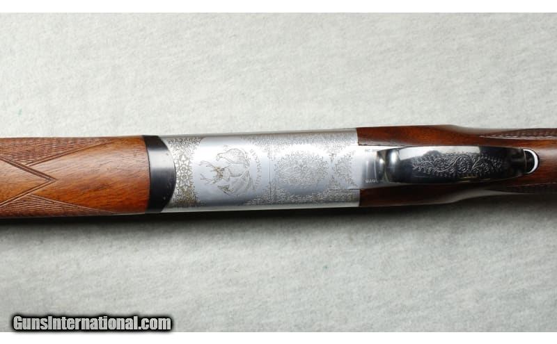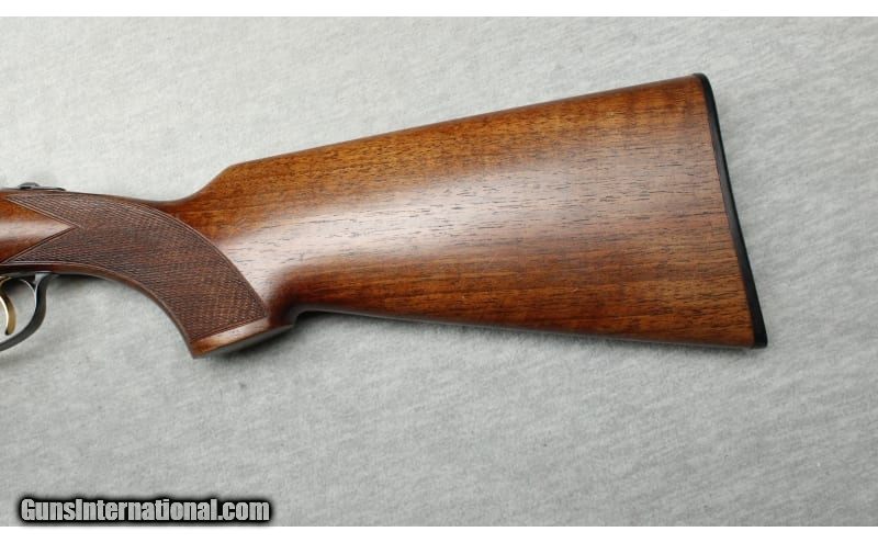Description: John McNab/Rizzini Lowlander in 28 Gauge. This single trigger sporting gun features hold-open top lever, automatic safety, integral barrel selector switch, gold-plated trigger, foliate scroll engraved action with scenes on the underside of a salmon, stag and goose. It has a LOP of 13 1/4-inch pistol grip stock including buttplate, and nitro barrels with a ventilated matte top rib, 2 3/4-inch chambers. It is choked Modified/Modified. No box. 28 Gauge SOLD Chambers: 2 3/4 Inches Metal Condition: Excellent Wood Condition: Excellent Bore Condition: Bright Barrels: 28 Inches Triggers: Factory Stock Dimensions: LOP 13 1/4 Inches Fore End: Checkered walnut Butt Pad: Plastic Weight: 6 lbs 4 oz Sights: Brass bead on ventilated rib Chokes: Modified/Modified Item Location: La Vista, NE |