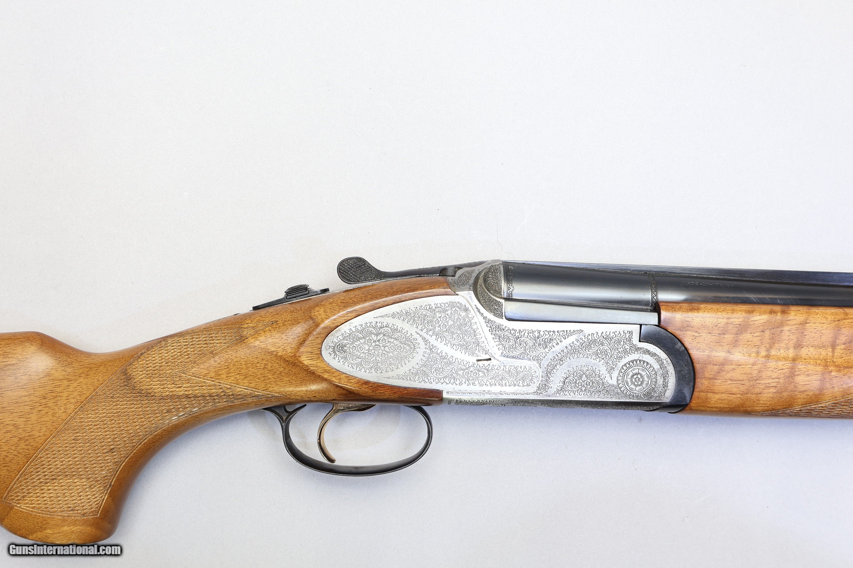 Description: 2 3/4" Chambers | Fixed Full & Extra Cyl | Ventilated Parallel Rib This Italian-made Over/Under is a versatile 12 Ga shotgun built with solid craftsmanship and a smooth-shooting design. It has a clean single trigger setup, a manual safety, and a comfortable wooden pistol grip stock suited for general use. Overall, this shotgun is in very tidy shape. It has sharp chequering, a smooth and clean break action, and the barrels are in great condition with only very minor surface marks on the underside. It also features small scroll engraving, a red fibre optic bead sight, and has been barely used. Made in 1986 in Italy, it includes right-hand cast with a well-proportioned stock fit. It needs an FFL license.