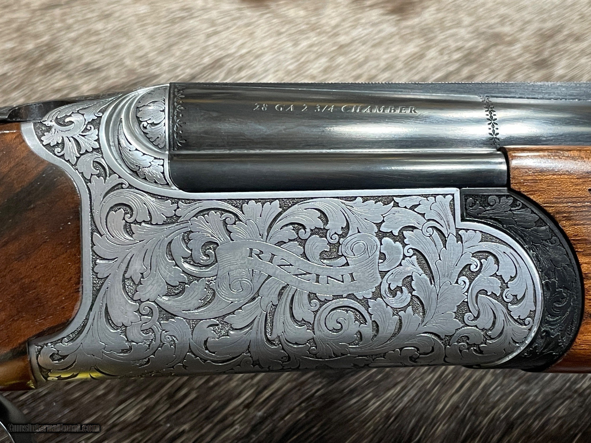 Description: NEW B. RIZZINI ROUND BODY EM DELUXE 28 GAUGE WITH 29" BARRELS, FULL SCROLL ENGRAVING AND GORGEOUS TURKISH WALNUT STOCK WITH GREAT FIGURE - LAYAWAY AVAILABLE. THE SHOTGUN YOU SEE IN THE PICTURES IS THE SHOTGUN YOU WILL RECEIVE! FEATURES OF THIS PREMIUM ITALIAN OVER/UNDER FULLY ENGRAVED SHOTGUN INCLUDE: