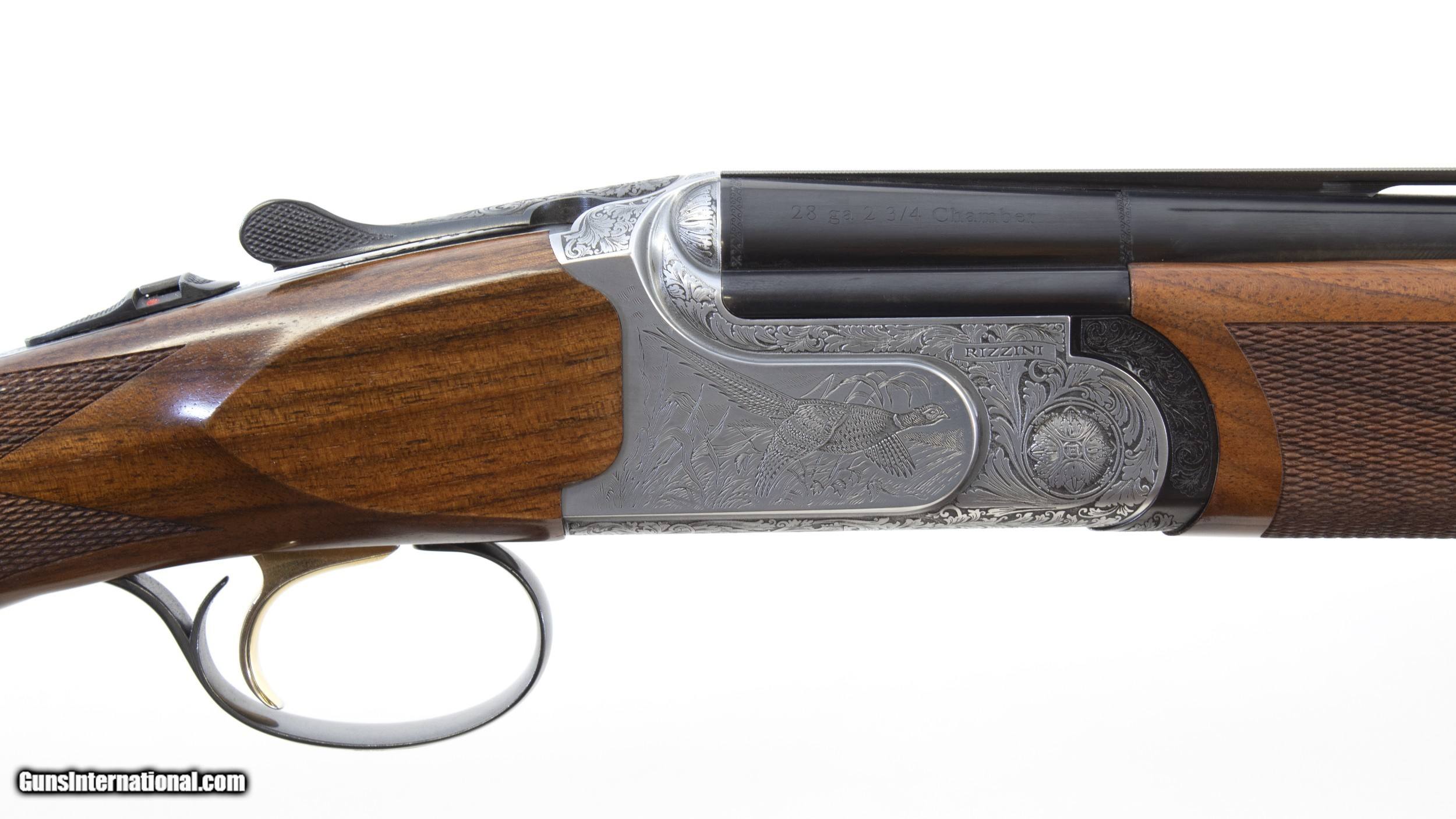Description: Pre-Owned Rizzini Aurum Small Field Shotgun | 28GA 29" | SN#: 96931 Gauge: 28GA Barrel Length: 29" Barrel Weight: 1090g Bore Diameter: --- Chamber: 2 ¾" Chokes: 5 Flush Screw Chokes Rib: 6mm Vented Stock Dimensions Drop at Nose: 1 ½" Drop at Heel: 2 ¼" Cast: RH Length of Pull: 14 ½" to Wood Butt Pad ?Forend Style: Field Comb: Fixed Weight: 5lb 14.1oz Shotgun Condition Barrel(s): Excellent Condition: No signs of rust or pitting, rib and bead both in great shape. Receiver: Excellent Condition: Engraving is nice and vivid. No discoloration or scratches. Moving parts in great order. Firing pins show no signs of cratering. Forend: Excellent Condition: No marring of wood, checkering is nice and tack sharp. Stock: Excellent Condition: No marring of wood, checkering is nice and tack sharp. Very nice and light pre-owned Aurum from Rizzini. Gun is fit with light brown, pommel grip stock and forend, manual safety and fixed trigger. Comes in the original case with selection of flush screw chokes. Did you know that Cole Gunsmithing is one of the only shotgun dealers in the US that is also a factory authorized service center for the brands we sell? We are authorized to perform service on your Beretta, Perazzi, Zoli, Blaser and Fausti shotguns, When you service, customize or buy your shotgun from us you get the Cole Experience- superior service, knowledge and expertise backed by 40 years specializing in the repair and customization of fine Shotguns. Build a relationship with your gun dealer and gunsmith all in one place. We're your one stop shop, and we've been waiting for you! Federal firearms laws do not allow us to ship firearms directly to you. Please contact us for ordering and shipping information. Located in our Naples, Florida Showroom SOLD Shotgun Gauge: 28 Gauge |