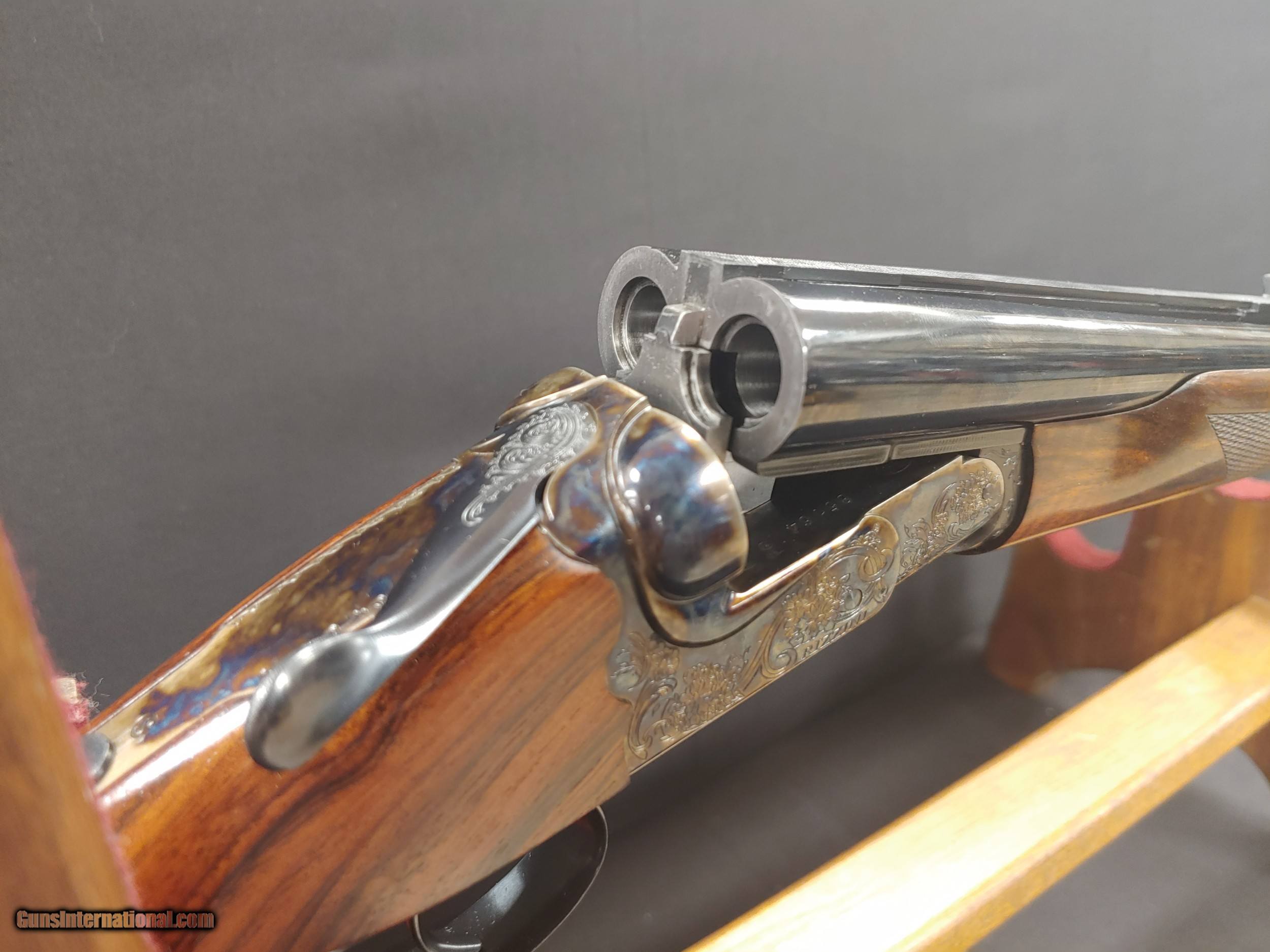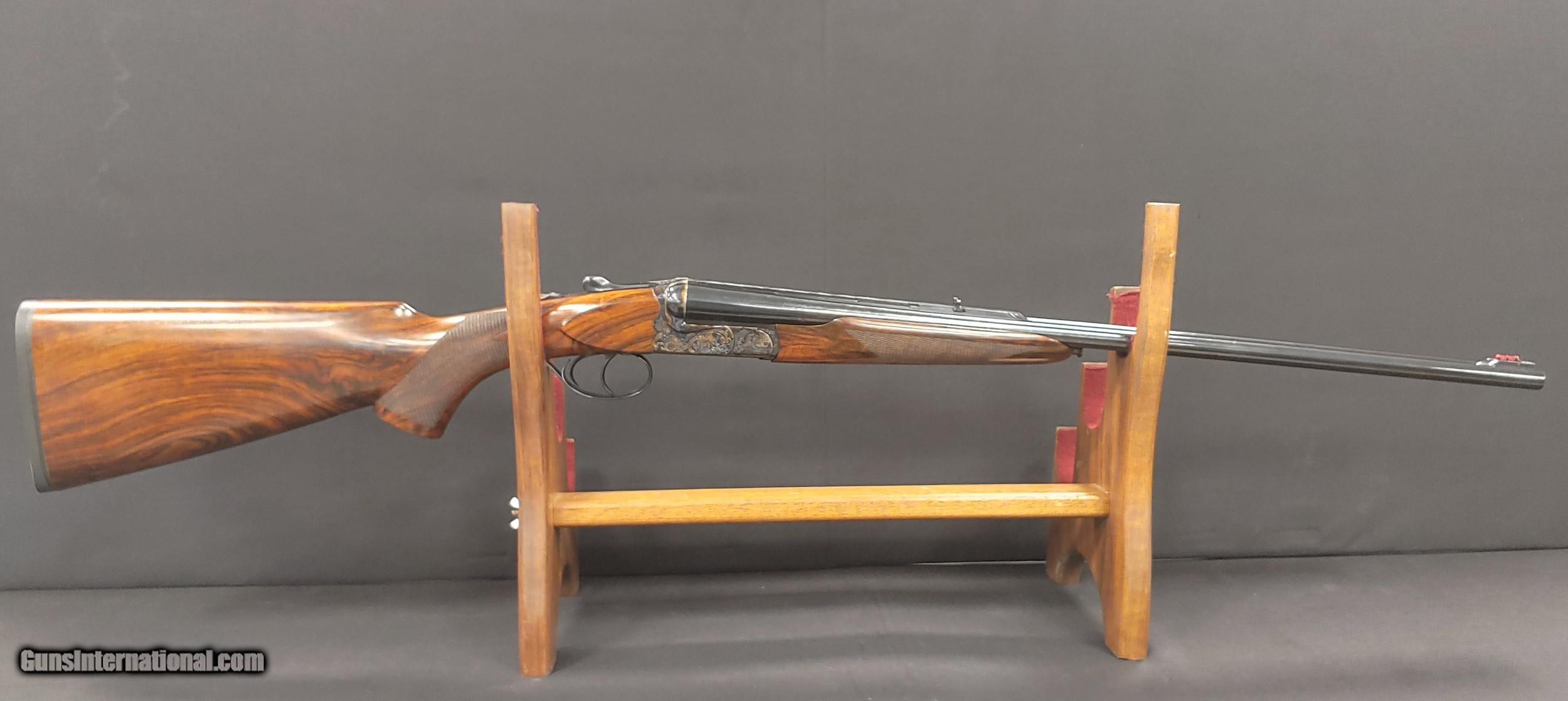 Description: The BR 550 Round Body side-by-side model is built with tradition and quality in mind. The monolithic frame is scalloped with an attractive streamlined design. This design is enhanced by an ornamental scroll engraving with a case hardened finish. The BR 550 features several technical devices devised for long-lasting performance and increased safety. This firearm is in pristine condition and comes with the original box. Pre-Owned - Rizzini BR550 45-70 Govt 24" Double Rifle