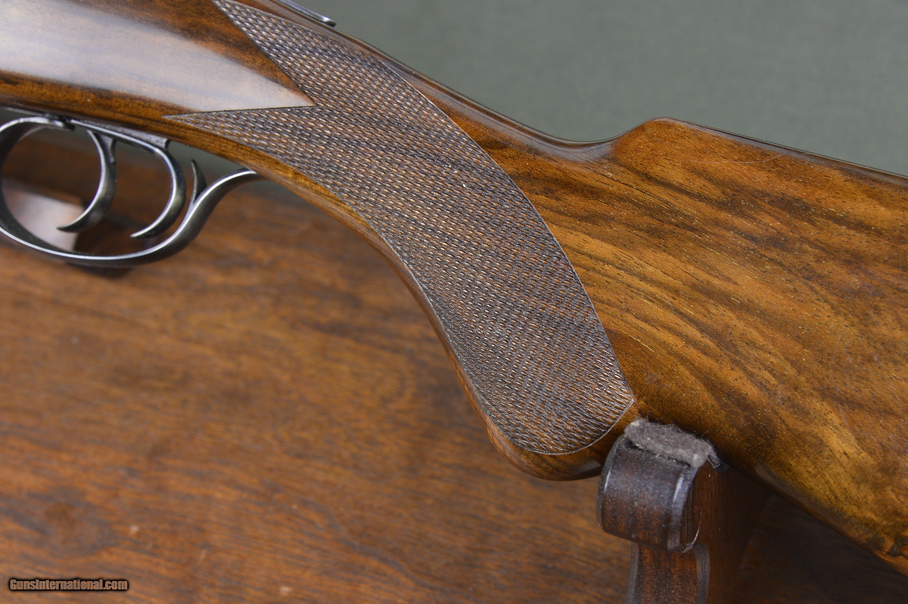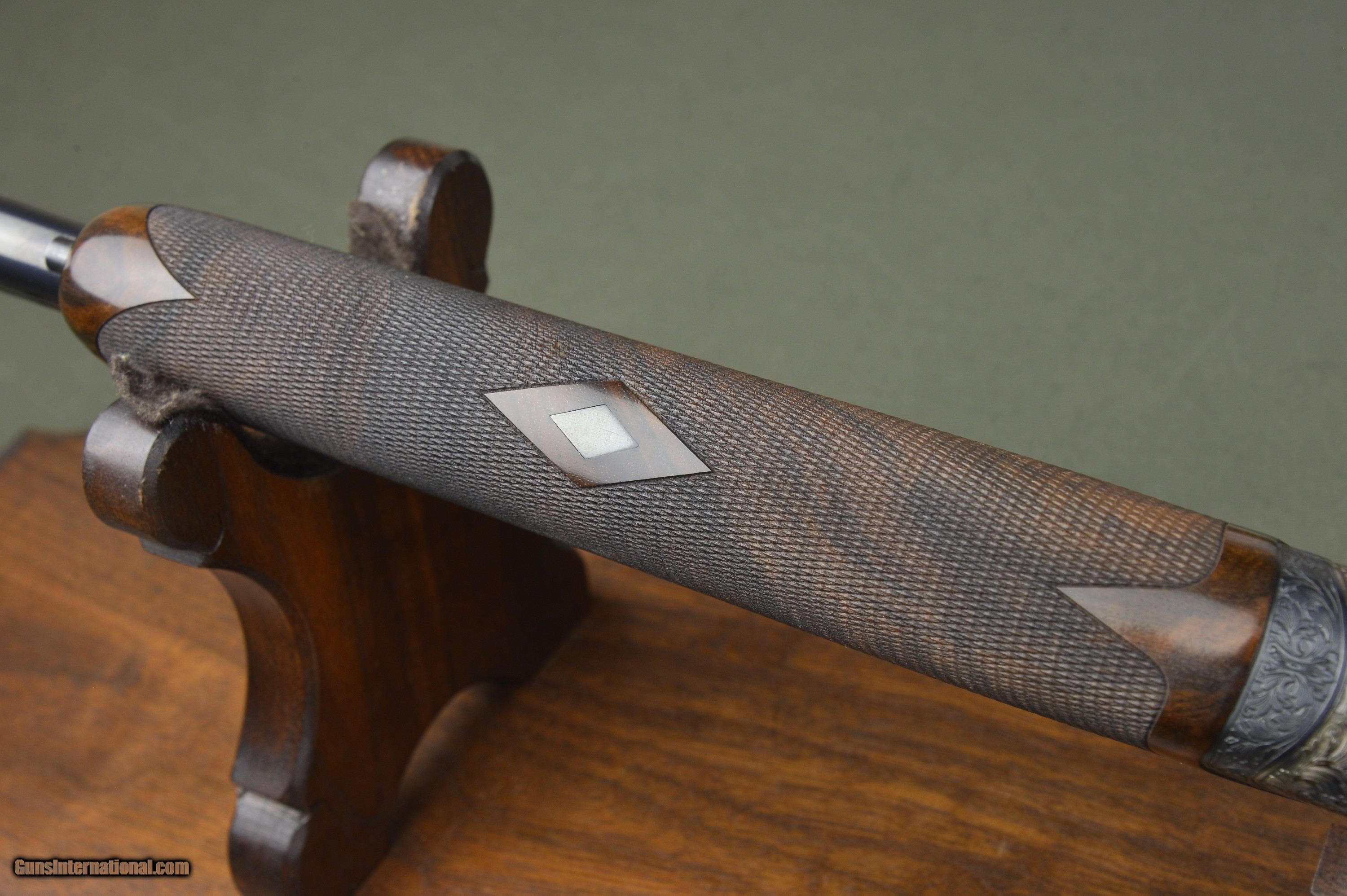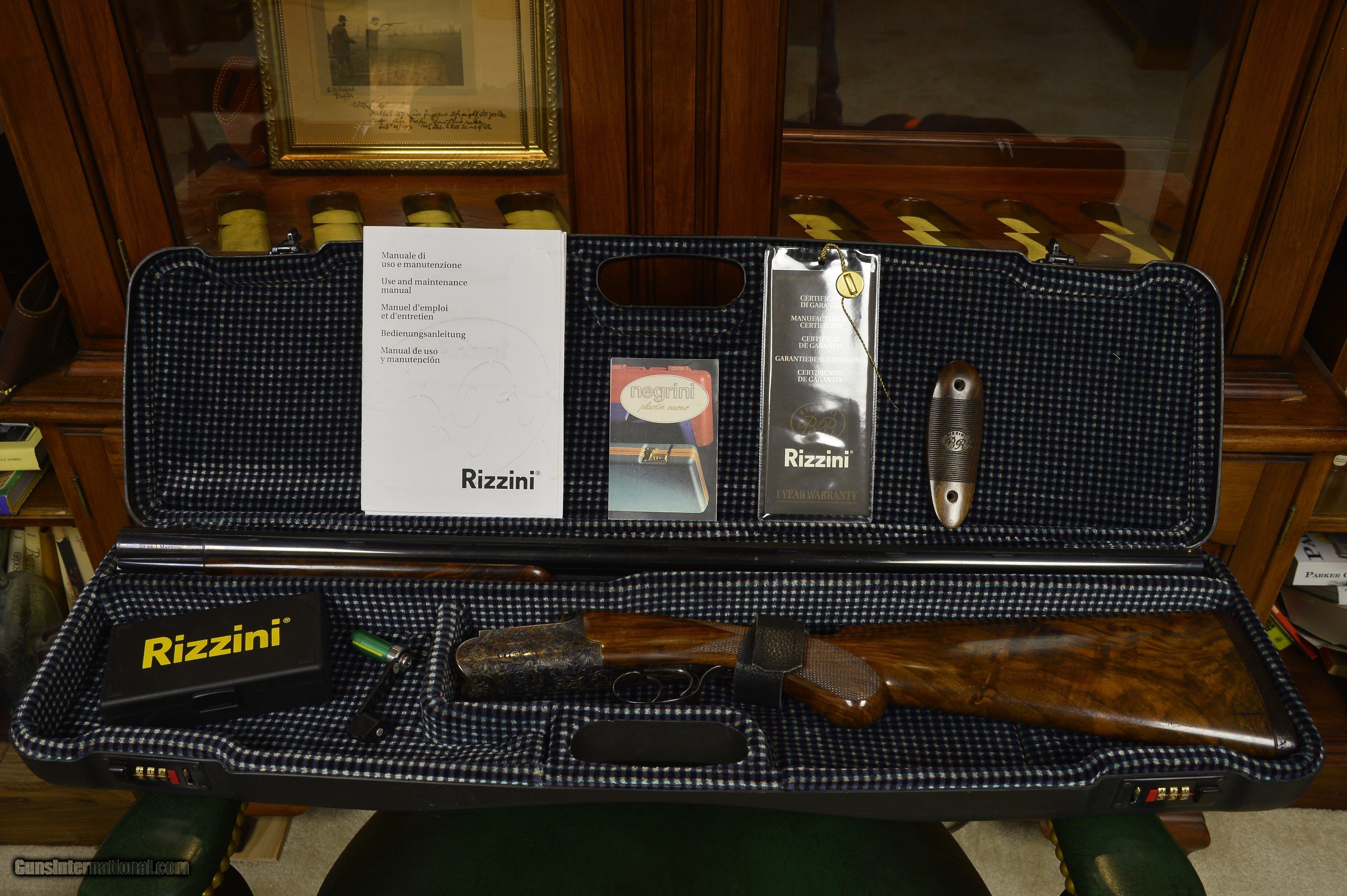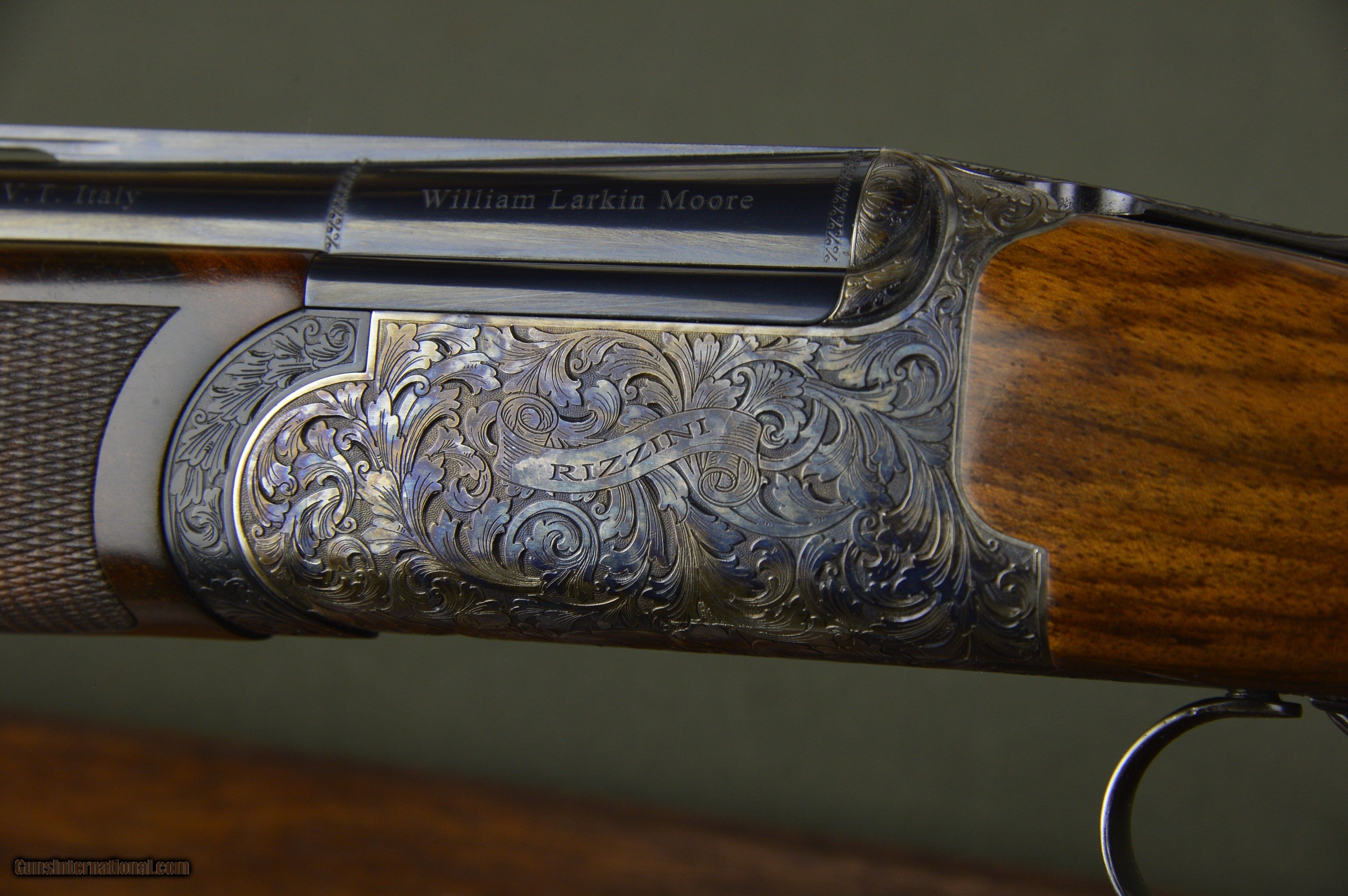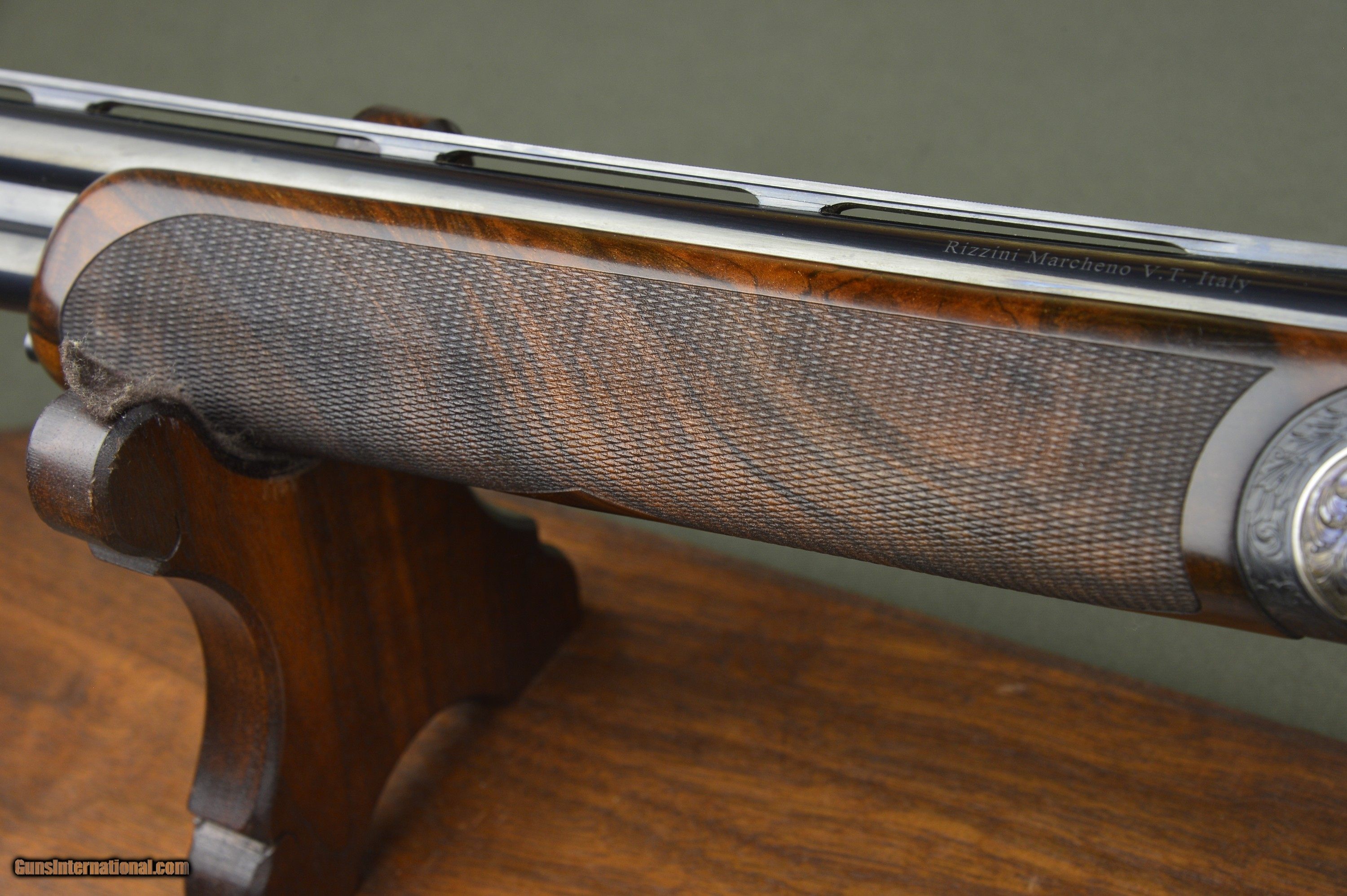 Description: *** SOLD *** Handsome case colored and profusely floral engraved Rizzini 20 gauge Round Body EM Over/Under with special order true 30” barrels and a low profile frame. Gorgeous upgraded highly figured Circassian Turkish walnut. Auto ejectors, double triggers and manual safety. Cased in a factory Rizzini ABS Negrini case with full choke tube set and wrench. Comes with paperwork and original box. Perfect gun for South American dove or pigeon shooting as well as for clays and game closer to home. Weighs 6lb 6oz so easy to carry for a day afield but heavy enough to provide a sure, steady swing. *** The 30” barrels have near perfect bluing, are chrome lined, and are chambered for 3” and 2-3/4” shotshells. Topped by a raised ventilated rib with a gold front bead. The bores are shiny and bright. The lower barrel is bored 0.627 and the upper is bored 0.626. Comes with 6 nickel coated flush mount factory choke tubes including Cylinder, Improved Cylinder, two Modified, Improved Modified and Full chokes as well as a choke wrench. *** The stock and beavertail forearm are made of highly figured Turkish Circassian walnut. The stock has Prince of Wales style pistol grip and a slender forearm. The 26 LPI checkering is crisp. Comes with the original highly figured wooden butt plate. There are a few very minor handling marks on the stock from normal usage. The stock dimensions are 15-1/4” including a 1/2” leather recoil pad by 1-3/8” by 2-3/8”. Cast off for the righthanded shooter. *** This premium grade round body over/under field gun handles as well as it looks. You will be proud to uncase it at the range or for a day afield. Priced to sell so don’t let it slip away! *** Please note that the photographs are part of the description. I am an FFL and require a signed copy of your dealer’s FFL license. Not for sale where prohibited by state or local laws. Buyer is responsible for all shipping, insurance, and any other related charges. I give a 3-day non-firing inspection period which begins when it arrives at the buyer’s FFL or specified address if the gun is classified as an Antique. Returns at buyer’s expense. SOLD |