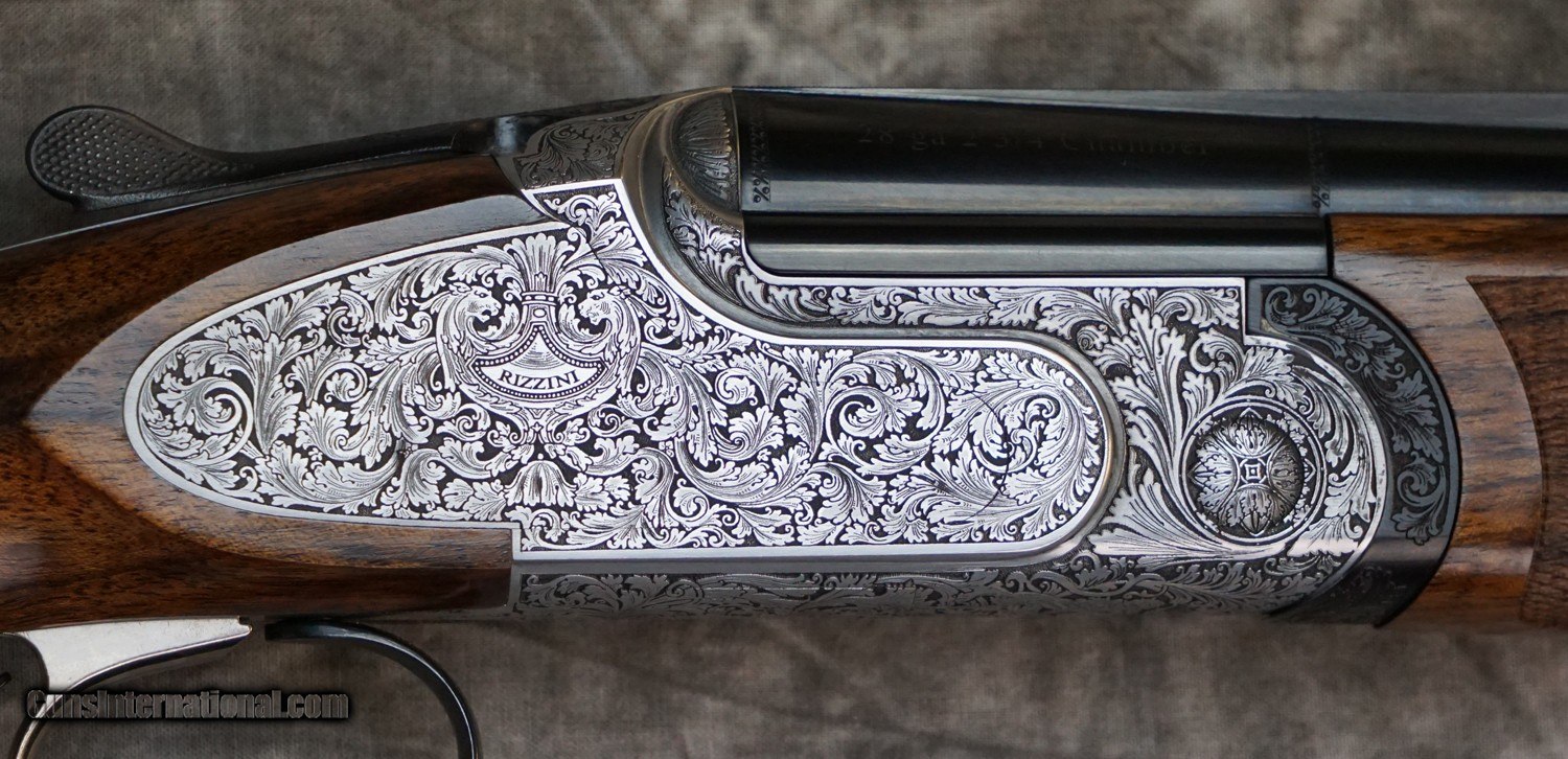 Description: New Rizzini Artemis Field 28GA with 28" factory choke tubed barrels, coin finished action featuring fully scroll engraved side-plates, scaled 28GA action with selective trigger. Factory Prince of Wales pistol grip stock to removable butt plate and fully checkered game forearm. Includes factory case, chokes and tools. SOLD Shotgun Gauge: 28 Gauge |