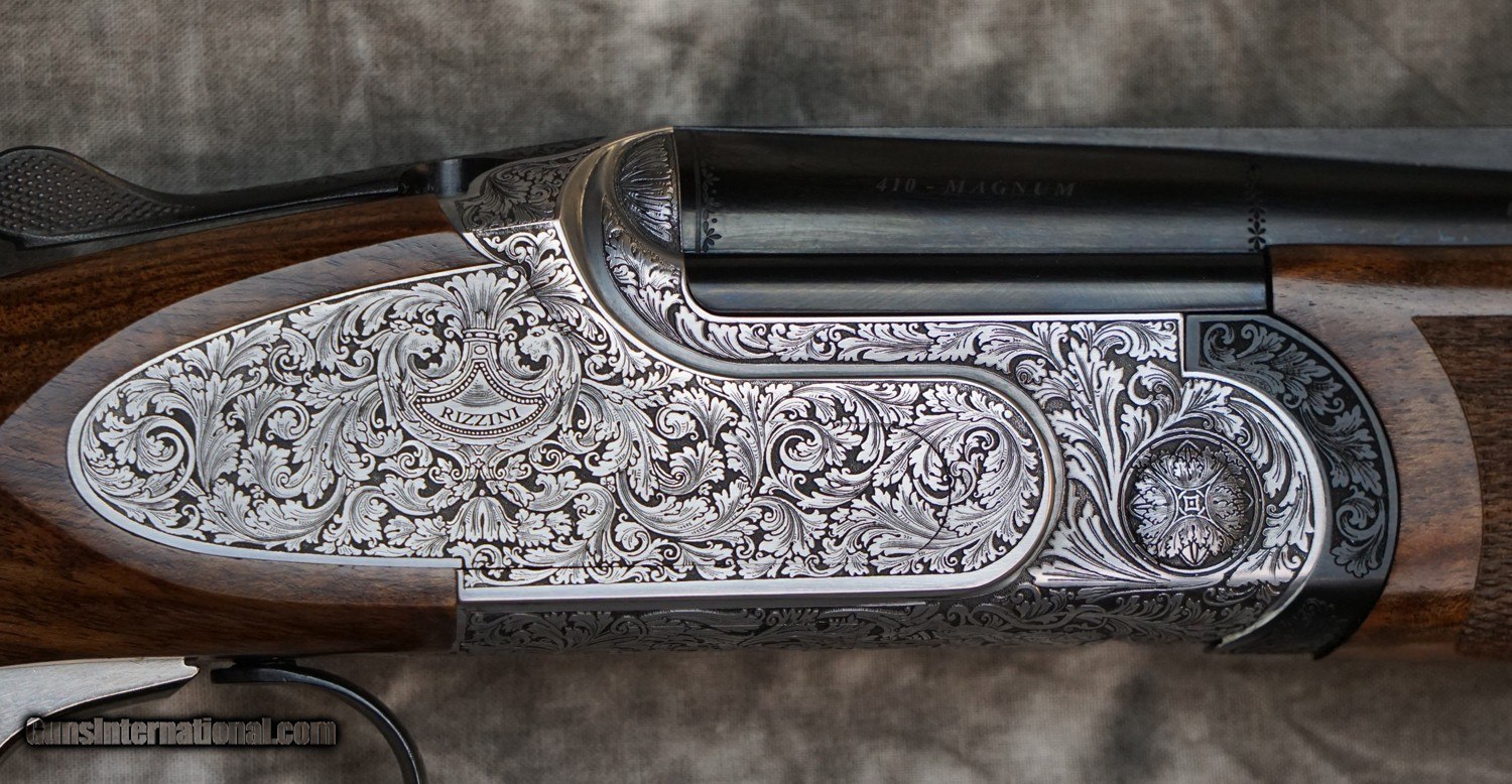 Description: New Rizzini Artemis Field 410 Bore with 28" factory choke tubed barrels, coin finished action featuring fully scroll engraved side-plates, scaled 28GA action with selective trigger. Factory Prince of Wales pistol grip stock to removable butt plate and fully checkered game forearm. Includes factory case, chokes and tools. SOLD Shotgun Gauge: .410 Gauge |