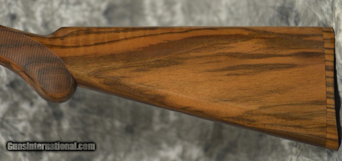 Description: New Rizzini Artemis Game 28GA with 29" factory choke tubed barrels, parallel game rib. Coin finished receiver with full coverage scroll engraved side-plates. Factory single-selective trigger. Prince of Wales pistol grip stock to factory removable butt-plate, fully checkered round forearm. Built on scaled 28GA Action. Includes factory case, chokes and tools. SOLD |